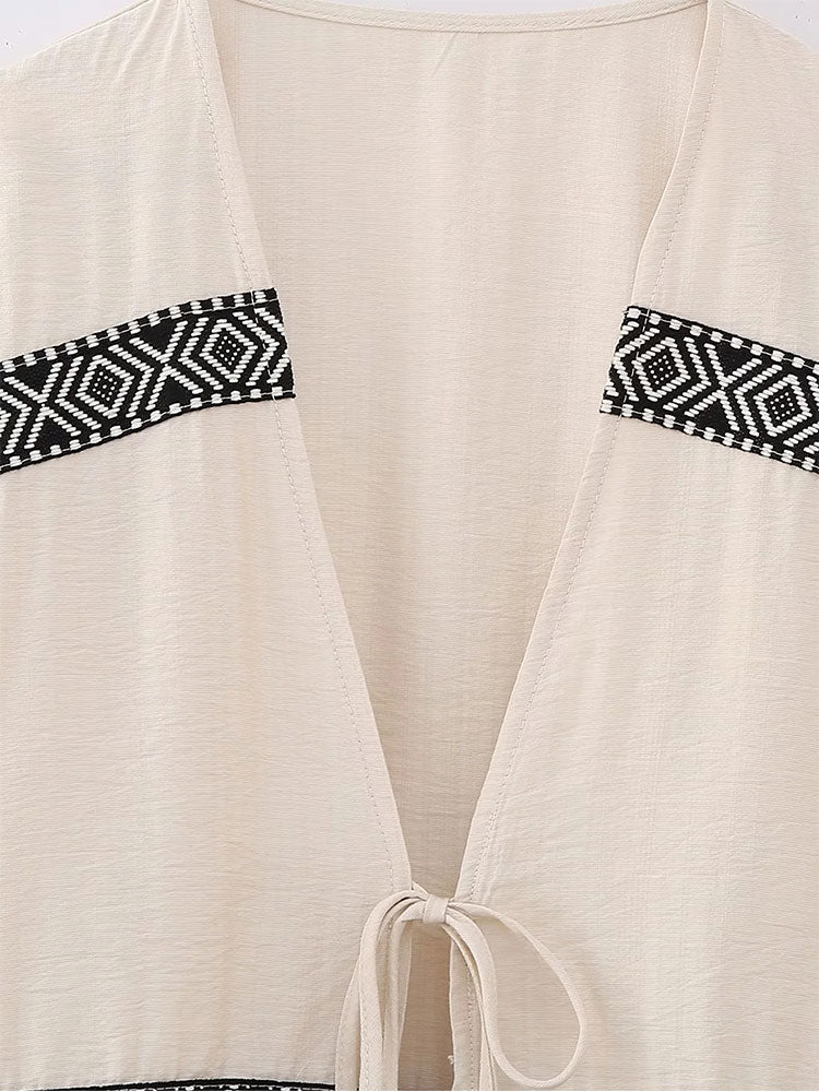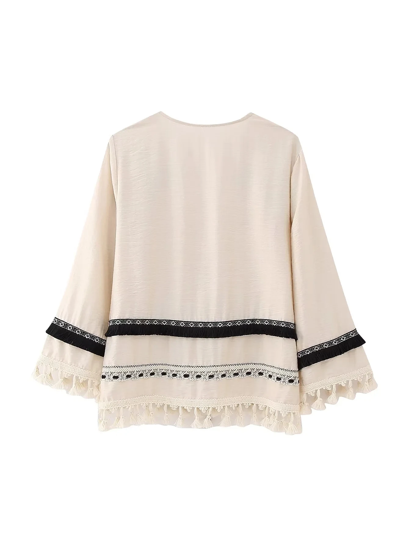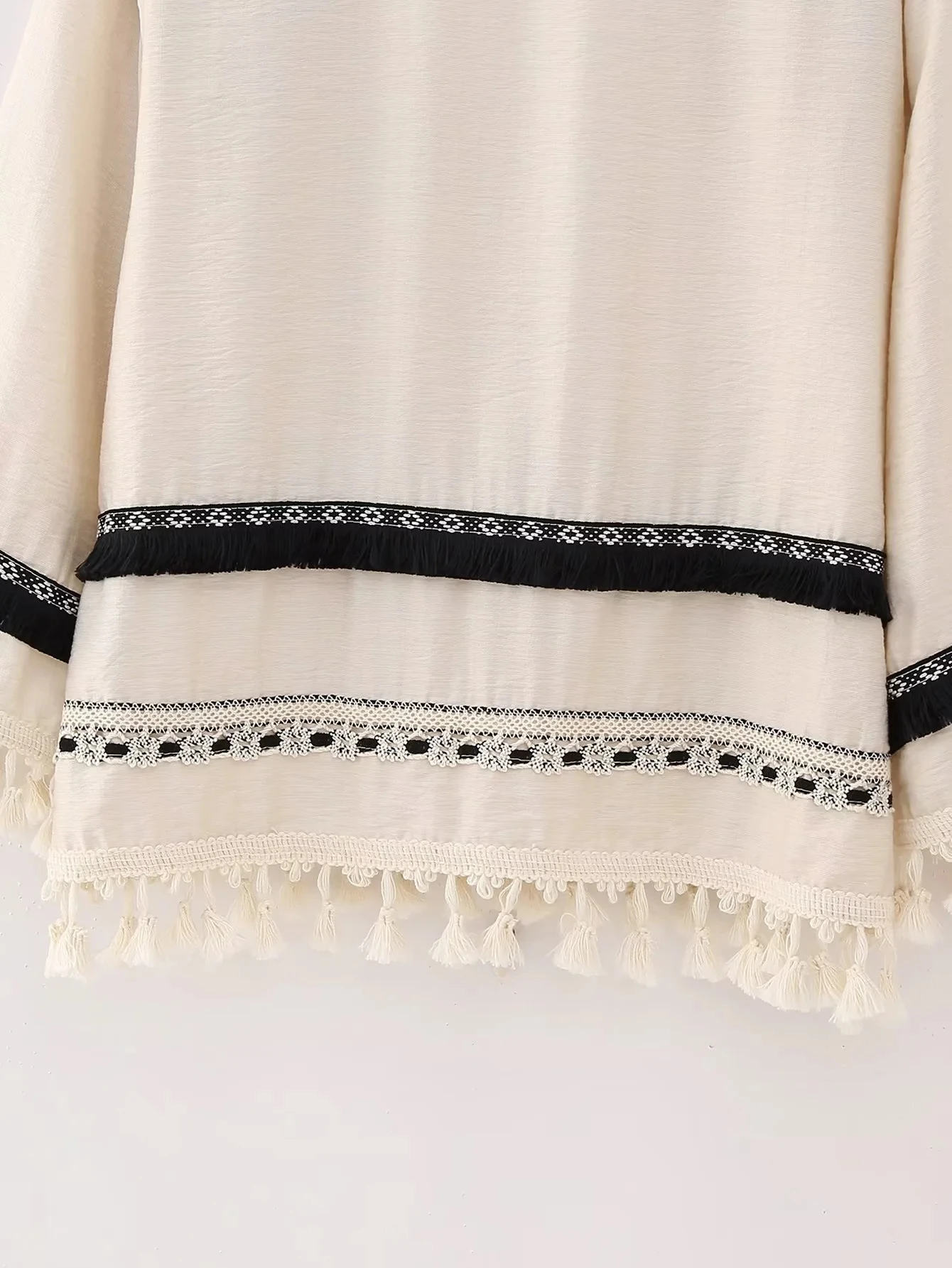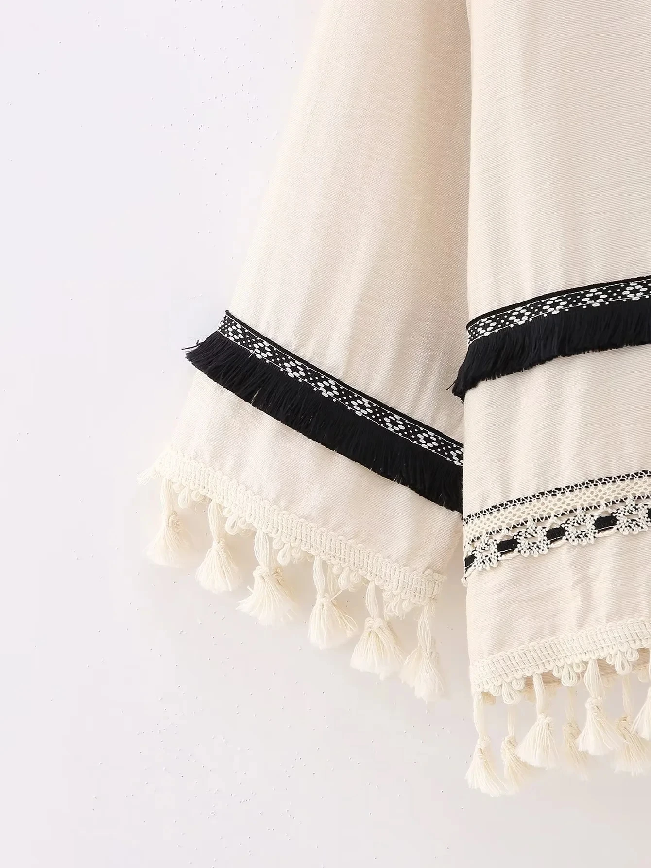 Znbbw TRAF Beige Cardigan Jackets Women 2023 Tassel Coat Loose Elegant Top Stylish Vintage Chic Trendy Folk Lace Up Top