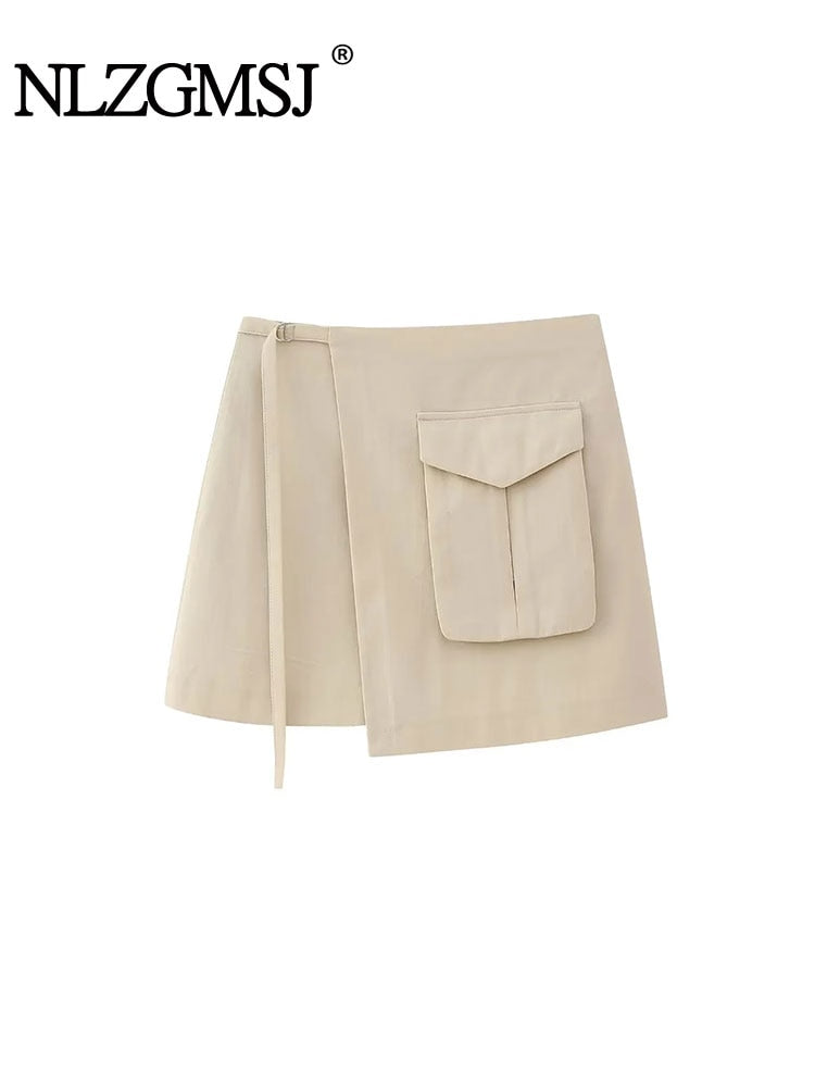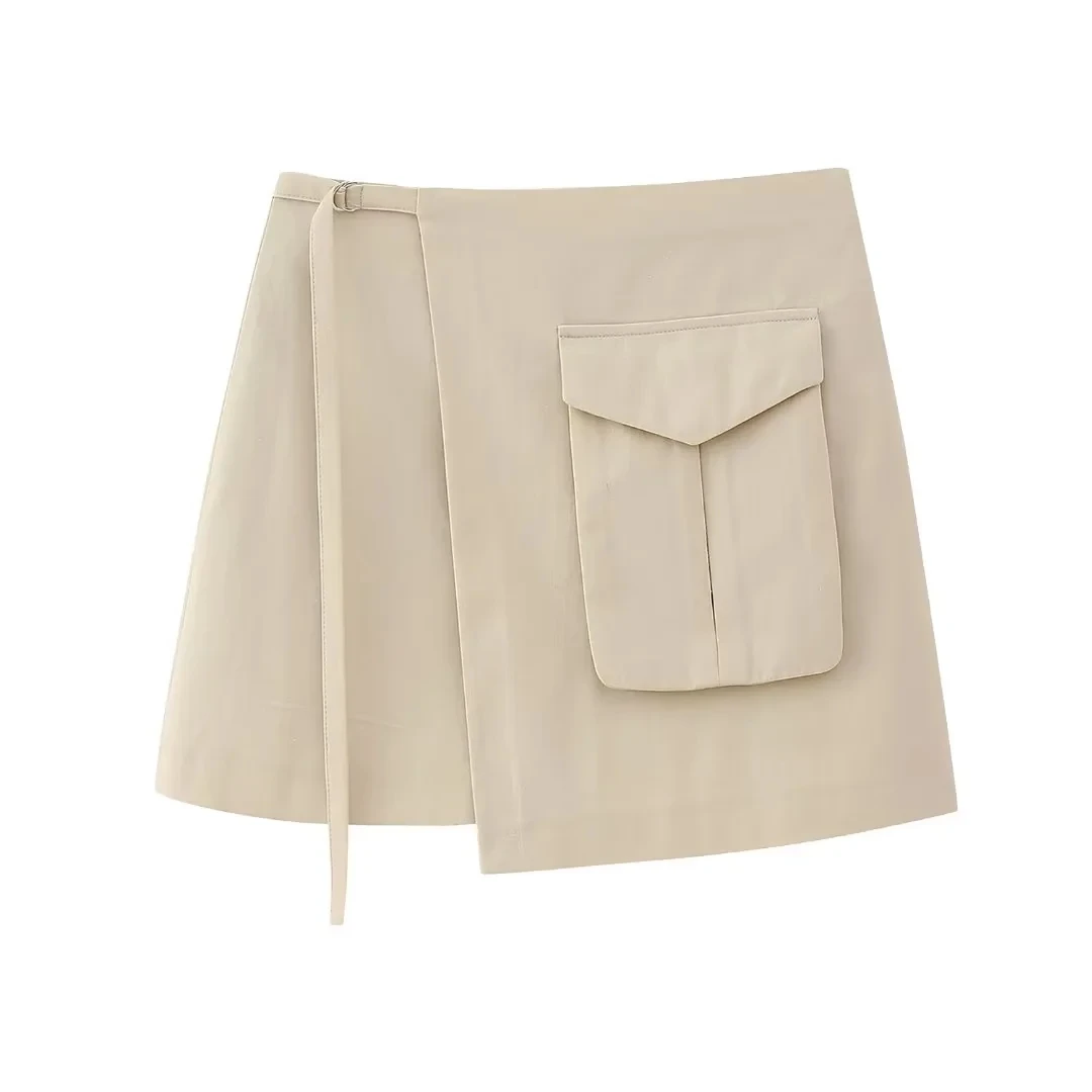 Znbbw TRAF Black Cargo Skirt Women High Waist Mini Skirts Woman 2023 Asymmetric Short Skirts for Women Streetwear Skort Skirt