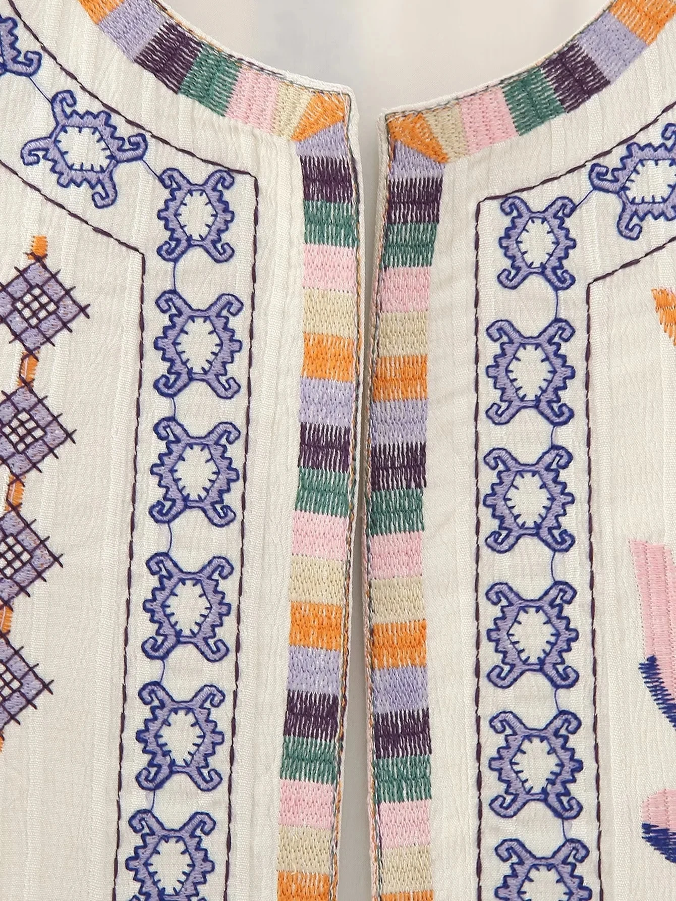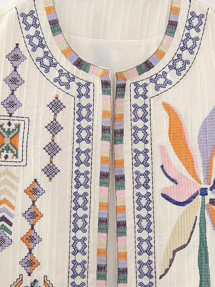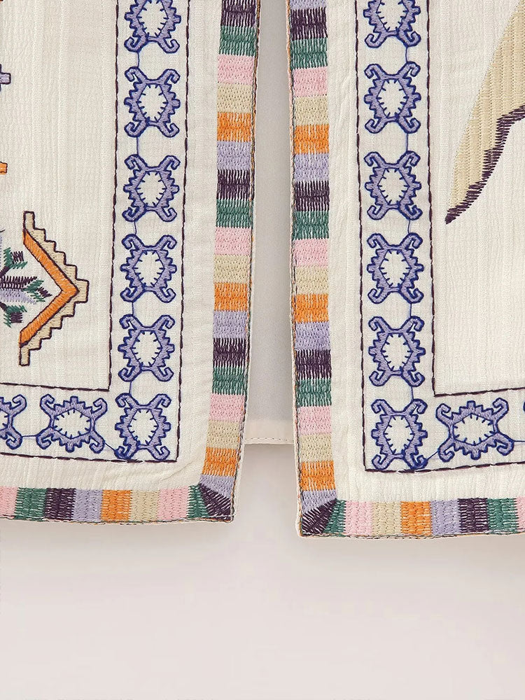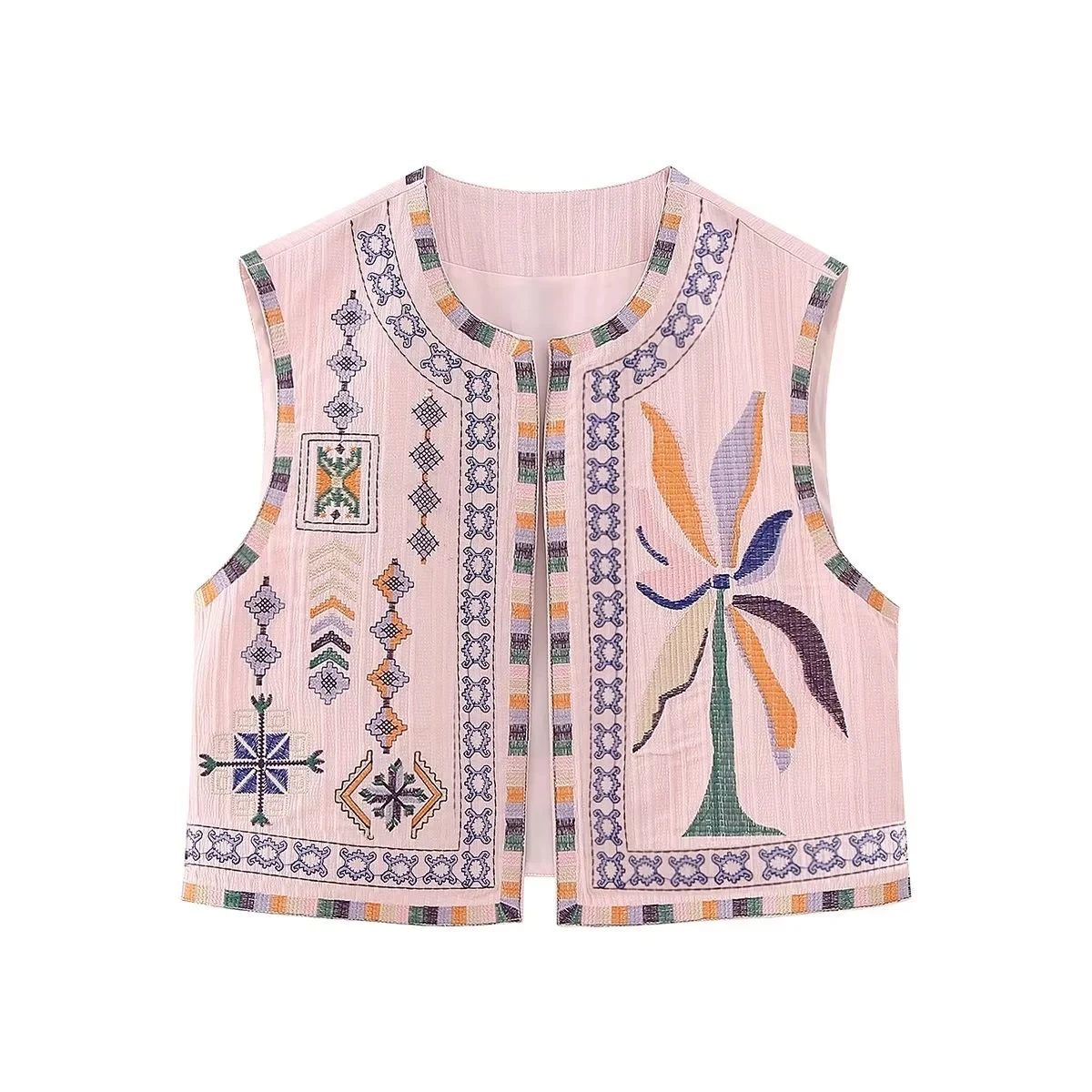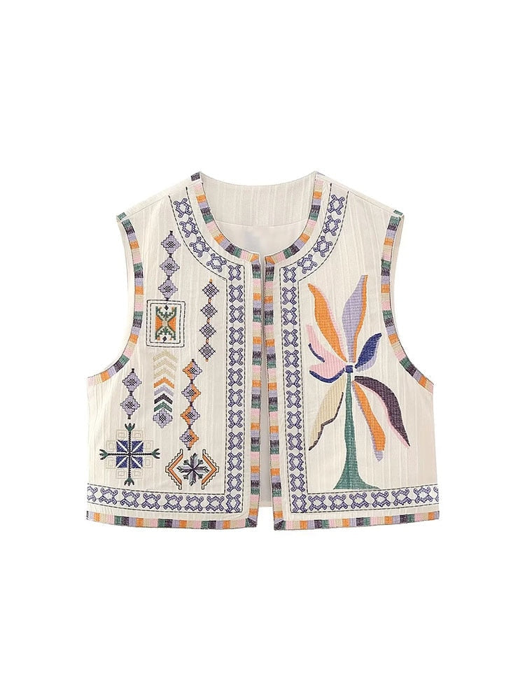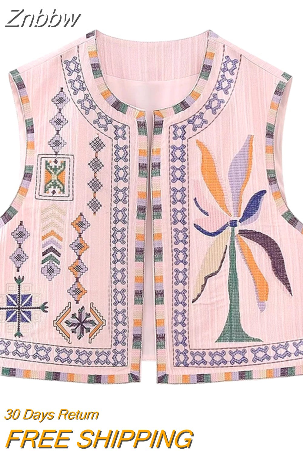 Znbbw TRAF Embroidered Vest Cardigan For Women Vintage National Style Patchwork Sleeveless Top 2023 Open Waistcoat