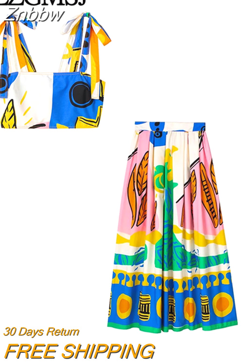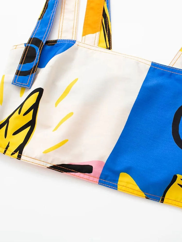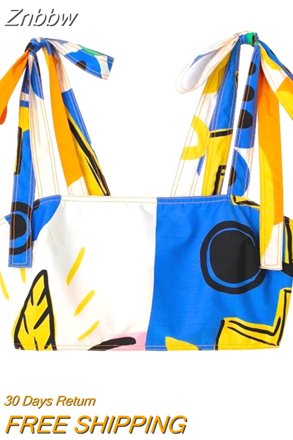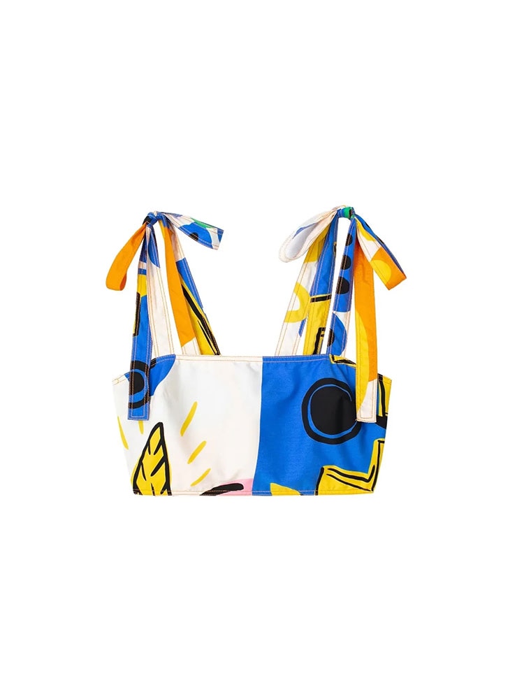 Znbbw TRAF Print Crop Top Women Straps Bustier Tank Top Female Summer Backless Tops for Women Streetwear Casual Corset Top