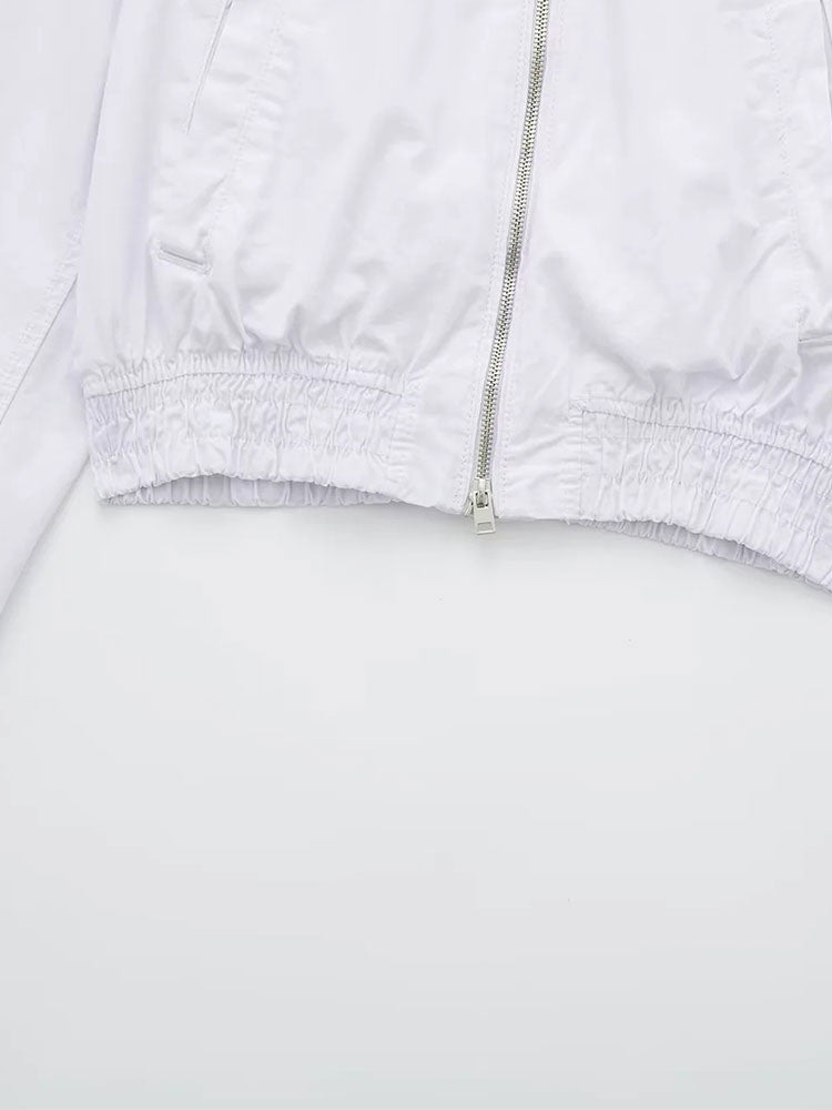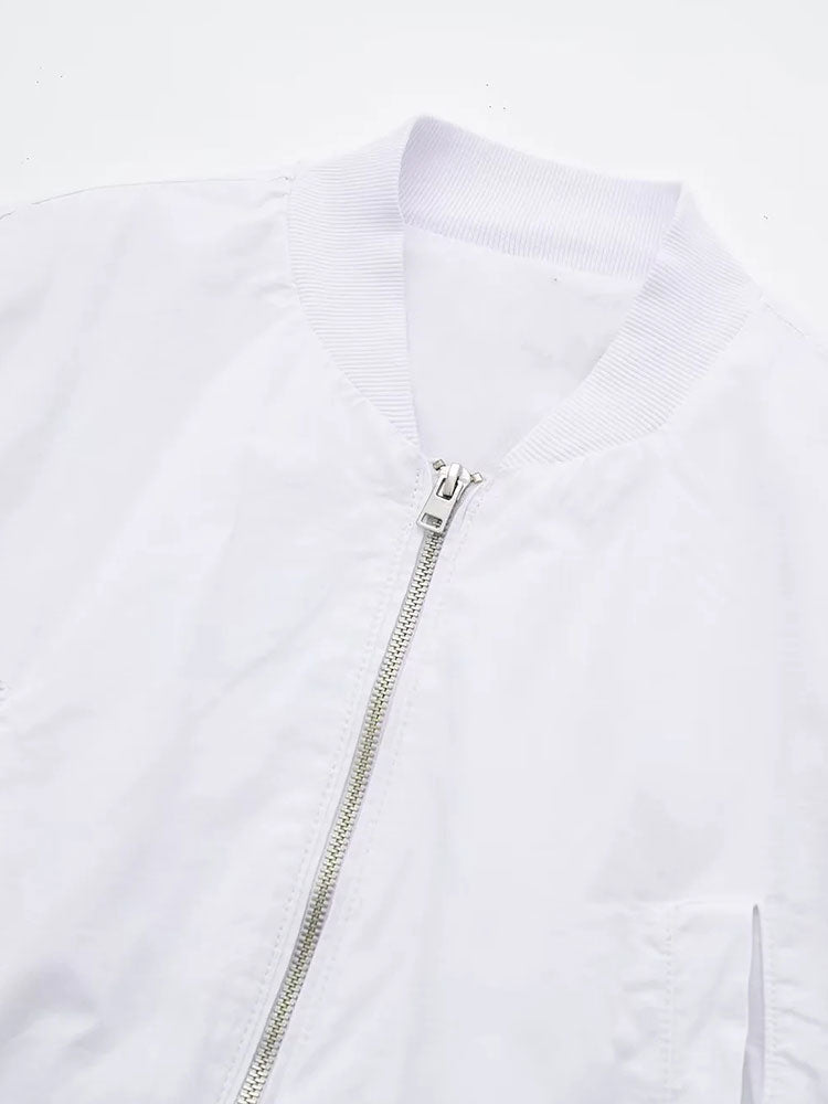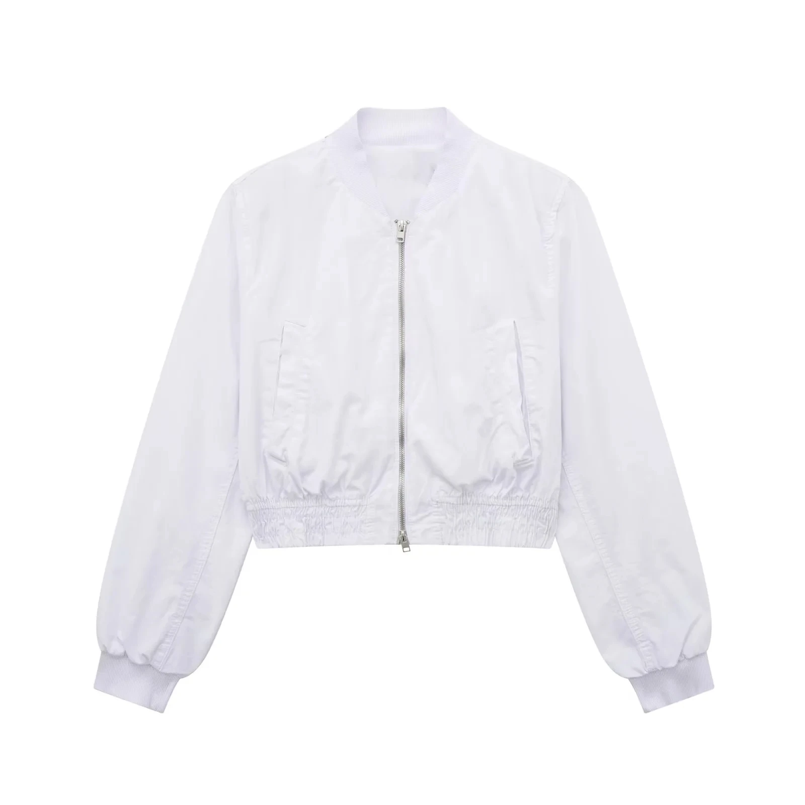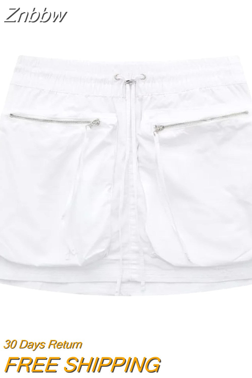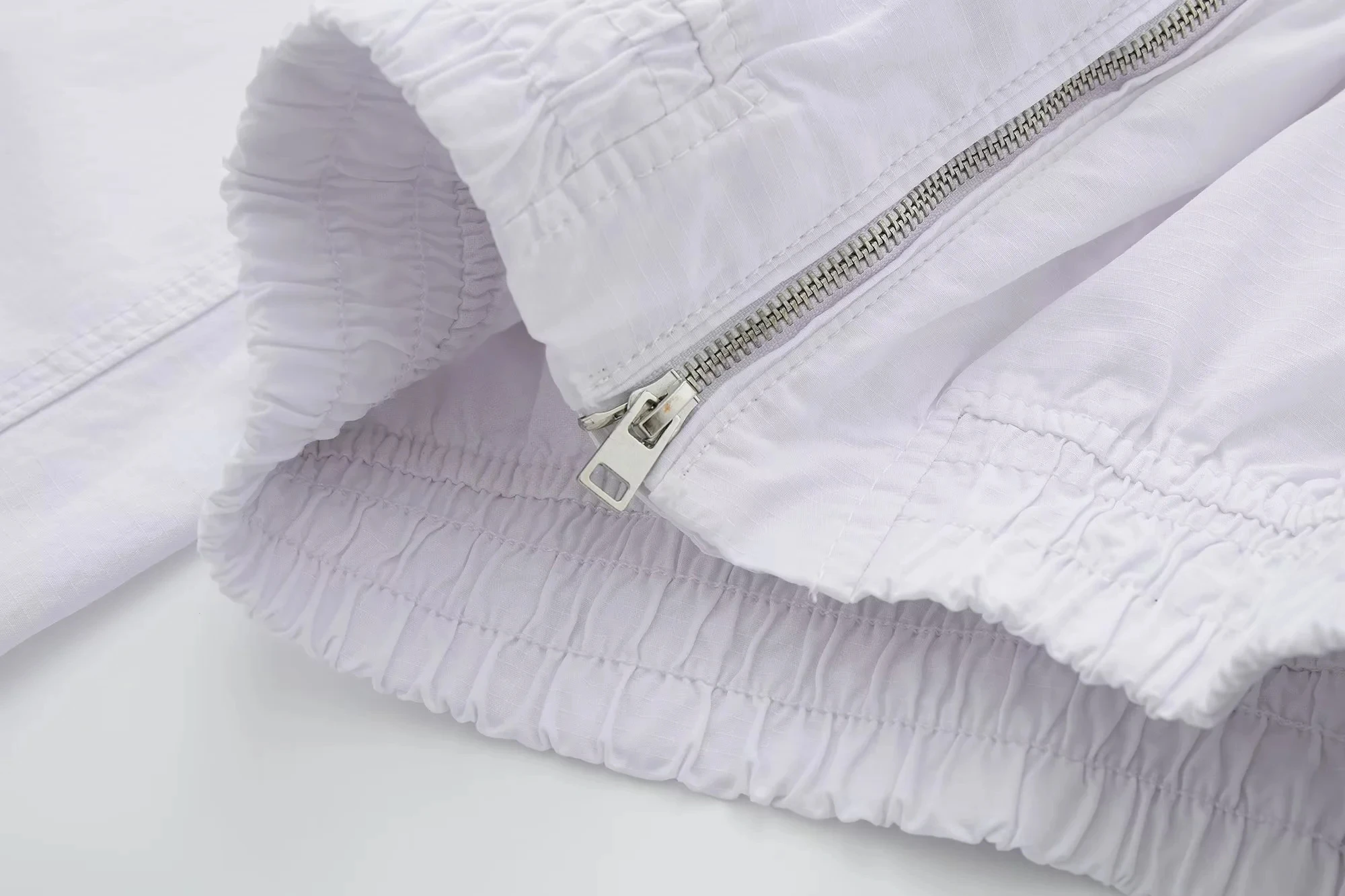Znbbw TRAF Summer Women Suits 2023 Long Sleeve Zipper Loose Bomber Jacket Crop Top Female Cargo Mini Skirt 2 Piece Sets Y2K