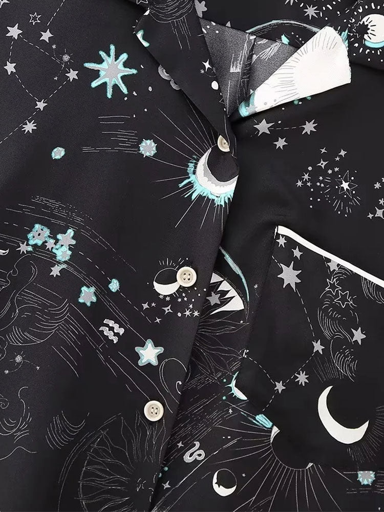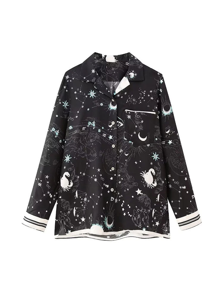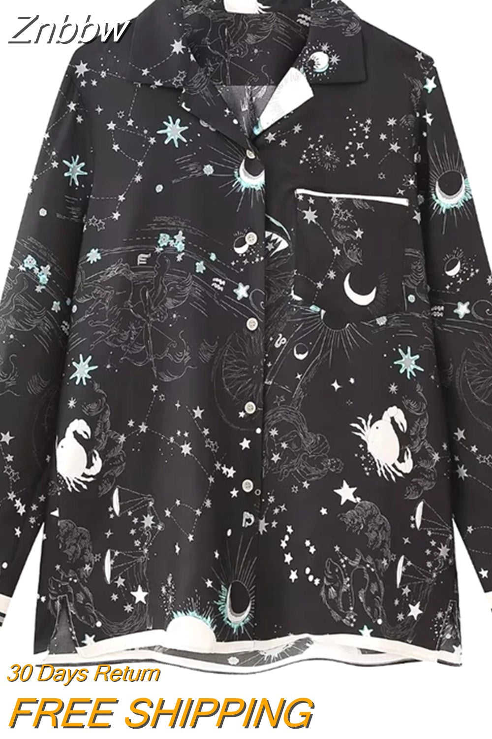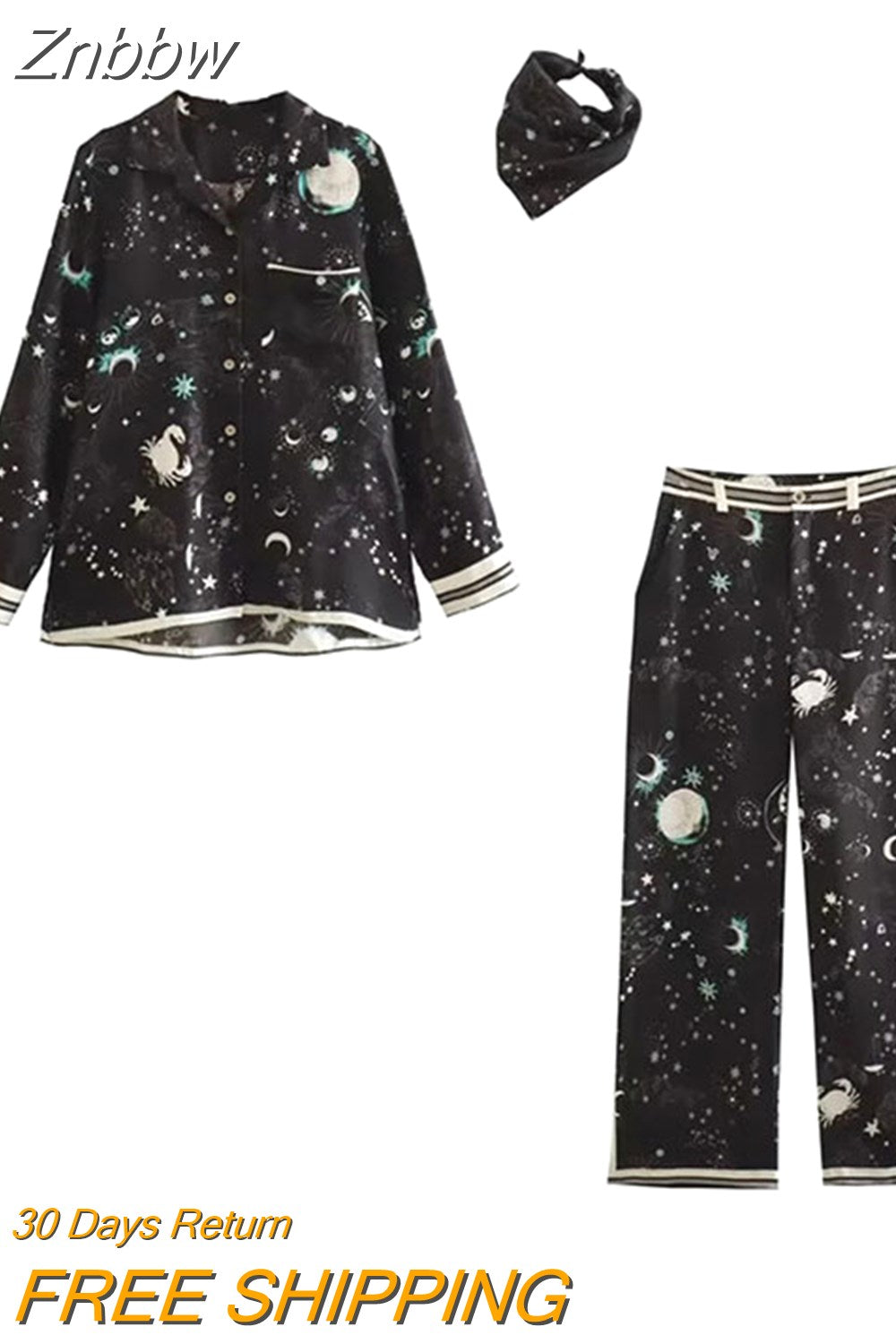 Znbbw TRAF Woman 2 Piece Pants Sets 2023 New Fashion Print Shirts Top Women Suit Casual Pants Two Pieces Set Womens Outfits