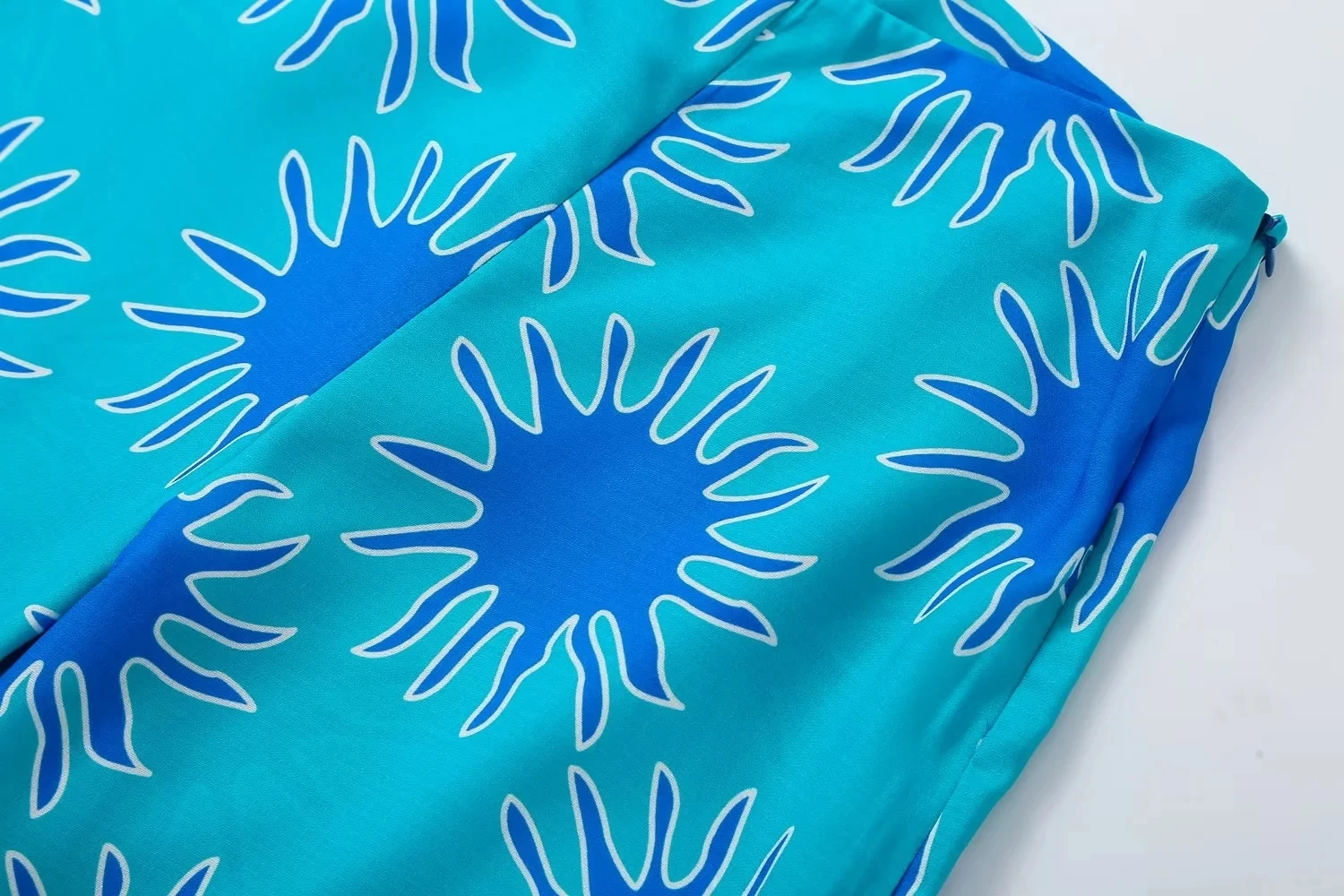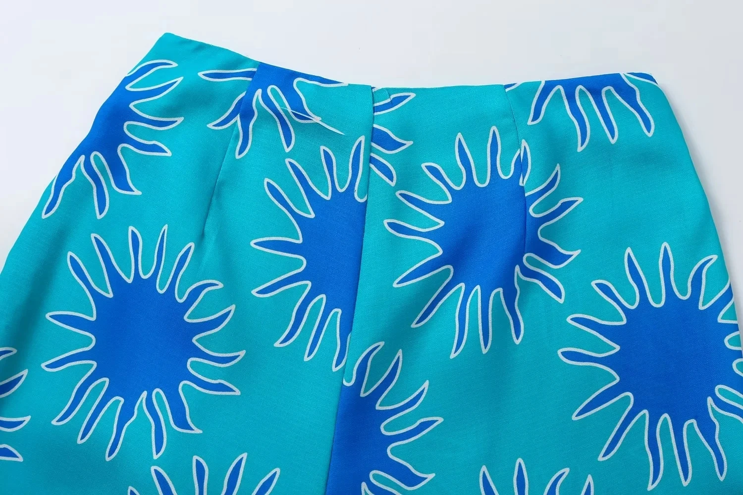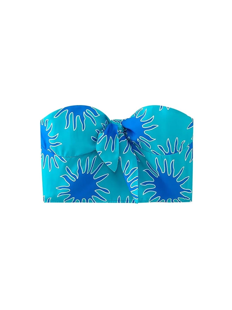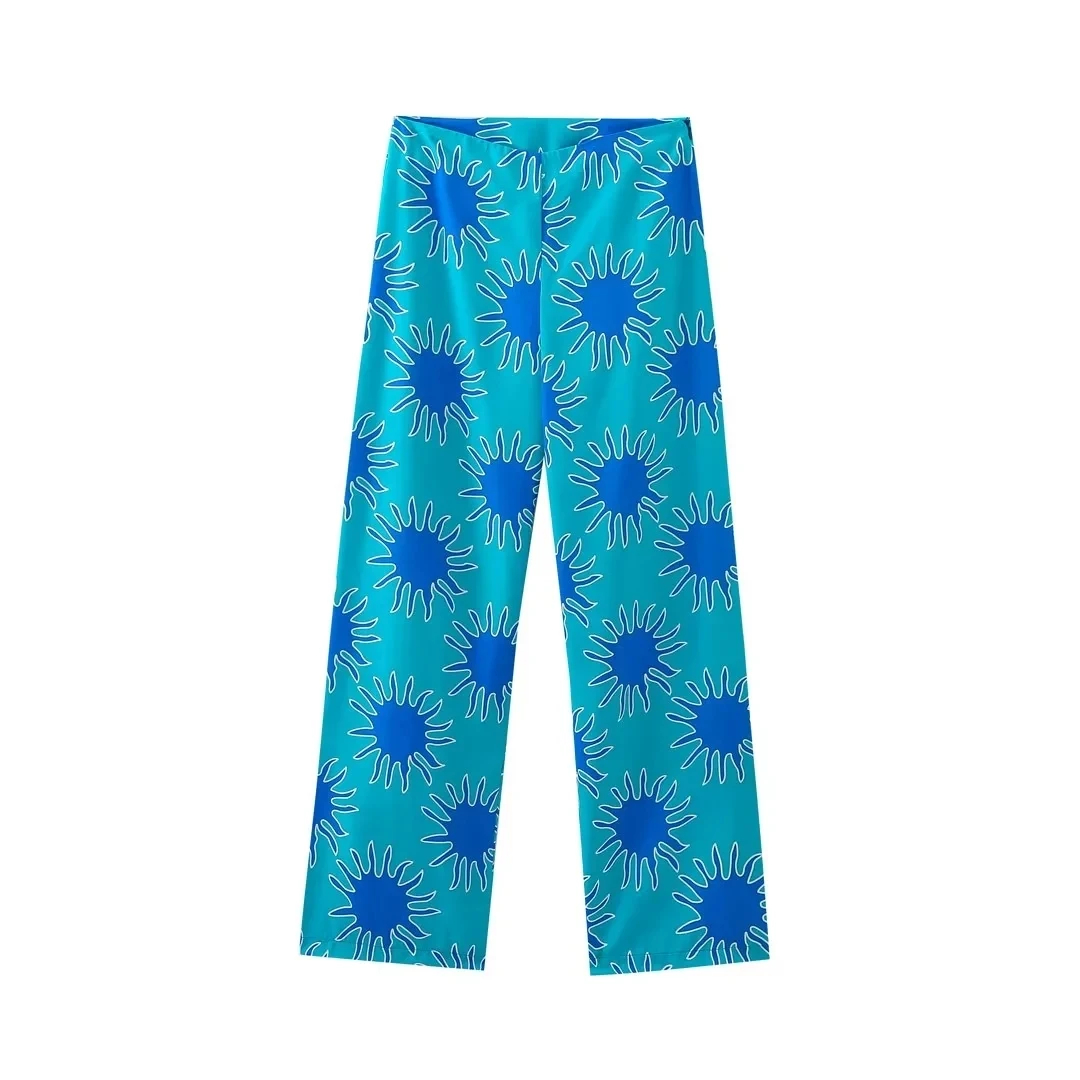Znbbw TRAF Woman 2023 2 Pieces Sets Printed Knot Decoration Short Vest Tops + Wide Leg Long Pants Summer Causal Slim Sets