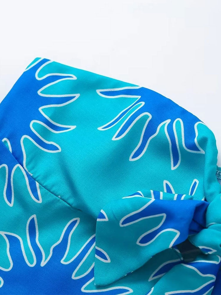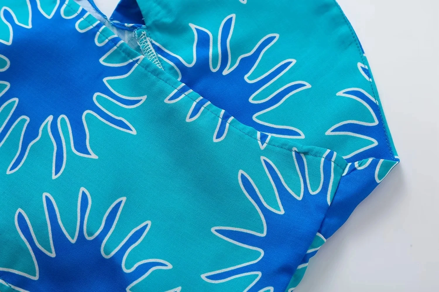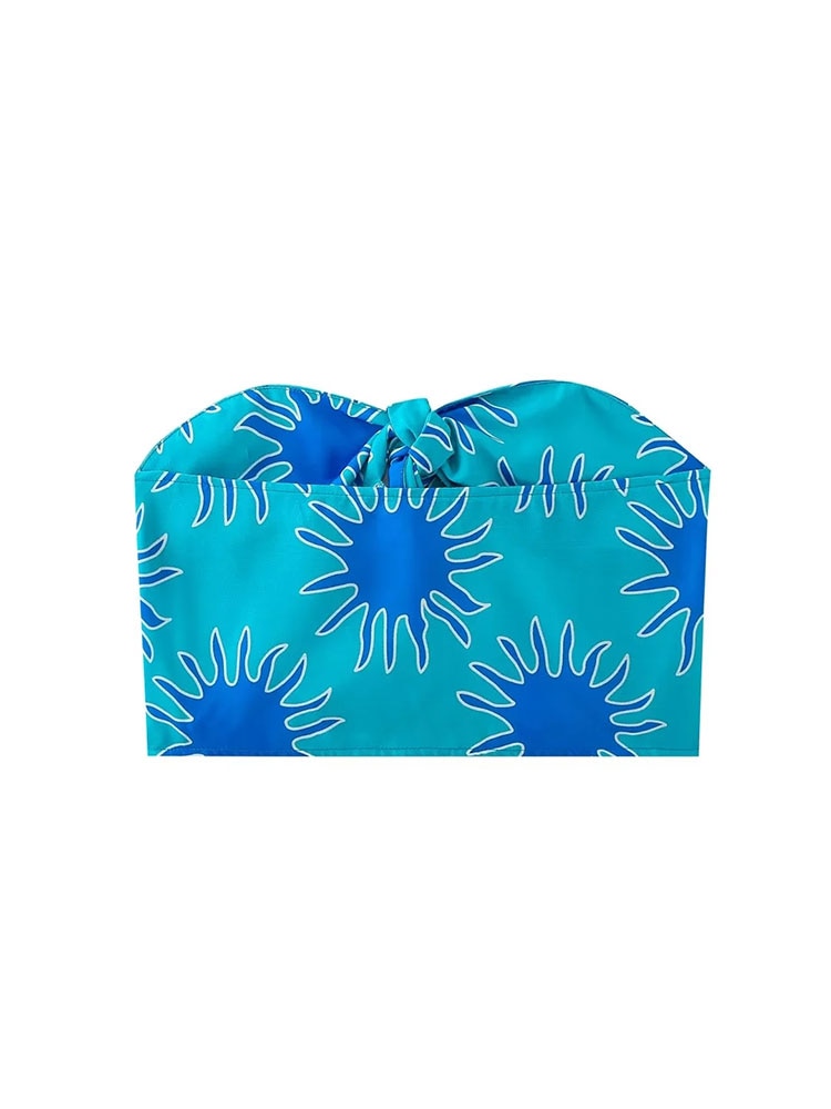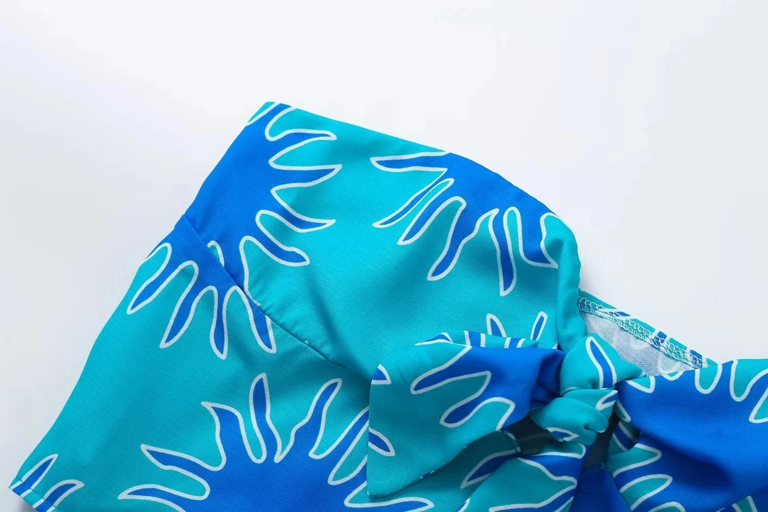 Znbbw TRAF Woman 2023 2 Pieces Sets Printed Knot Decoration Short Vest Tops + Wide Leg Long Pants Summer Causal Slim Sets