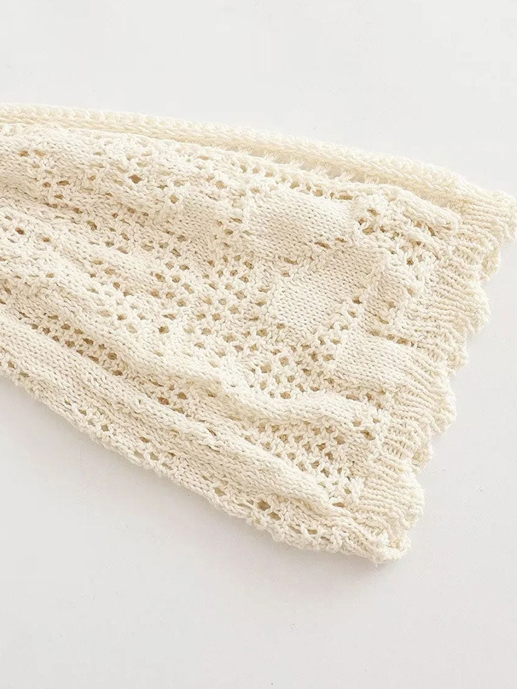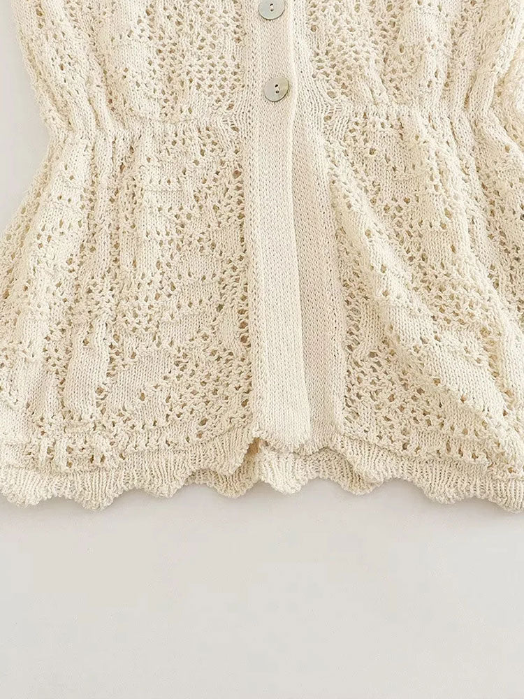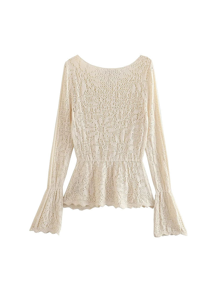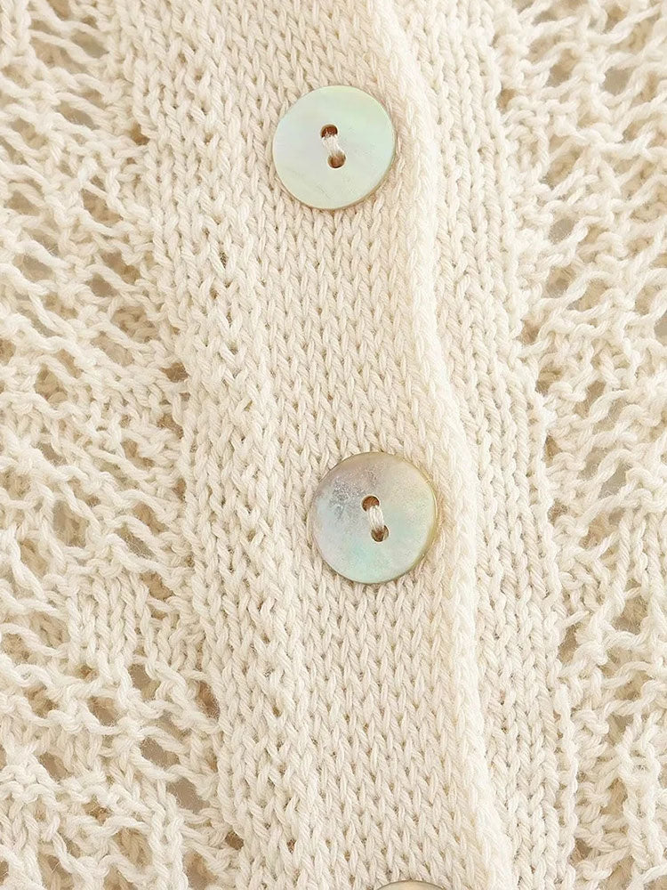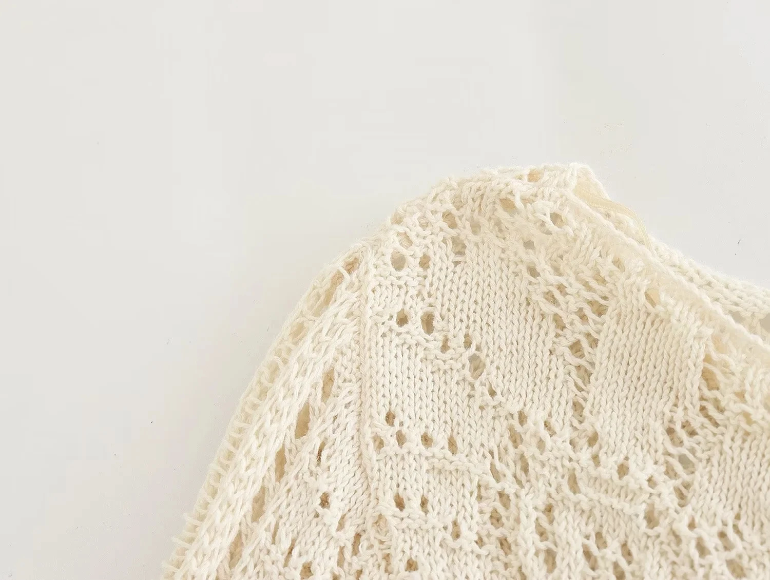Znbbw TRAF Women 2023 Jacquard Mesh Knitted Button Loose Cardigan Open Navel Sweater Retro Flare Sleeve Coat Unique Top