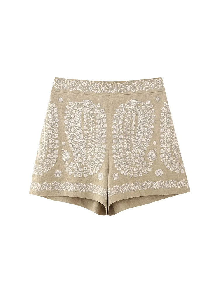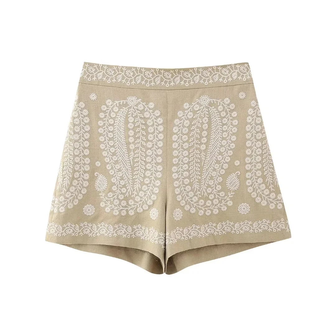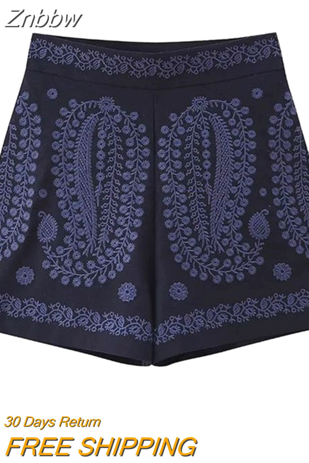 Znbbw TRAF Women 2023 Summer Chic Fashion Contrast Embroidery High Waist Shorts Vintage Female Short Pants Women
