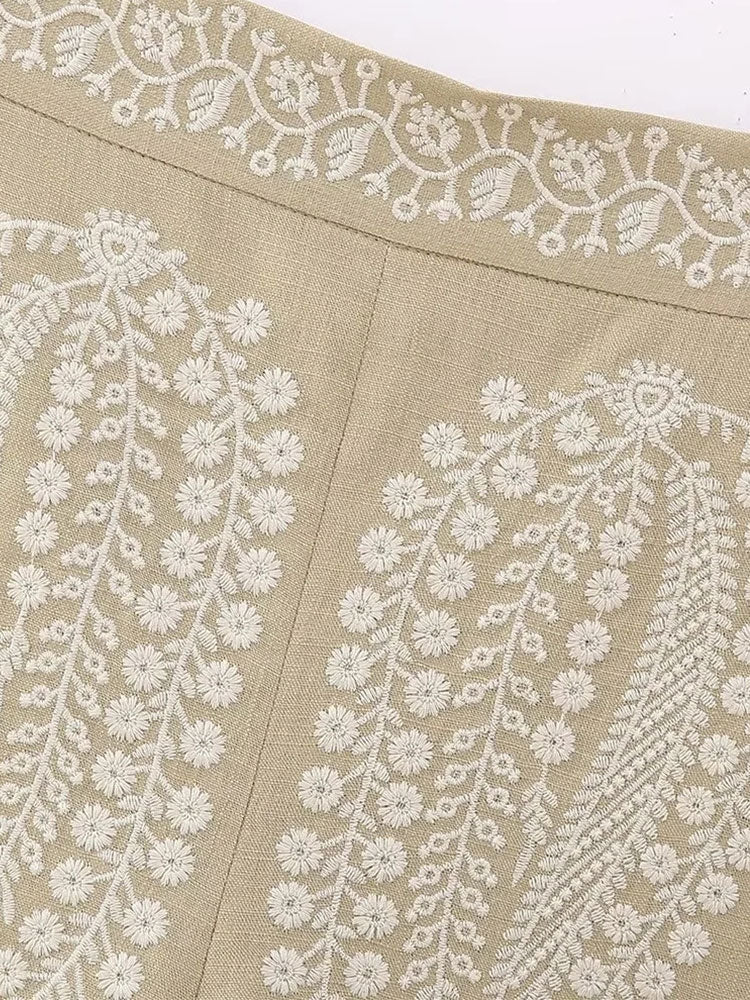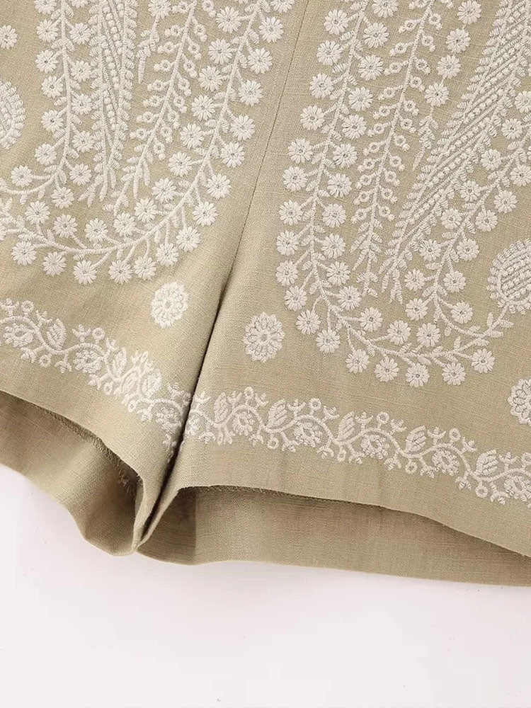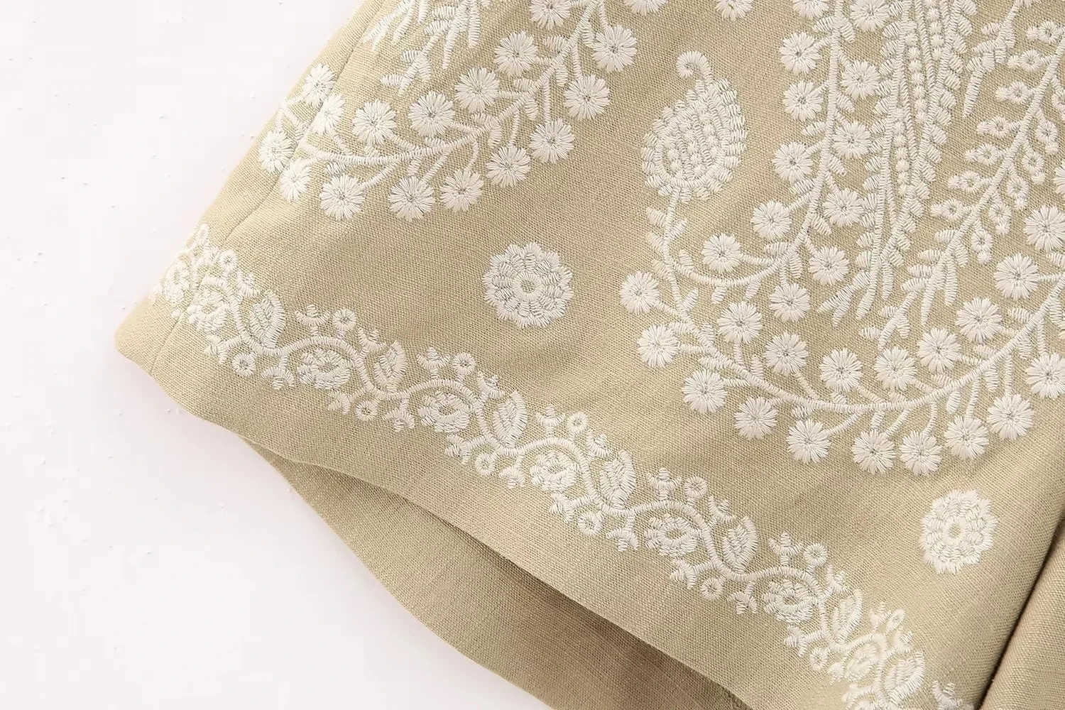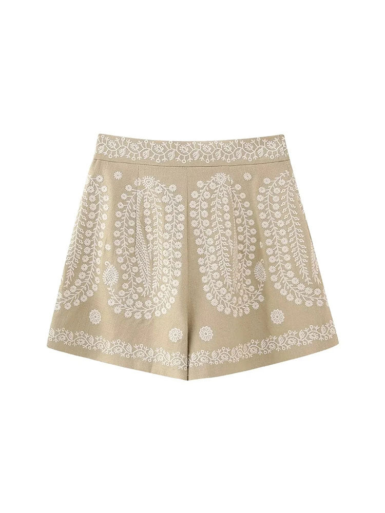 Znbbw TRAF Women 2023 Summer Chic Fashion Contrast Embroidery High Waist Shorts Vintage Female Short Pants Women