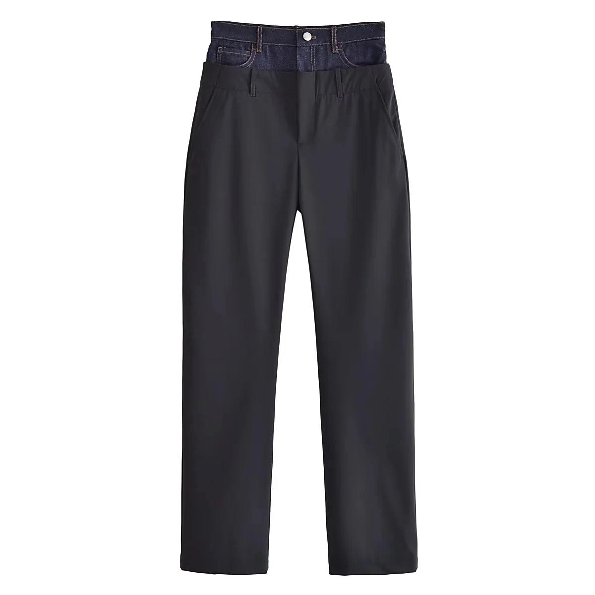 Znbbw TRAF Women Denim High Waist Pants Women Pockets Spring Autumn Pants For Women Trousers Outfits