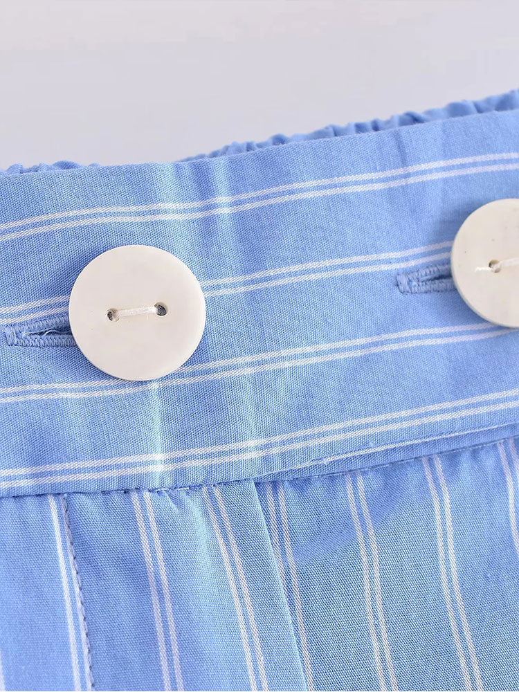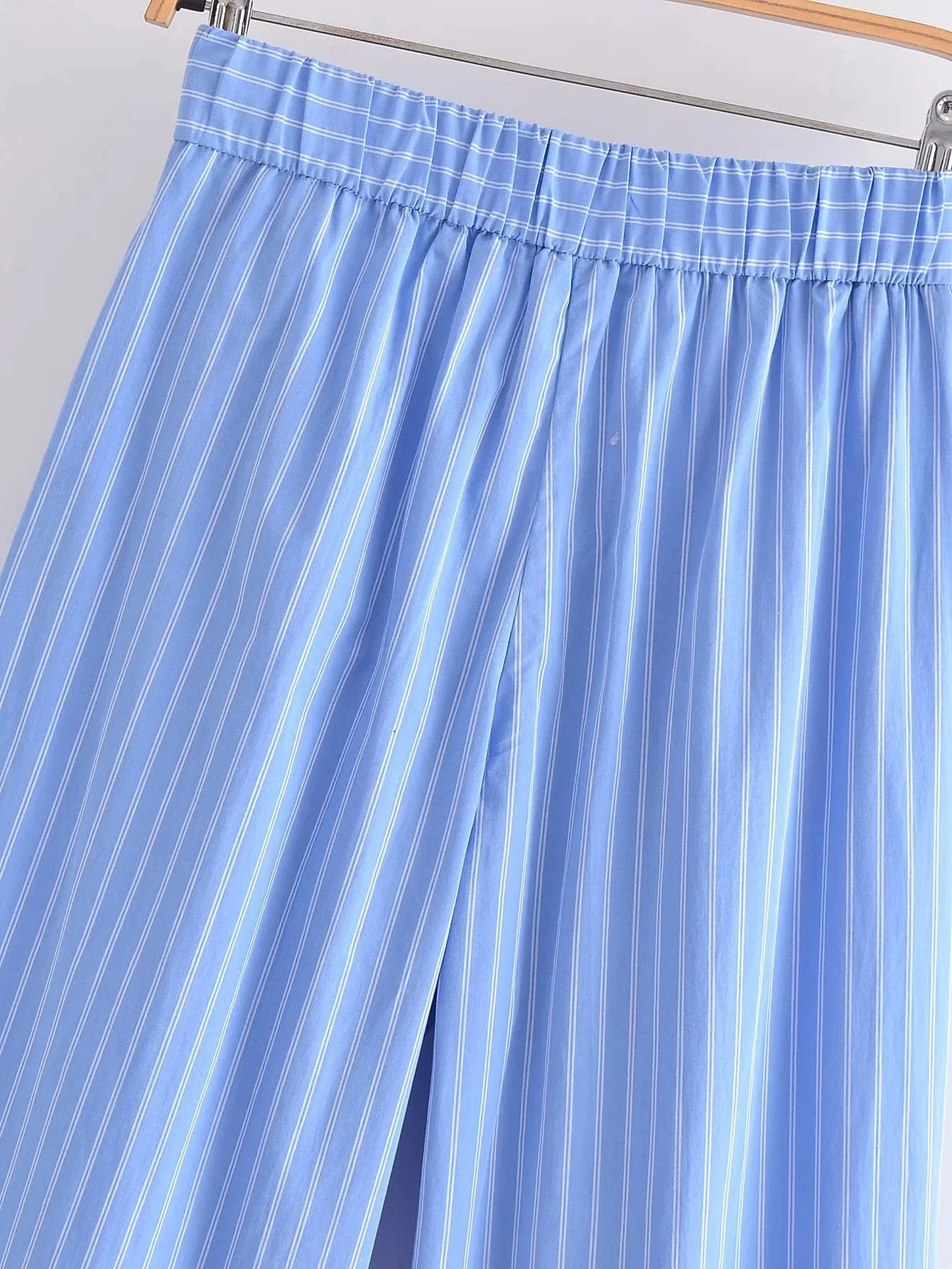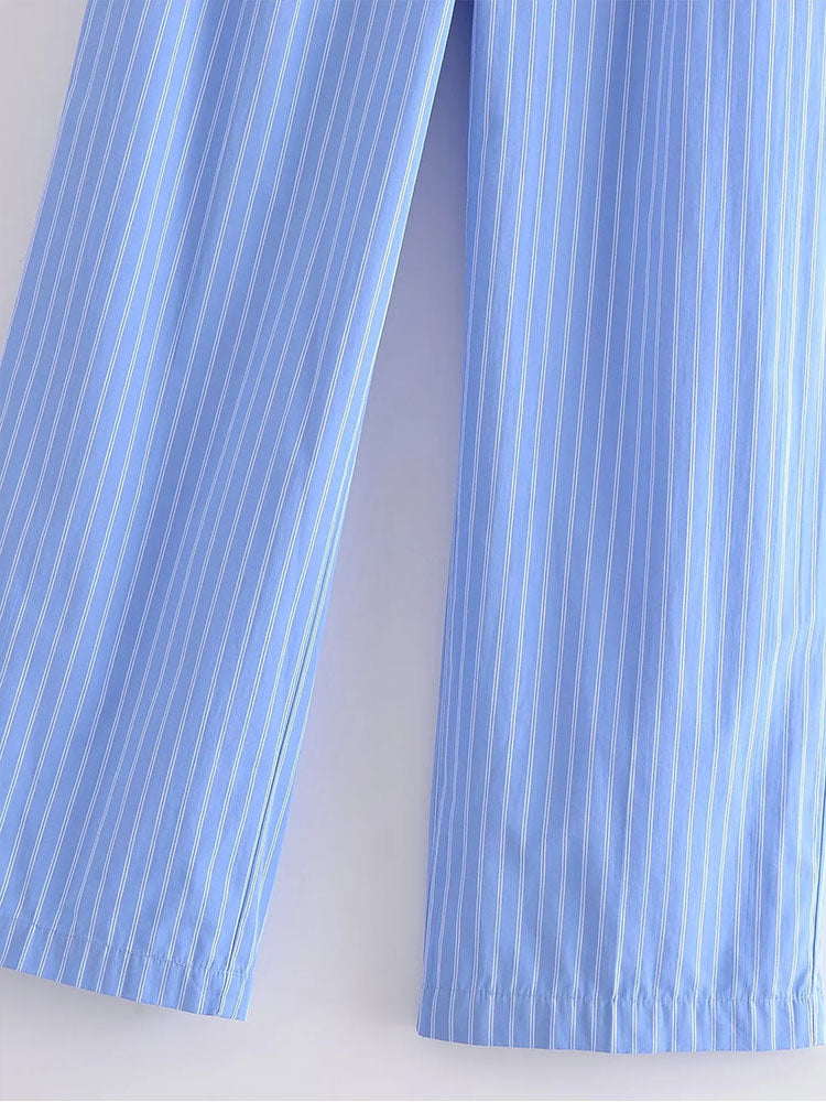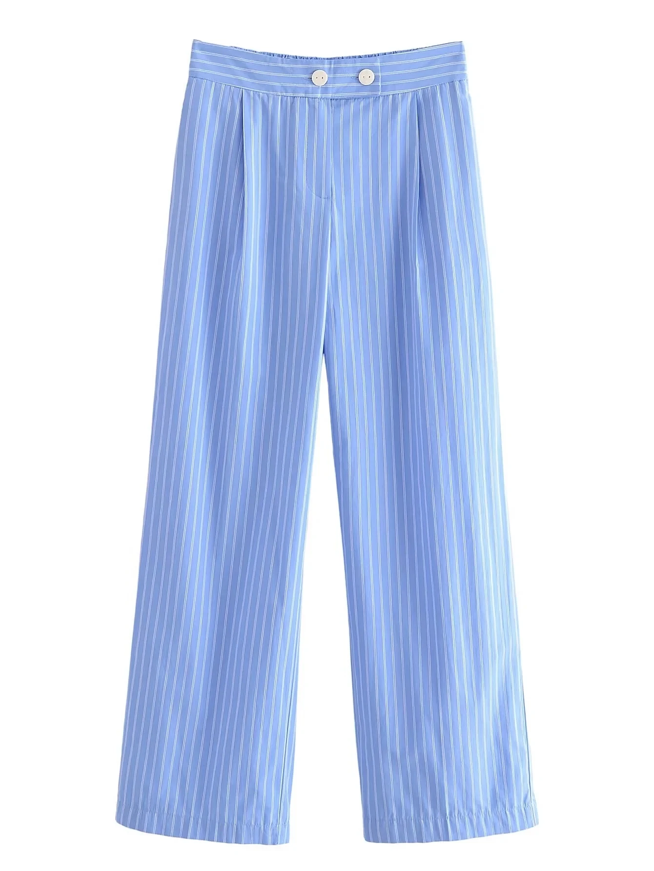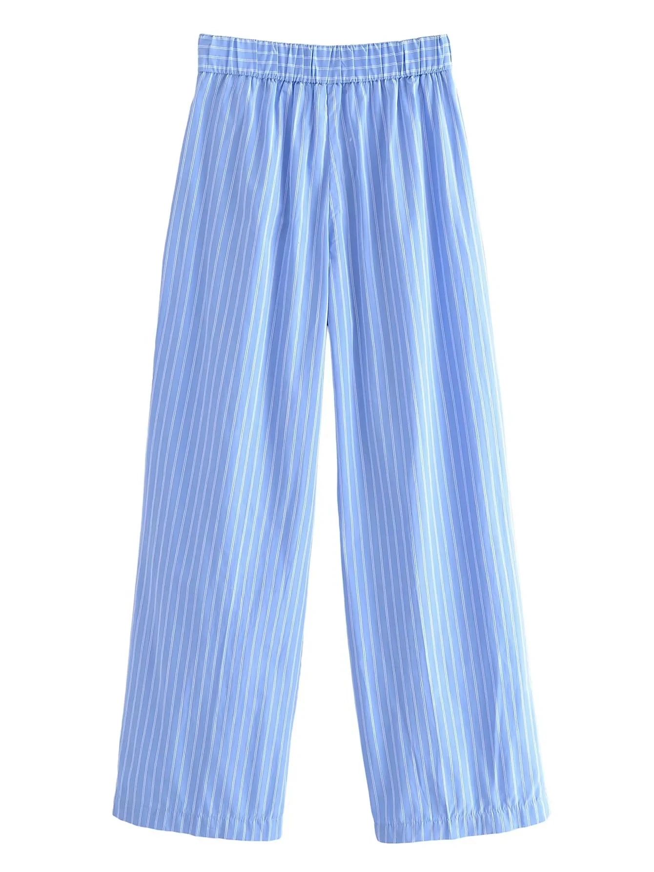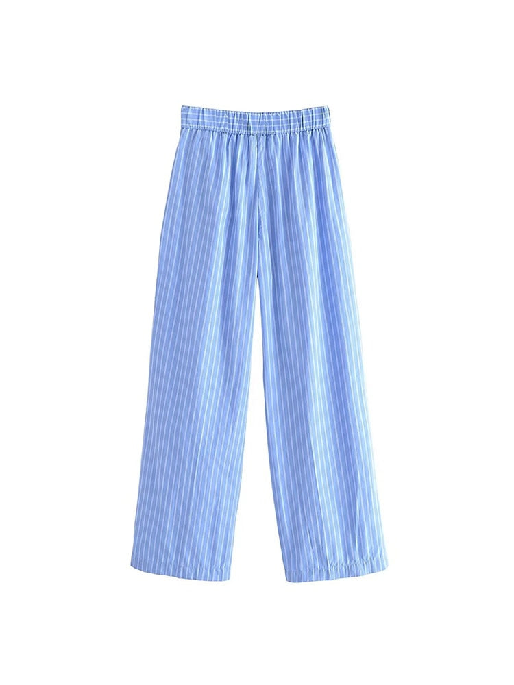 Znbbw TRAF Women Fashion Striped Print Straight Pants For Women Office Lady High Waist Long Trousers Women