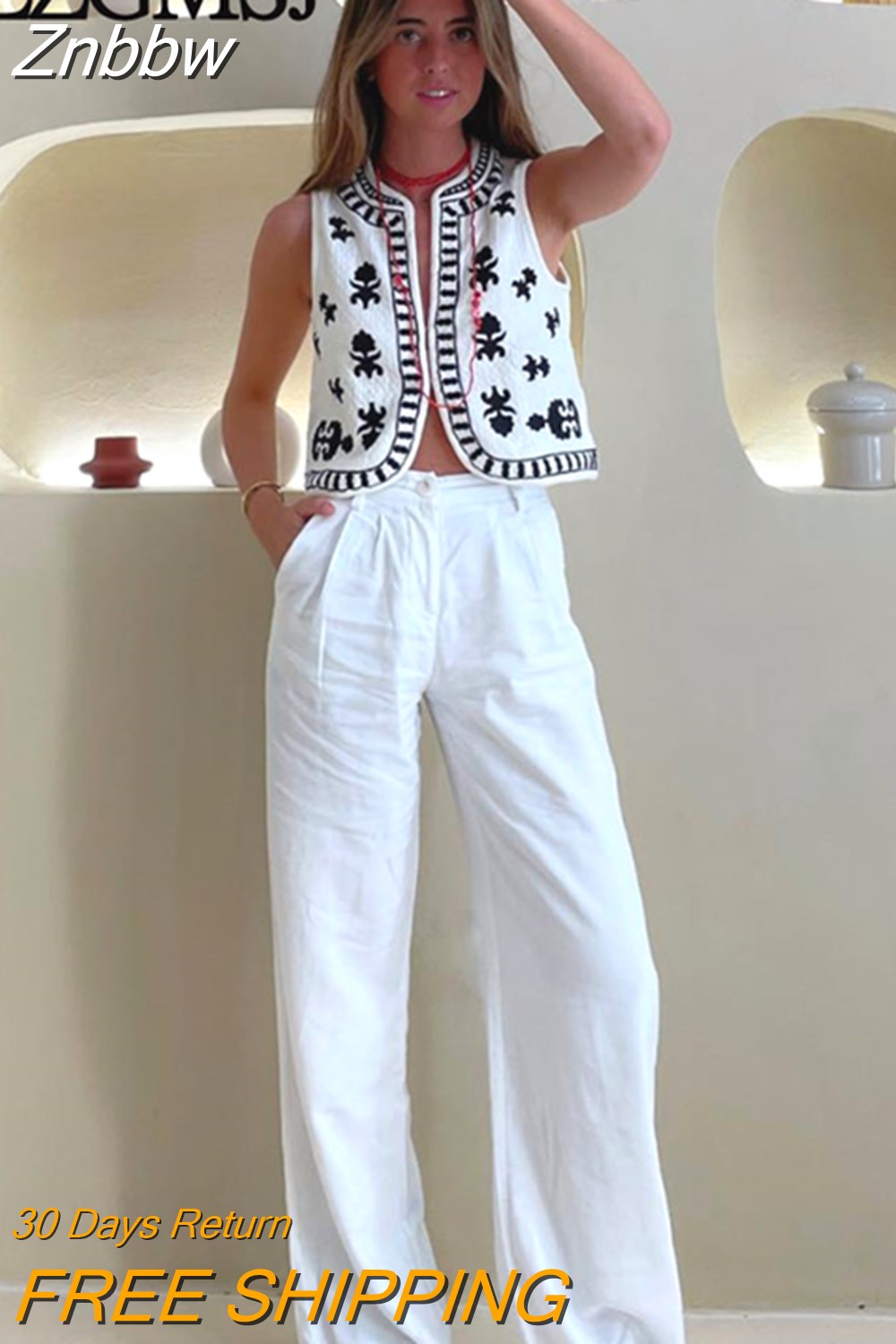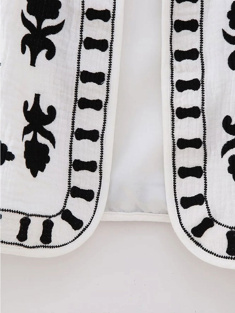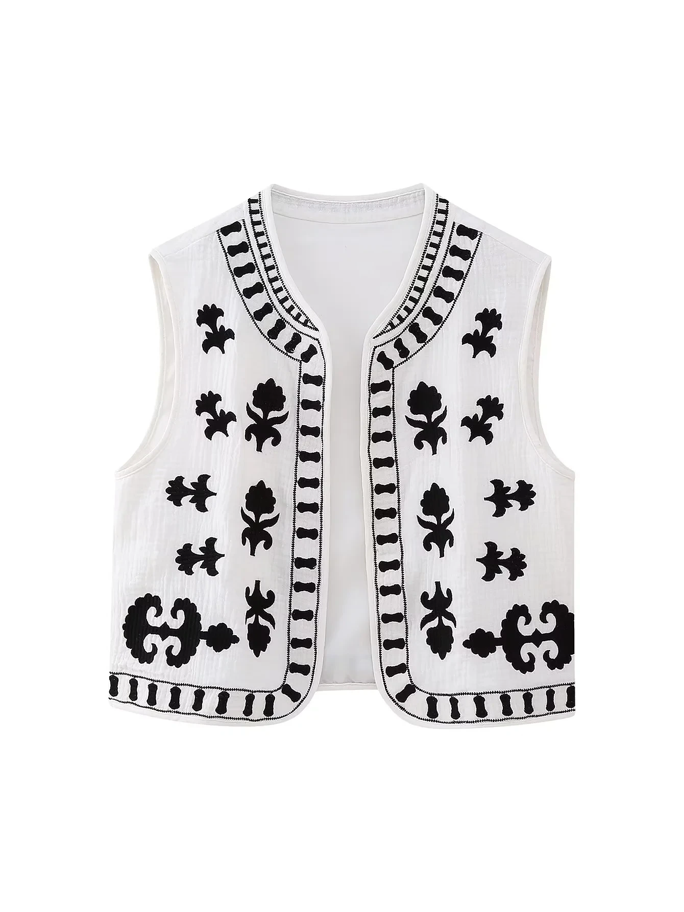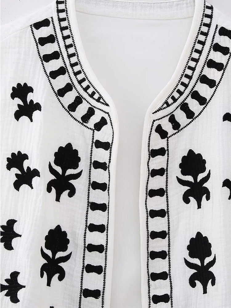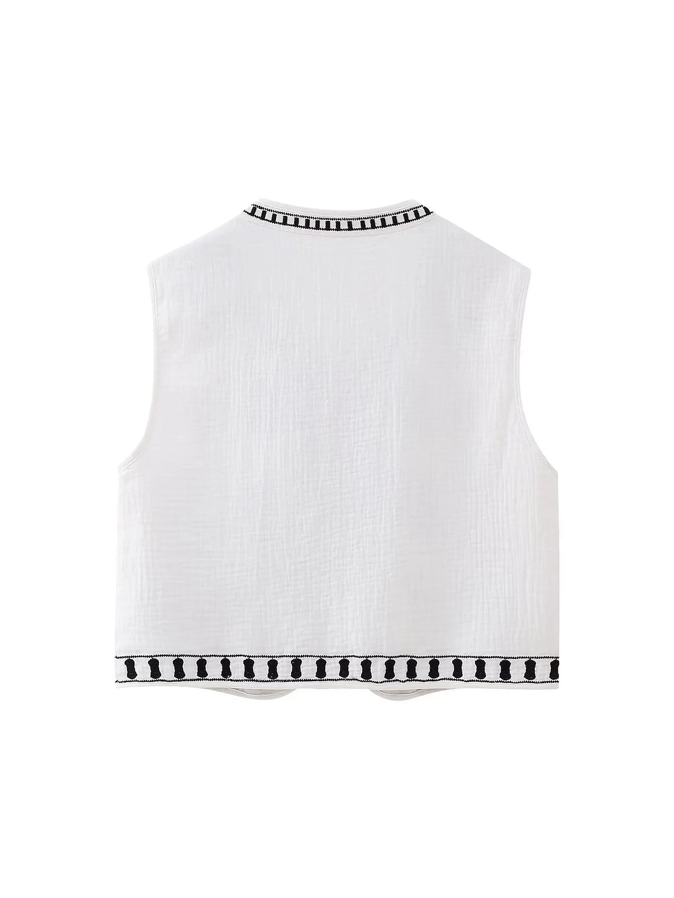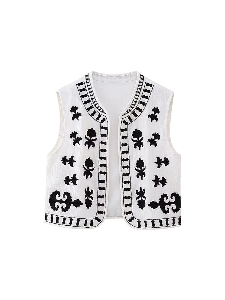 Znbbw TRAF Women Floral Embroidery Cardigan Vest Vintage V Neck Short Waistcoat Summer Female Casual Streetwear Chic Vest Tops