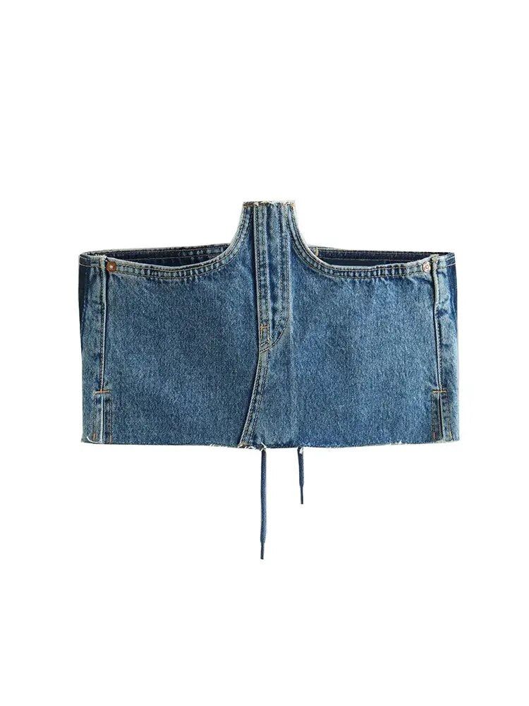 Znbbw TRAF Women Sexy Denim Camis Women Tops Blue Camis Sleeveless Female Denim Tank With Button Top
