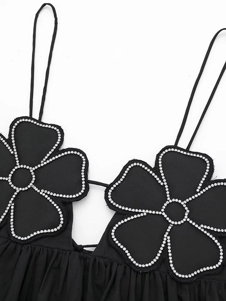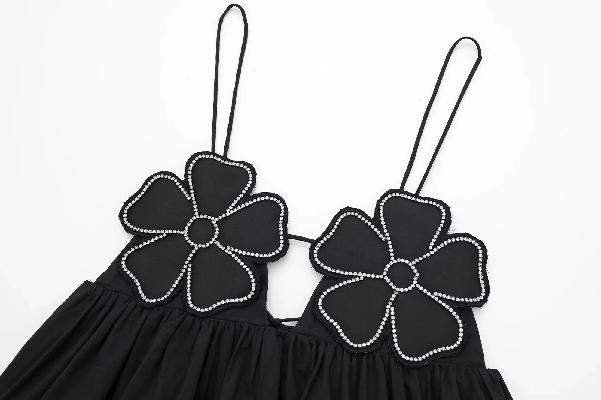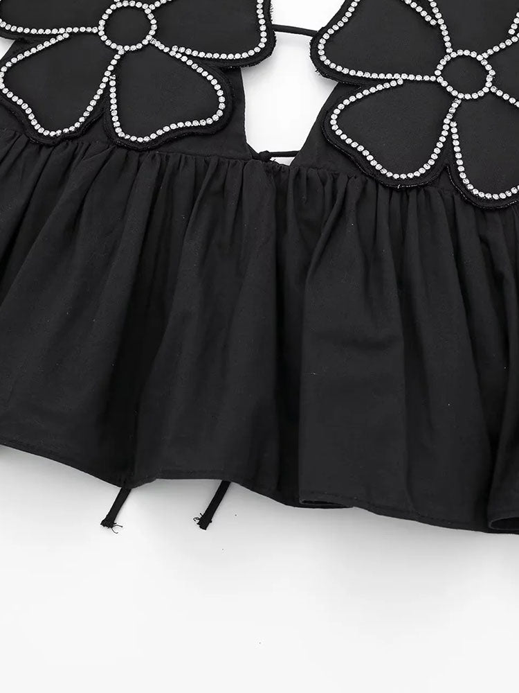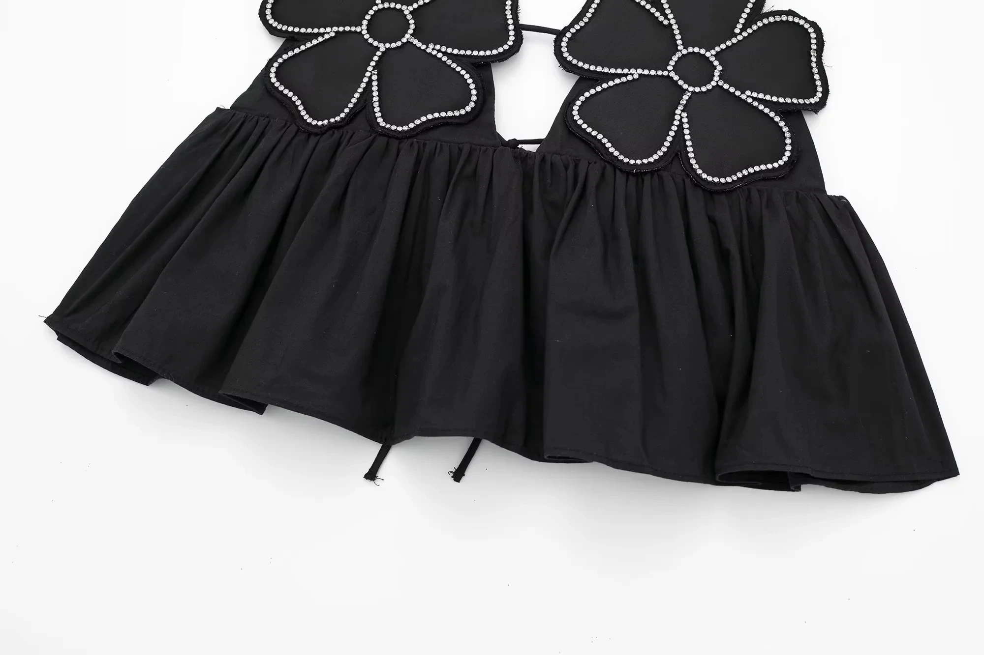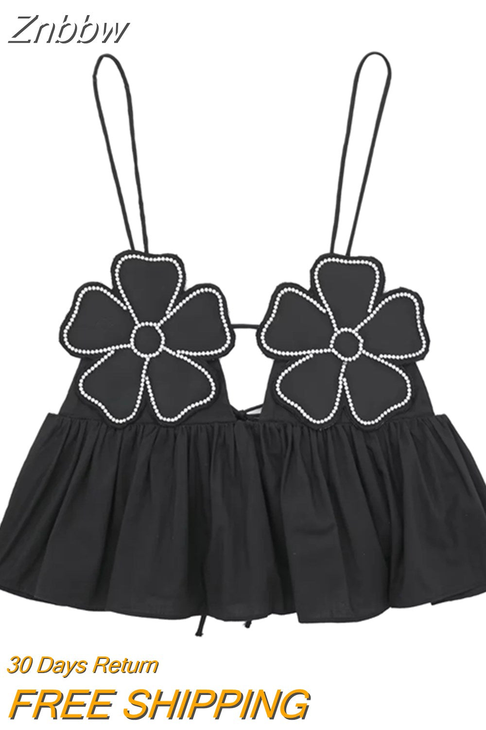 Znbbw TRAF Y2K Sexy Bra Top Women Camis 2023 Summer Sleeveless Backless Flowers Rhinestones A-Line Crop Top Female Tanks
