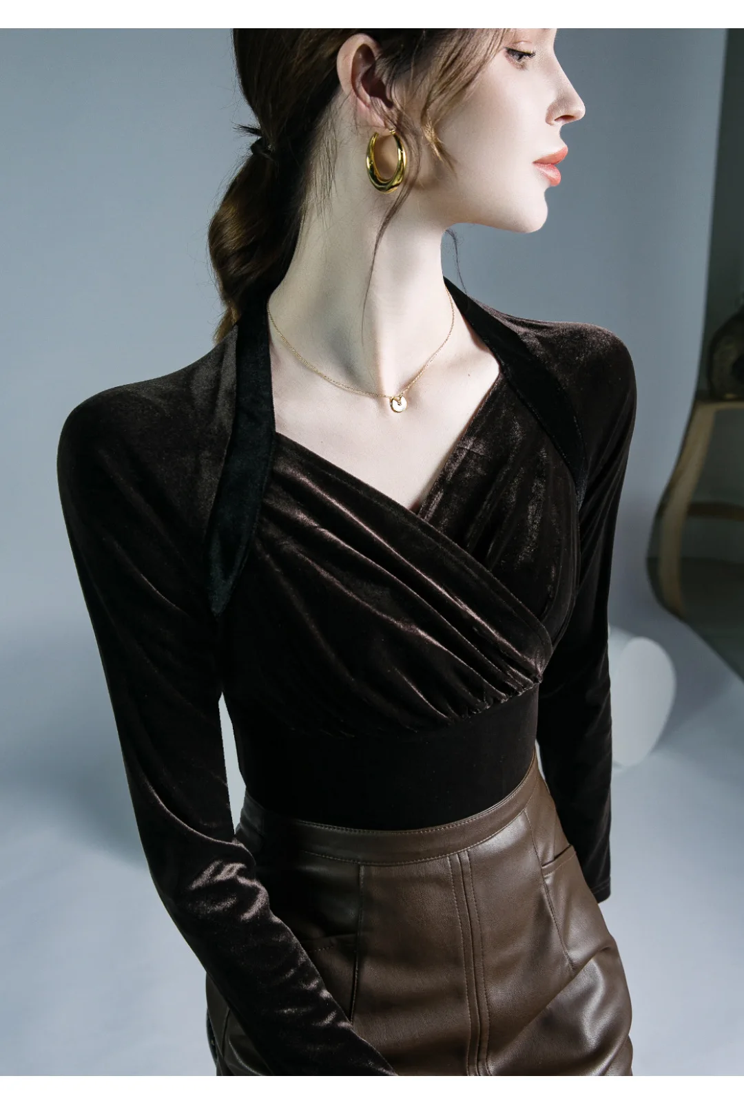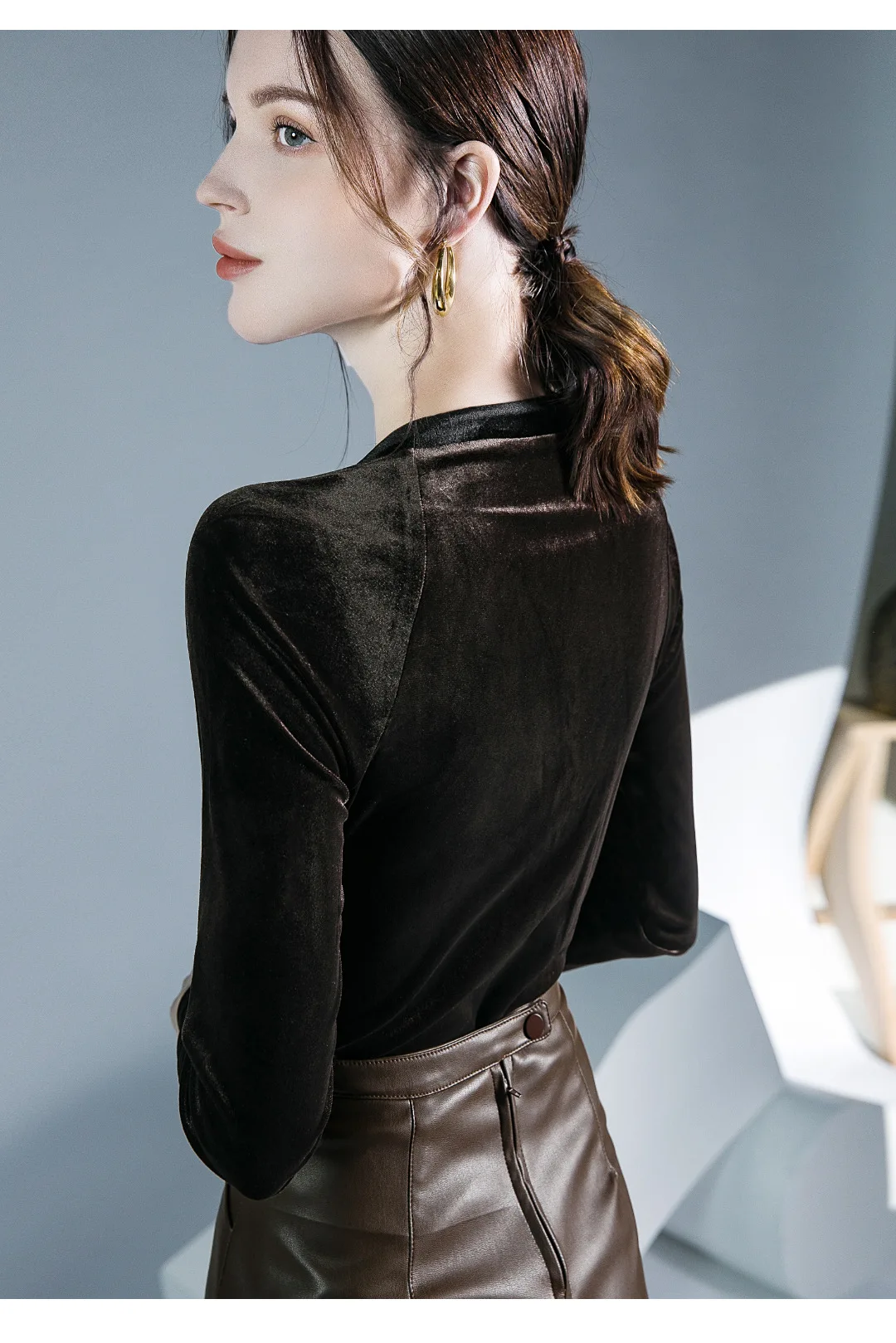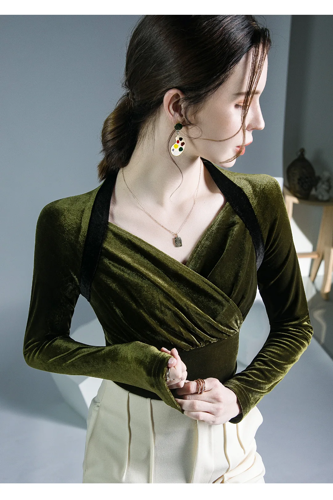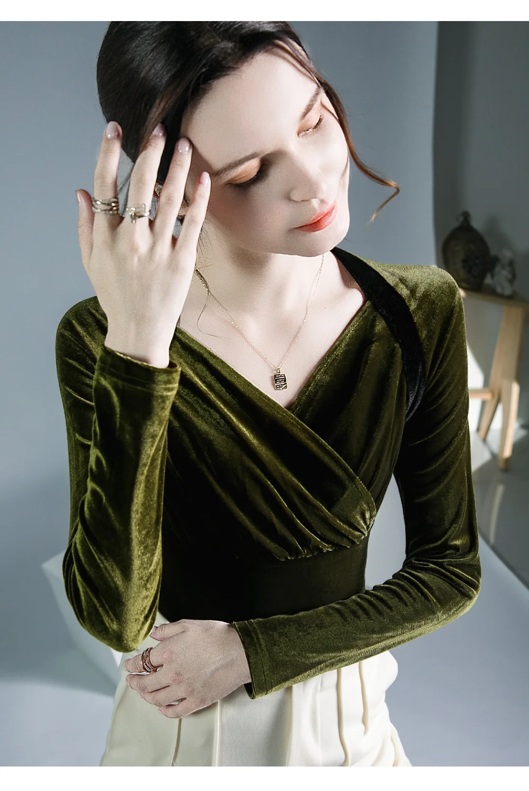 Znbbw TShirt Women Full Sleeve Vintage Crossed V Neck Tee Shirts Lady Stretchy Soft Fashion Base Tops T-shirts For Girls