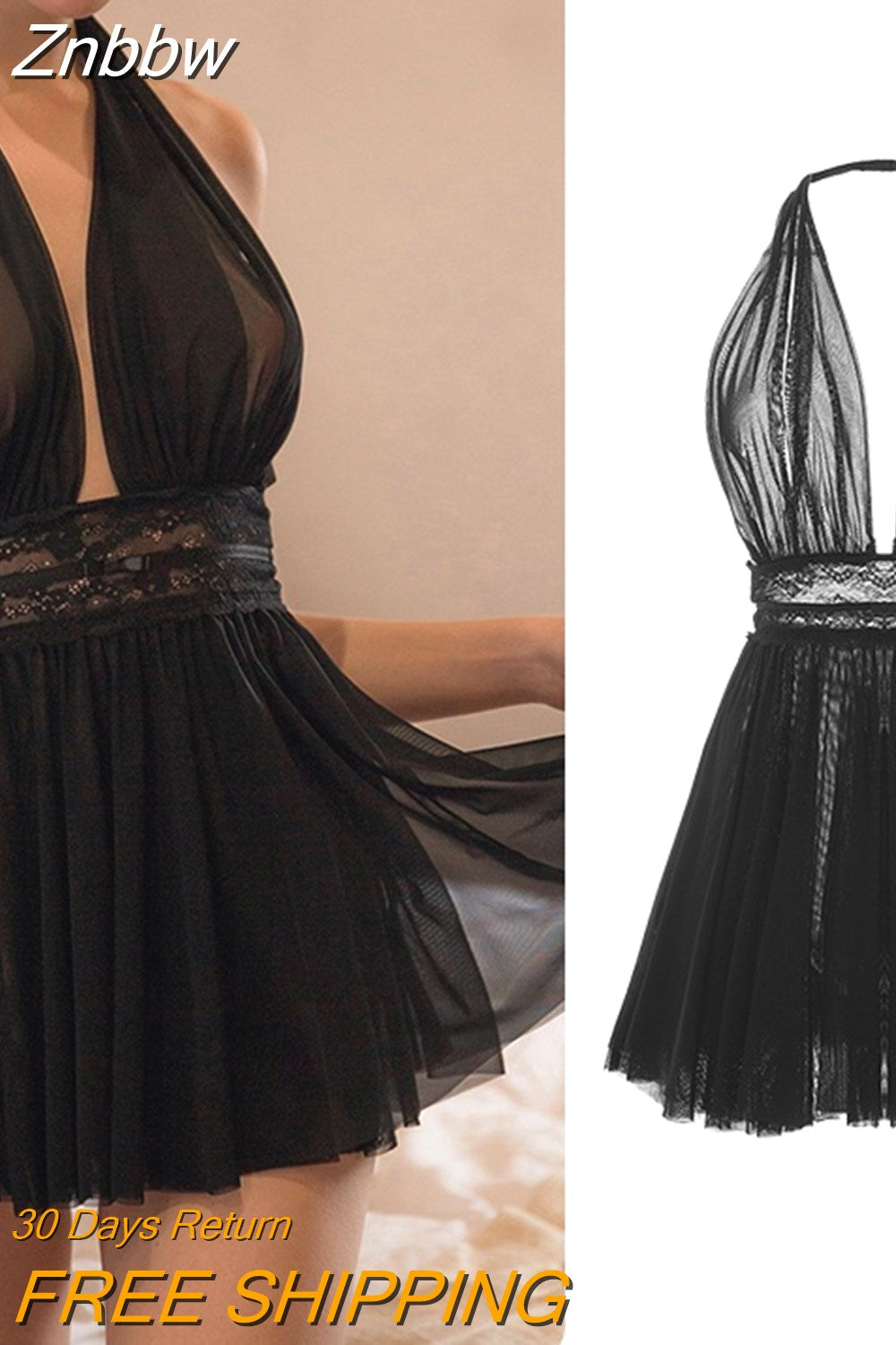 Znbbw Tulle Nightdress Lace Halter Neck Mesh Underwear Nighty for Ladies Night Dress Sleepwear Women Sexy Lingerie Nightwear