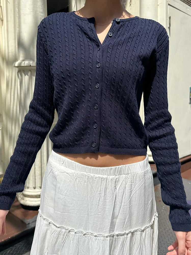 Znbbw Twist Knit Slim Cardigans Women Cotton Round Neck Autumn Single Breasted Sweater Coats Chic Vintage Sweet Cropped Tops Y2k