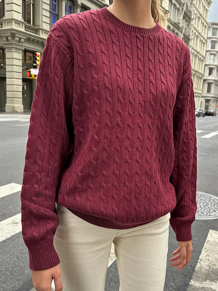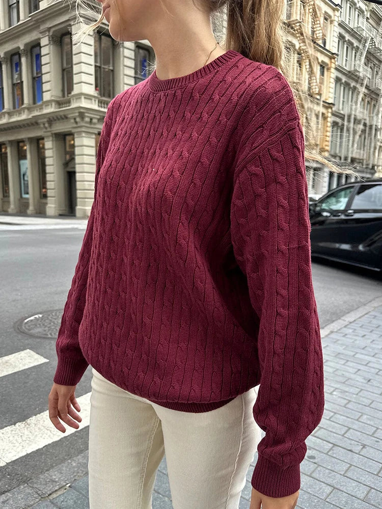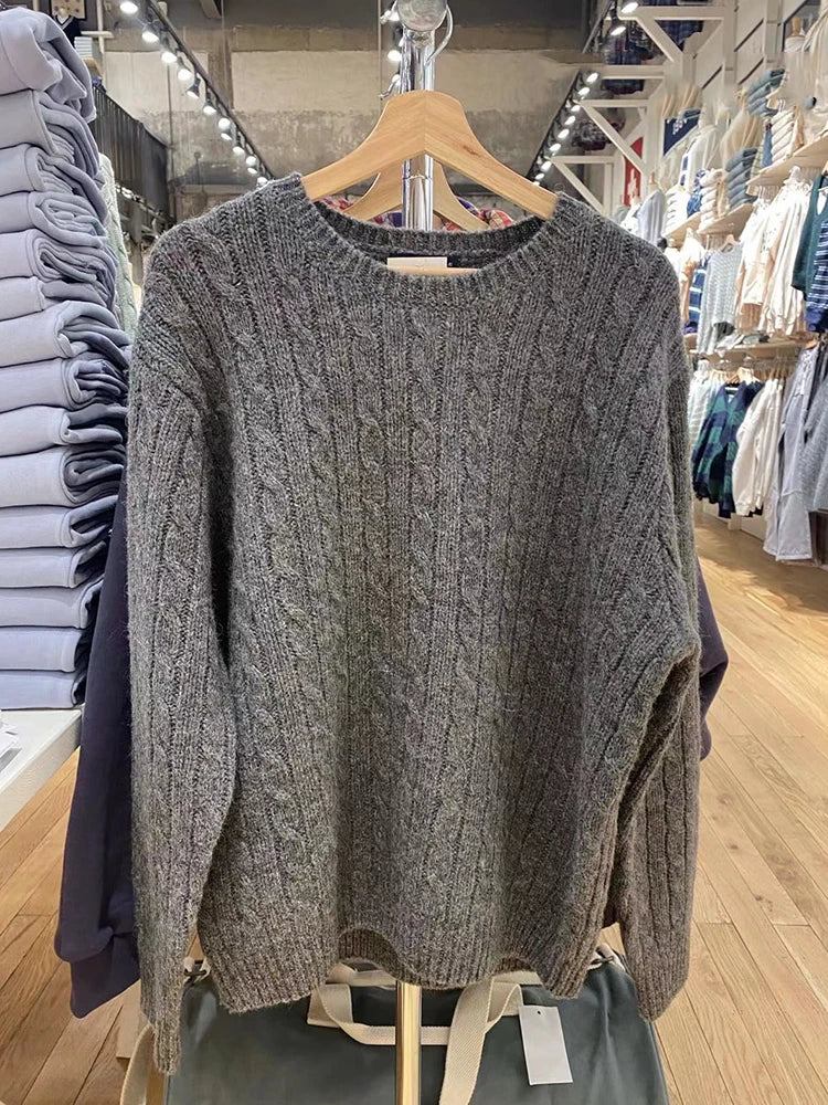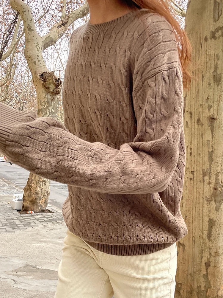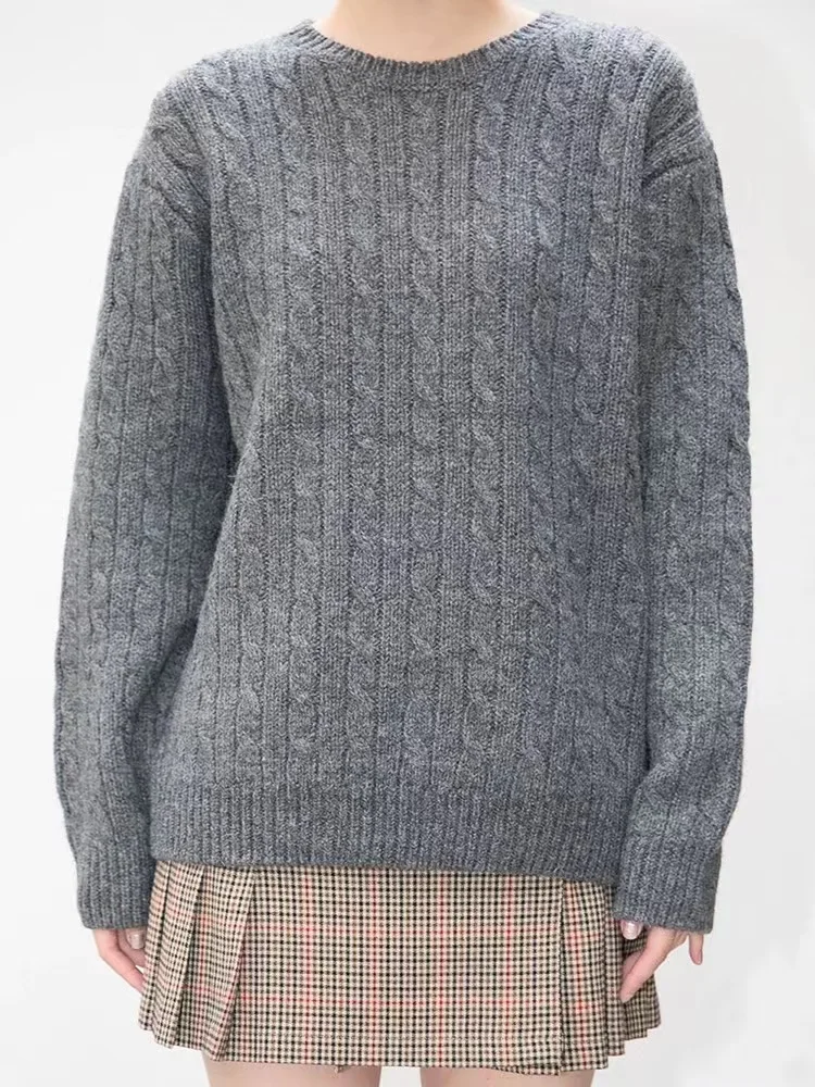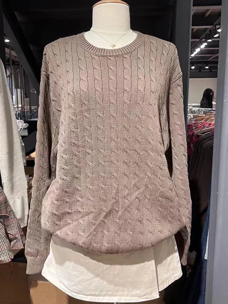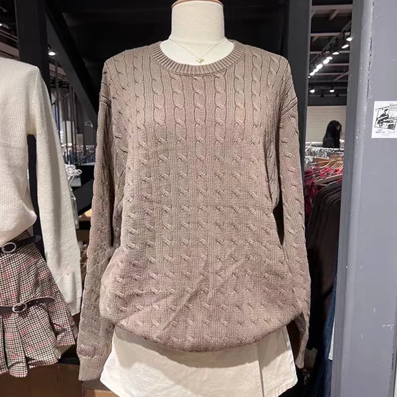Znbbw Twist Loose Knit Sweaters Autumn Cotton Round Neck Preppy Style Pullovers Jumper Women Y2k Streetwear Thick Sweater Tops