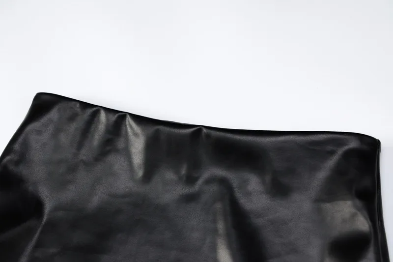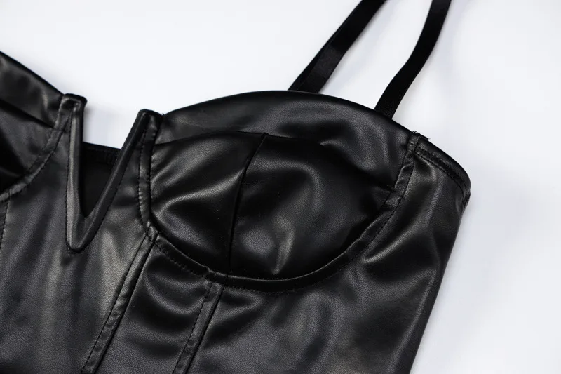 Znbbw Two Piece Sets Womens PU Leather Sexy Outifits Cami Top and Split Mini Skirt Women Grunge Clothes Party Black Set