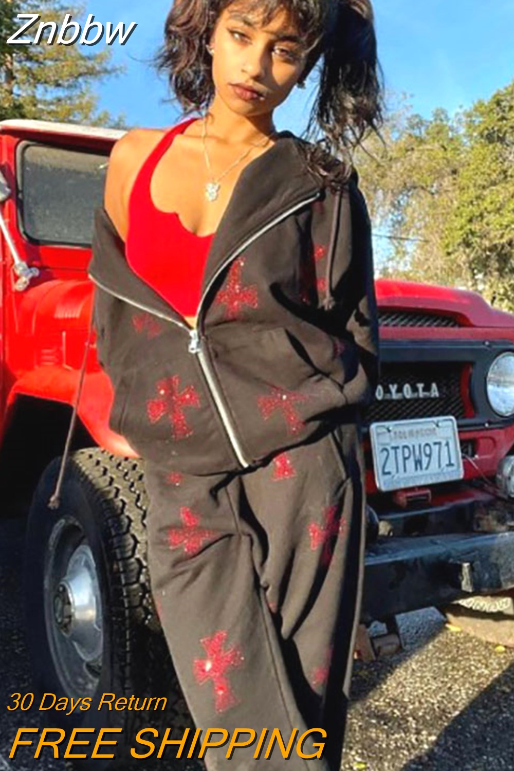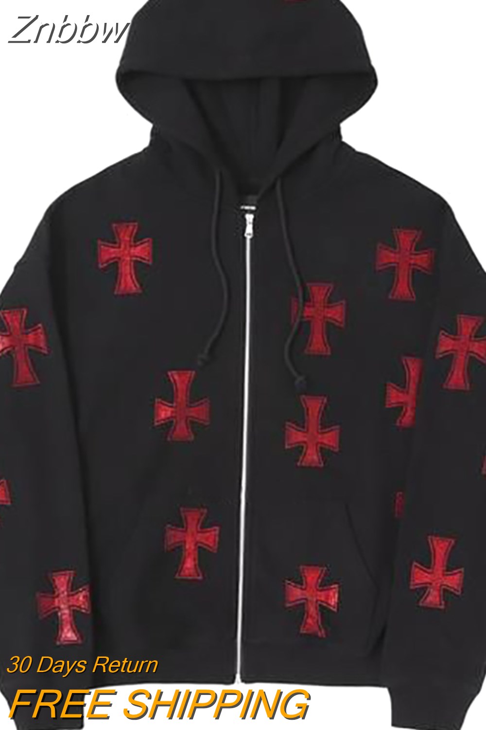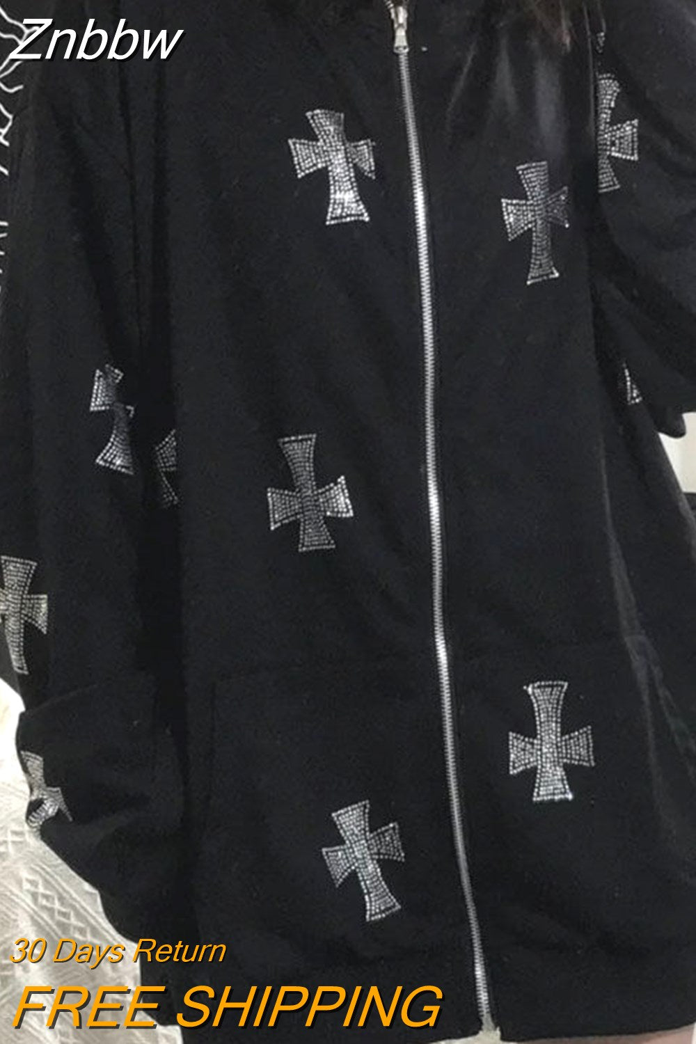 Znbbw Up Hoodie Y2K Vintage rhinestone graphics Oversized Hoodies Female Zip Up Long Sleeve Women's Sweatshirt Grunge clothing