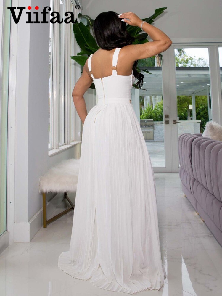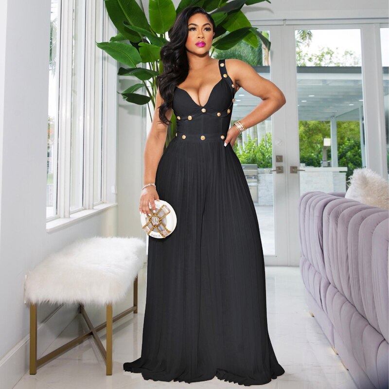 Znbbw V-Neck White Elegant Button Front Pleated Chiffon Jumpsuit Women Sleeveless Festival Outfits Long Jumpsuits