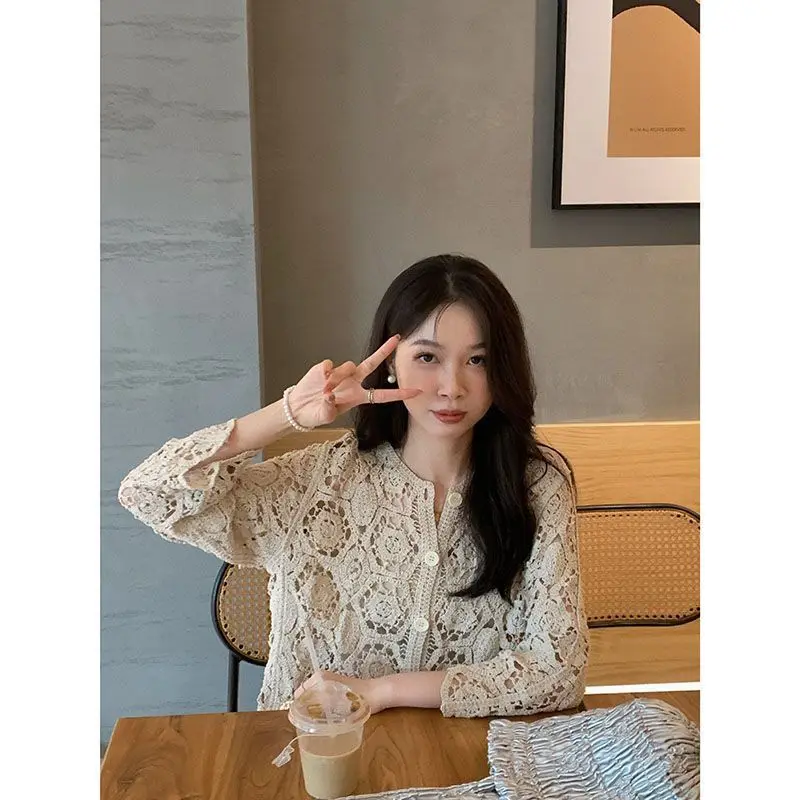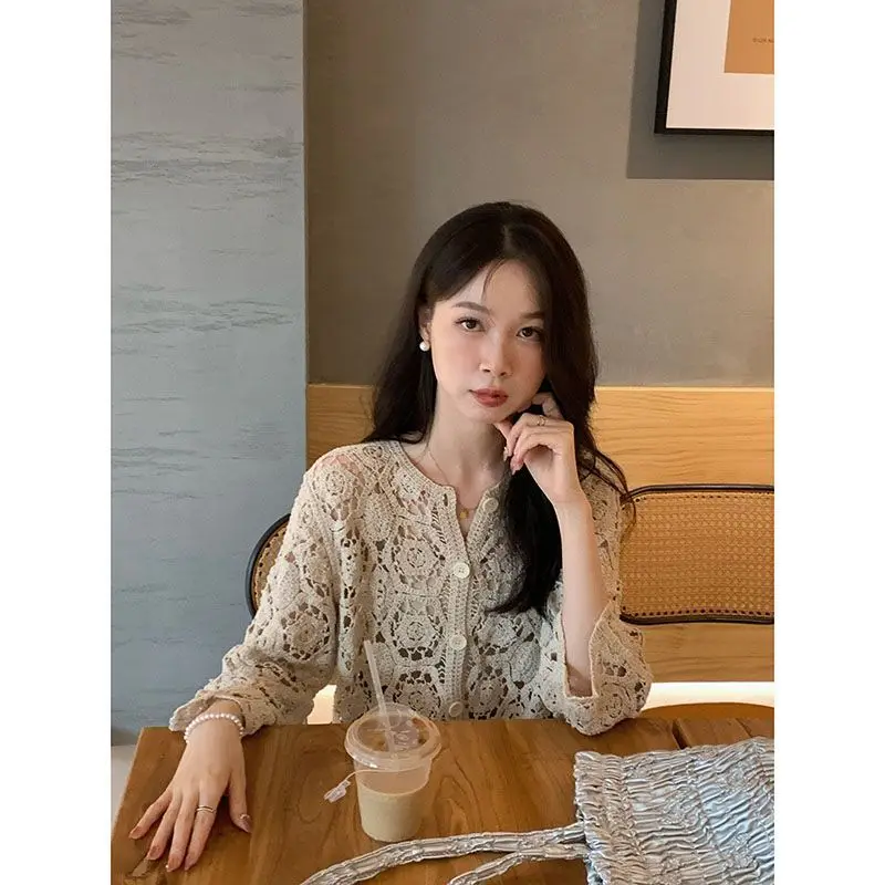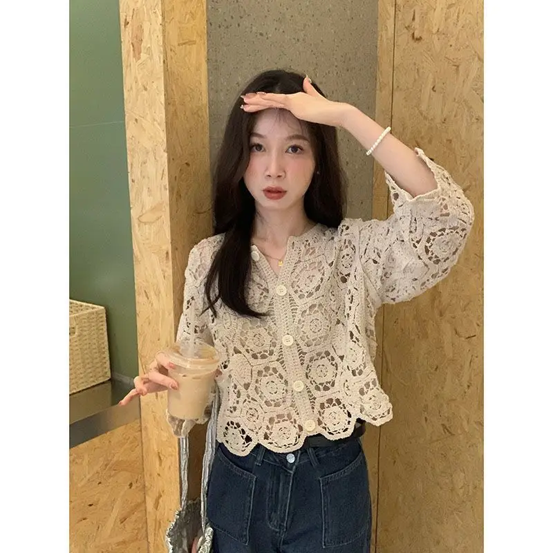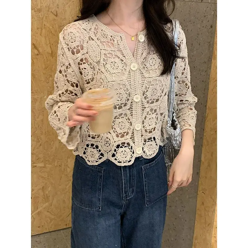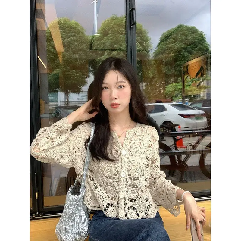 Znbbw version of chic niche sweet hollow knit jacket cardigan women's autumn new embroidered lace long sleeved top trend
