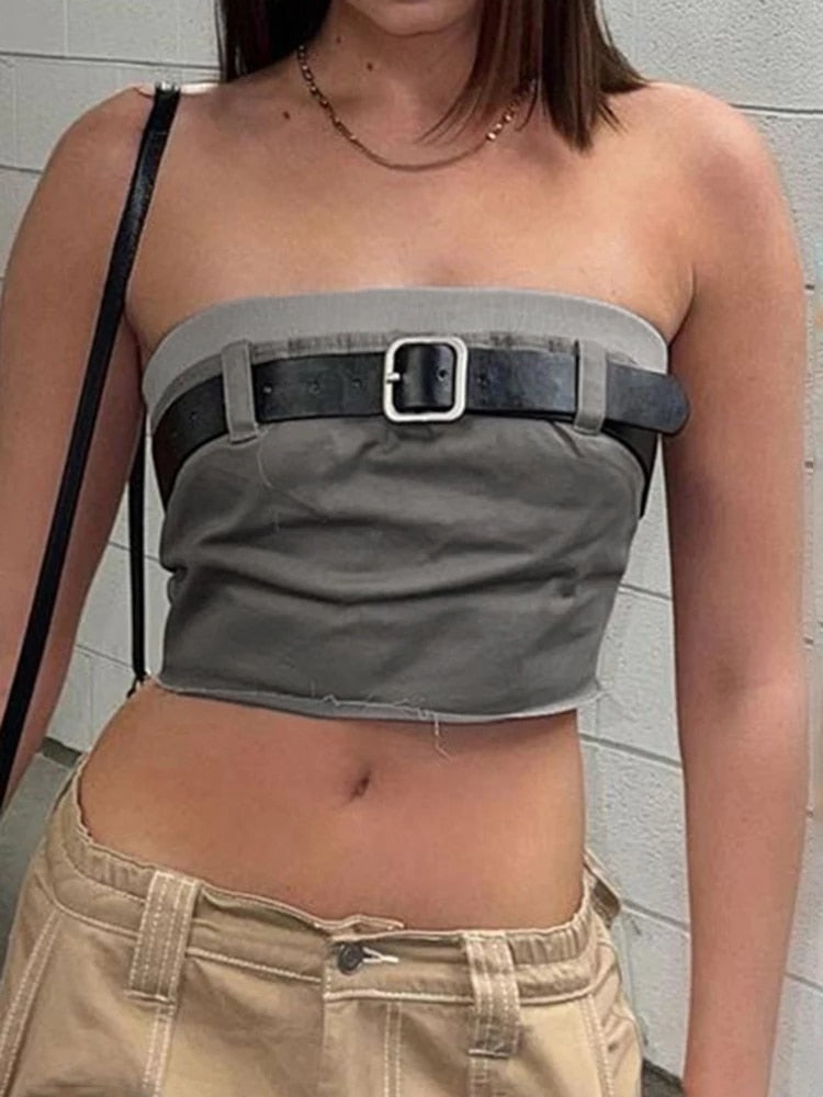 Znbbw Vintage 90s Patchwork Crop Tops Summer Fashion Chic Vest Street Style E-girl Aesthetic Women Sleeveless Strapless Tanks