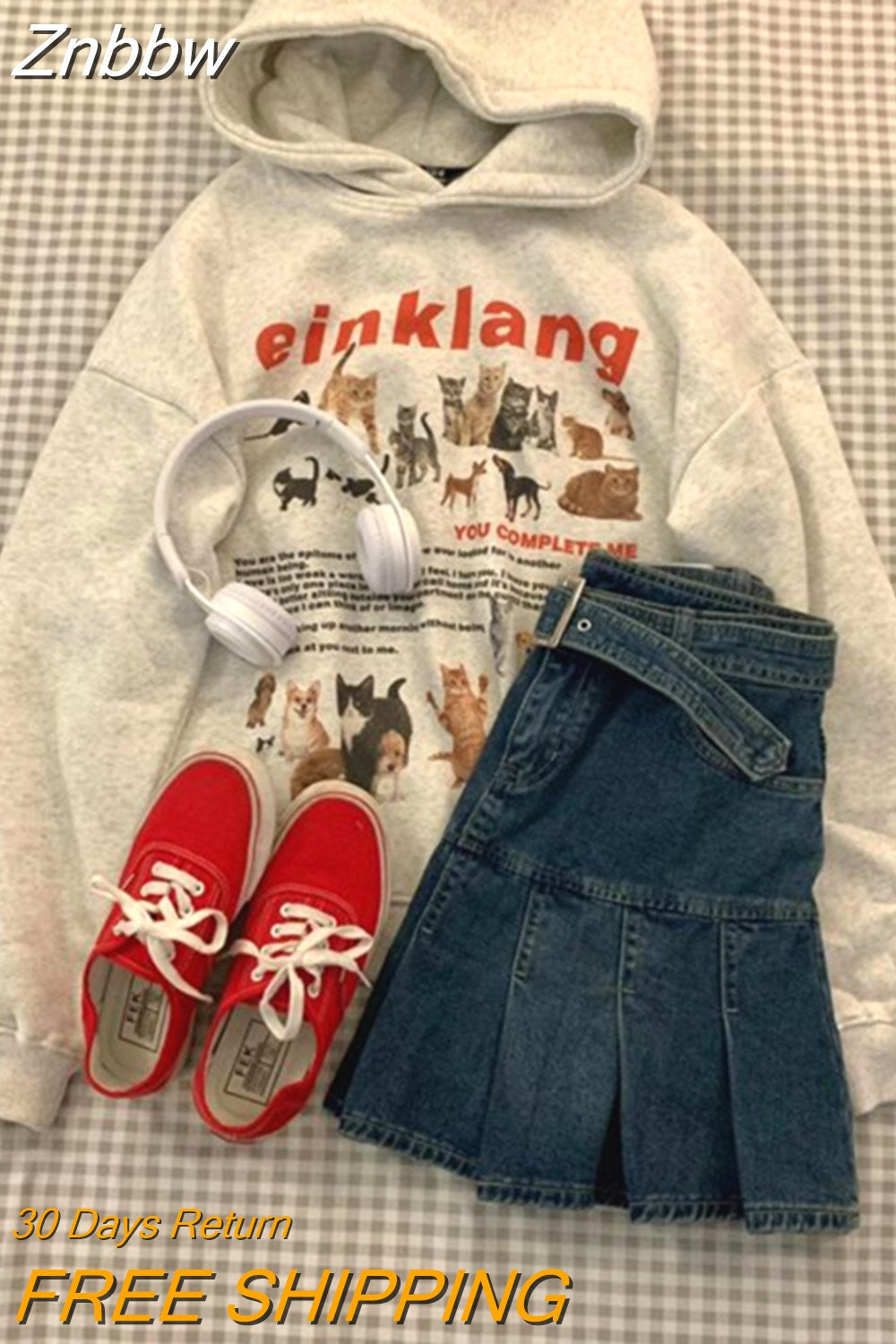 Znbbw Vintage Animal Print Hoodies Women Harajuku Kawaii Cartoon Oversized Sweatshirts Retro Loose Casual Tops Y2K Streetwear