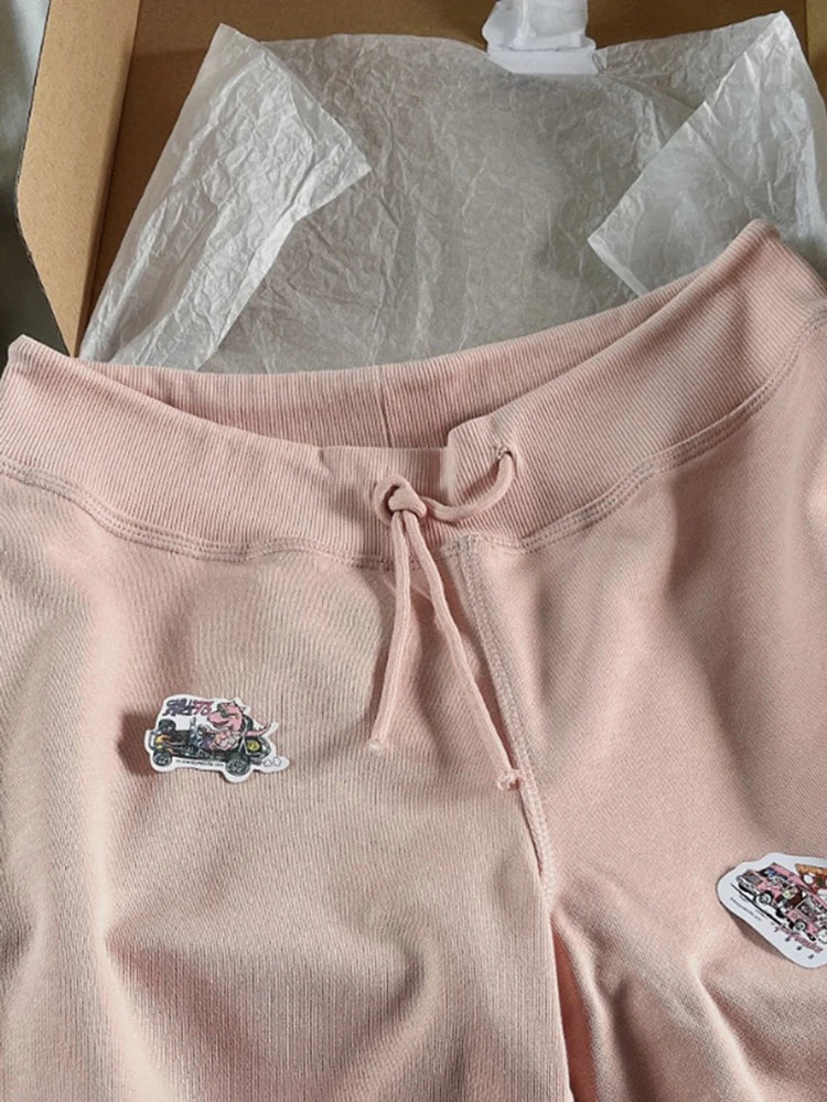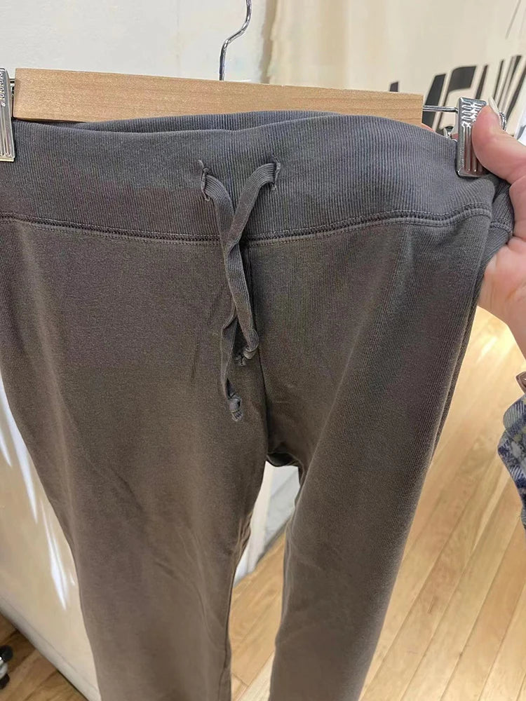 Znbbw Vintage Drawstring Flare Pants Women Autumn Soft Cotton Straight High Waist Trousers Casual Simple Loose Sweatpants Y2k