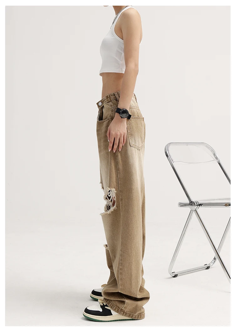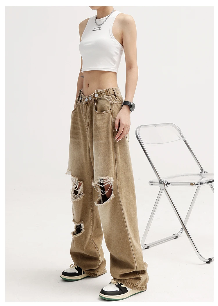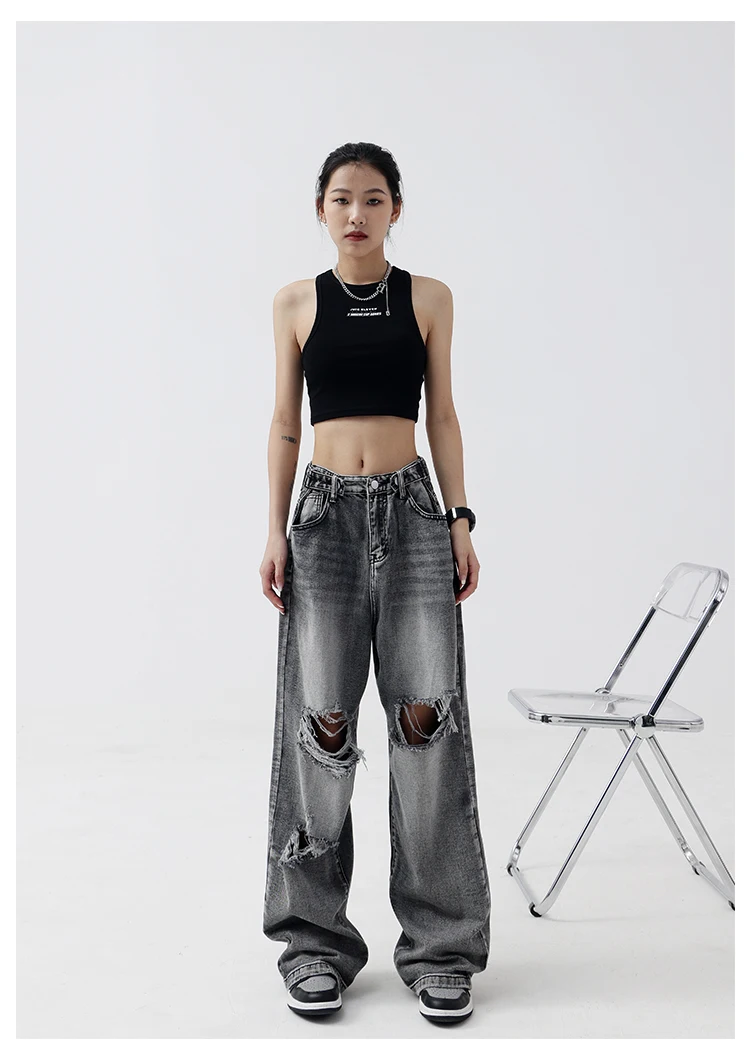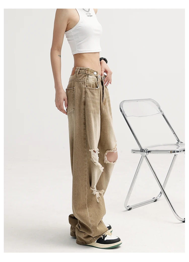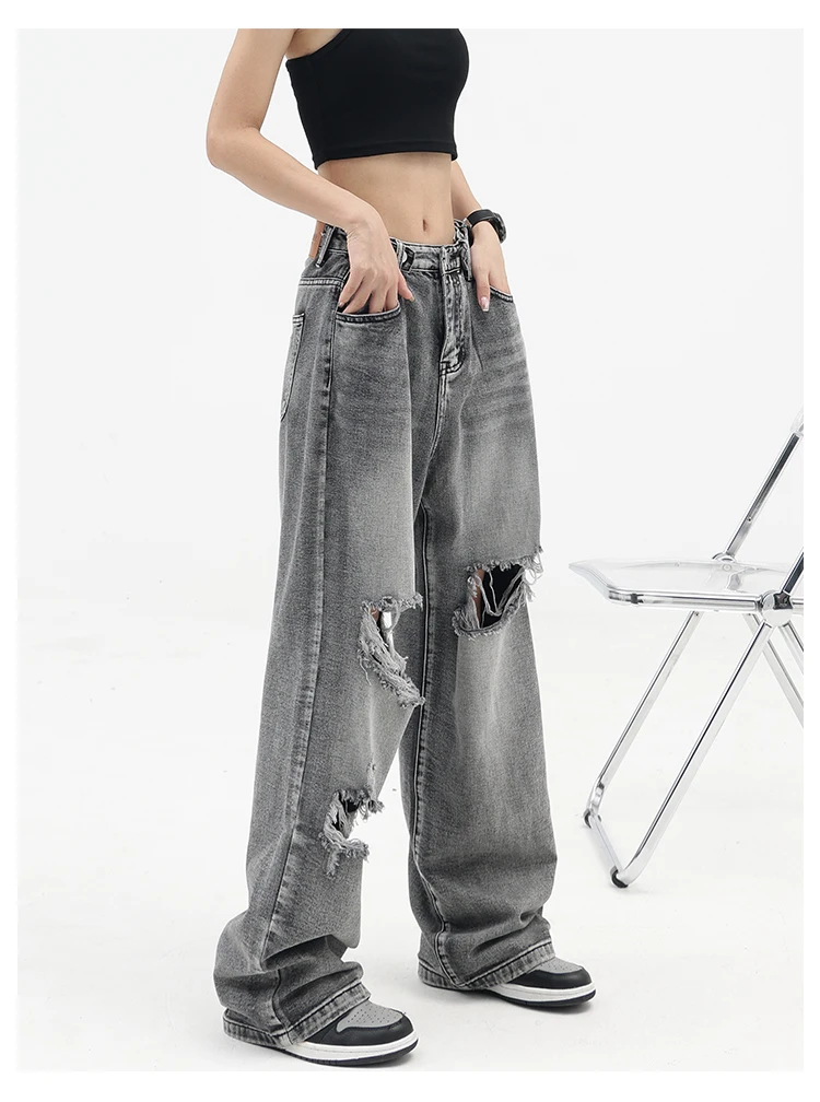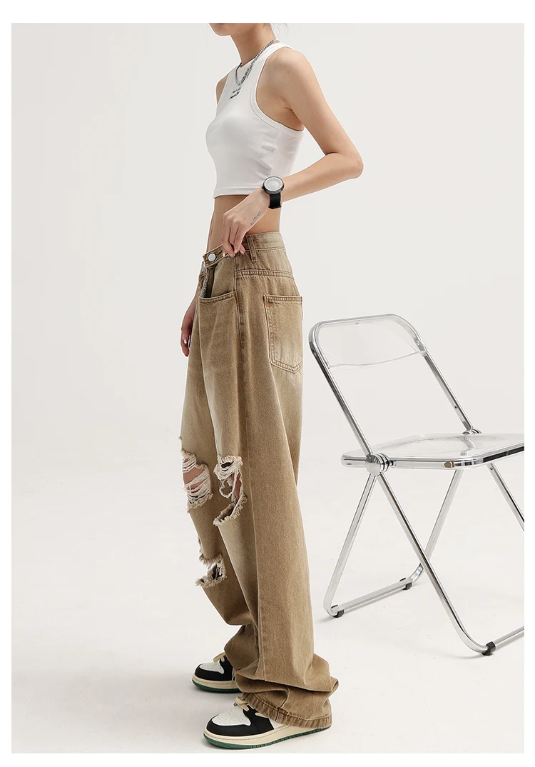 znbbw Vintage High Waist Loose Ripped Jeans Pants 2023 Fashion Women's Grunge Baggy Y2K Wide Leg Female Denim Trouser