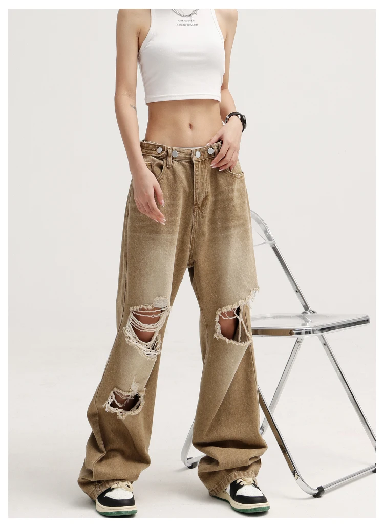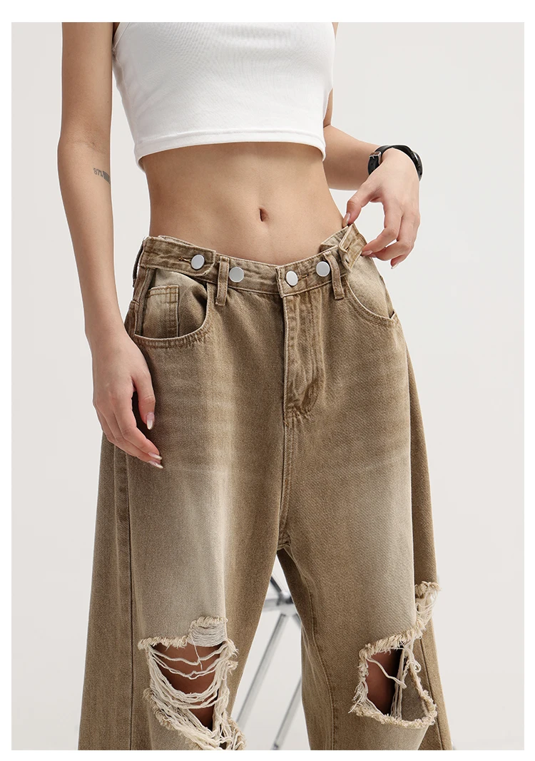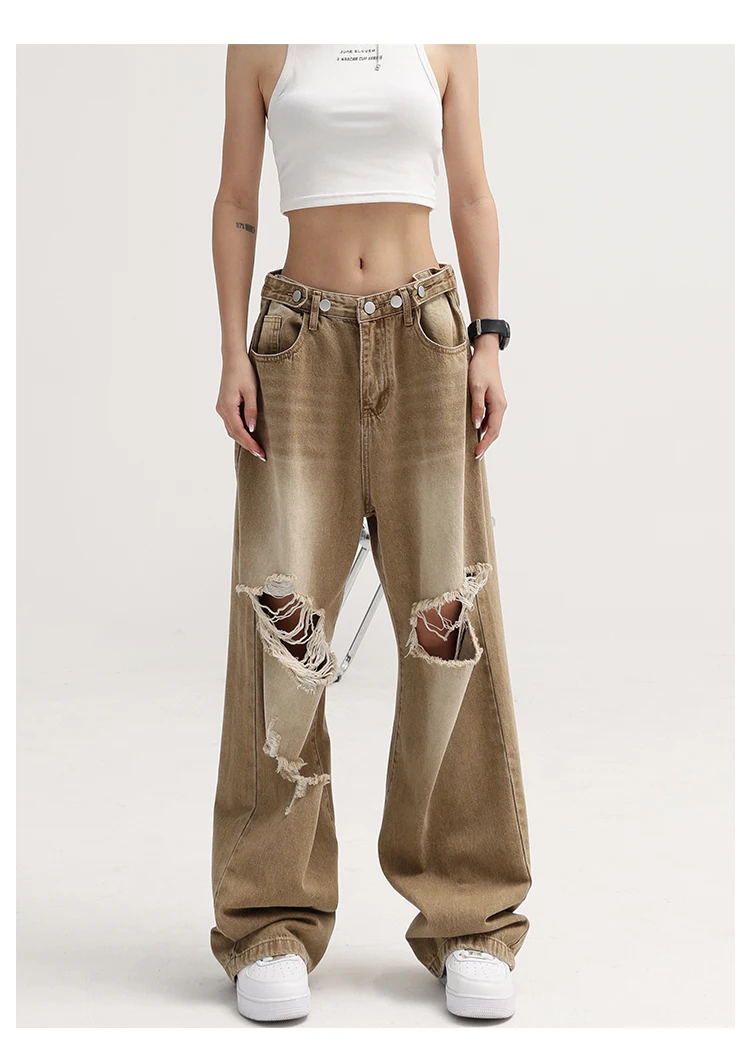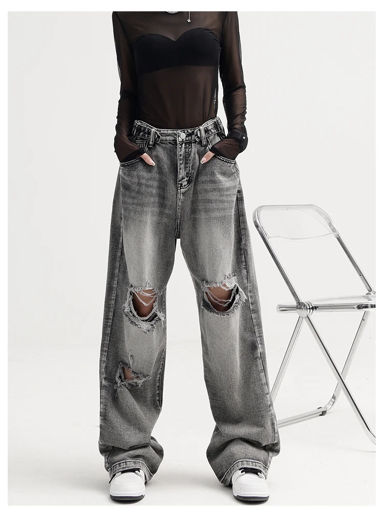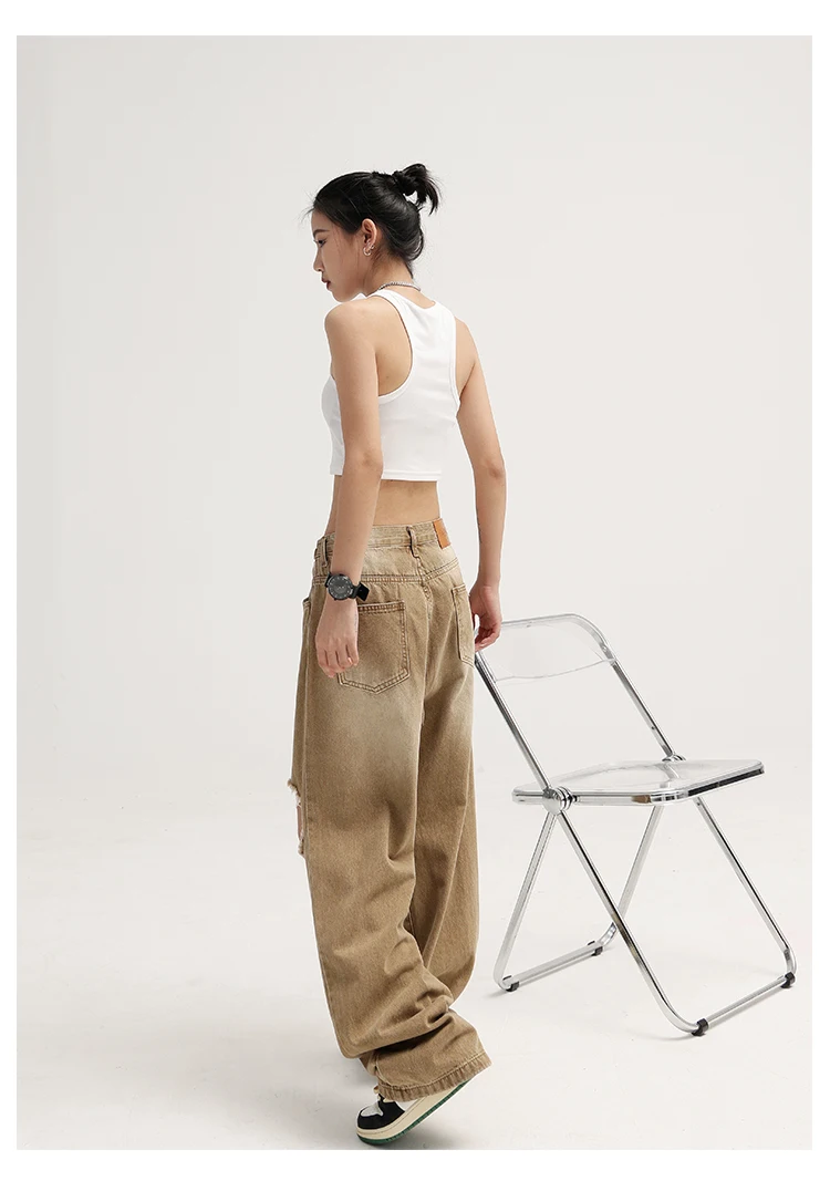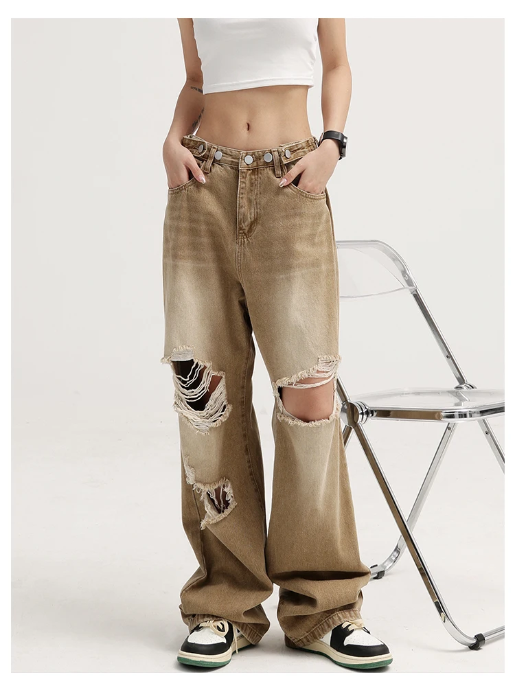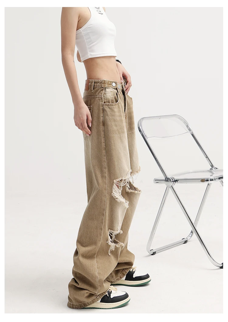 znbbw Vintage High Waist Loose Ripped Jeans Pants 2023 Fashion Women's Grunge Baggy Y2K Wide Leg Female Denim Trouser
