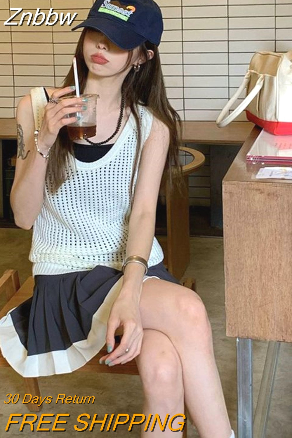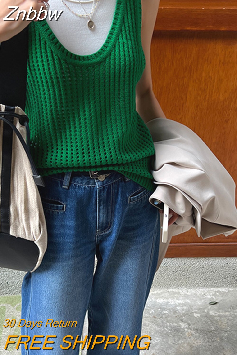 Znbbw Vintage Knitted Tank Tops Women Harajuku Solid Hollow Out Vest Korean Fashion Loose Casual Sleeveless Tops High Street