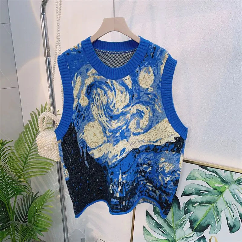 Znbbw Vintage Pullovers for Women Jacquard Sleeveless Design Aesthetics Sweater Vest Loose Autumn Winter Lazy Style Clothing