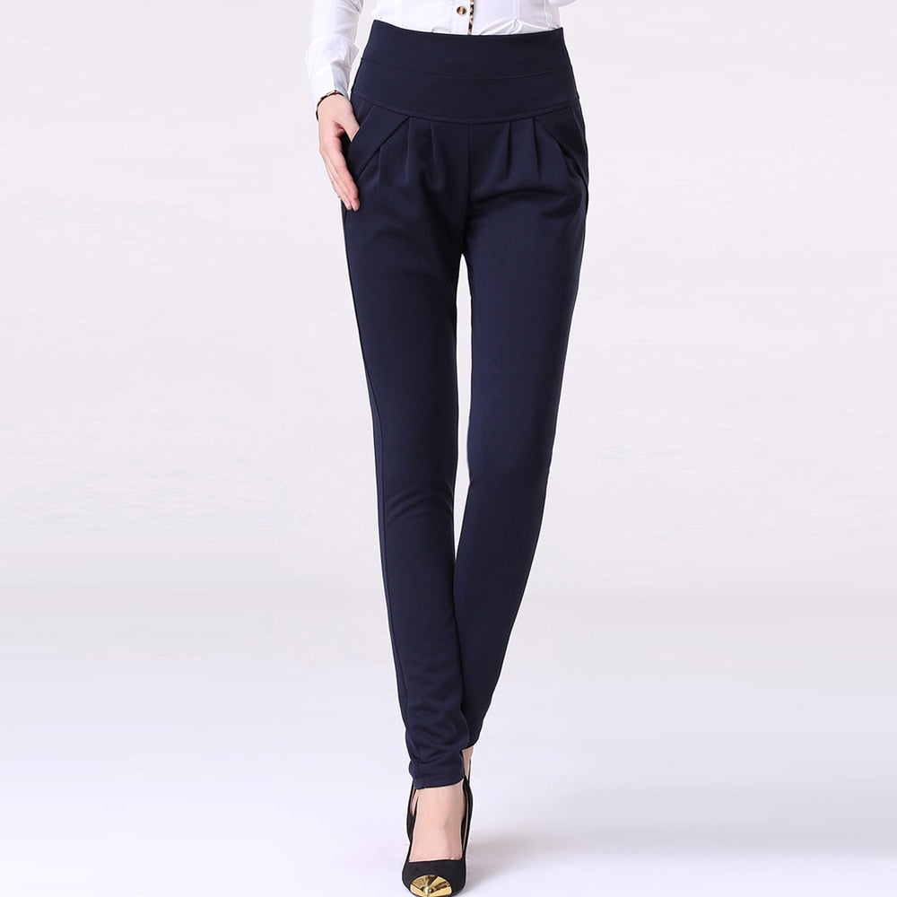 Znbbw Waist Harem Pants For Women Chic Pleated Stretch Straight Trousers Womens Elegant Office Lady Vintage Casual Pants