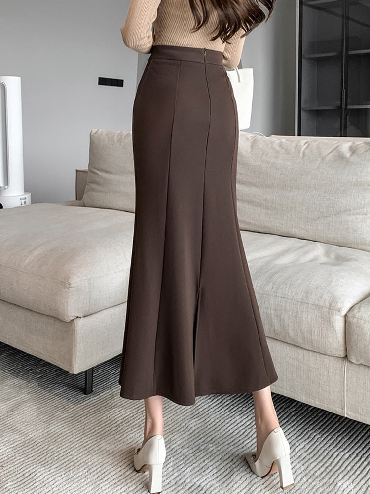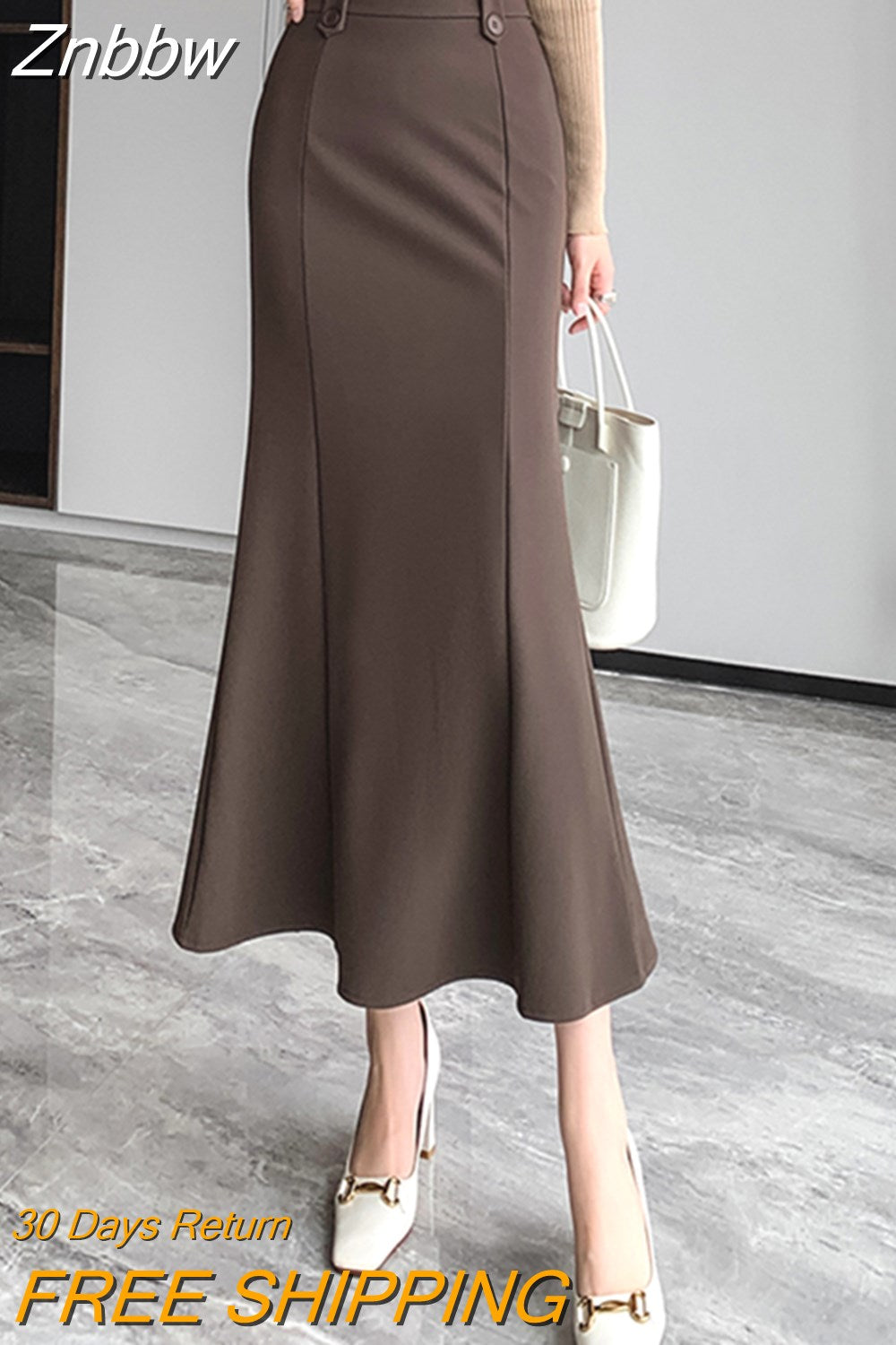 Znbbw Waist Mermaid Skirts Women 2023 Autumn Winter New Style Elastic Slim Package Hip Skirt Female Vintage Casual Long Skirt