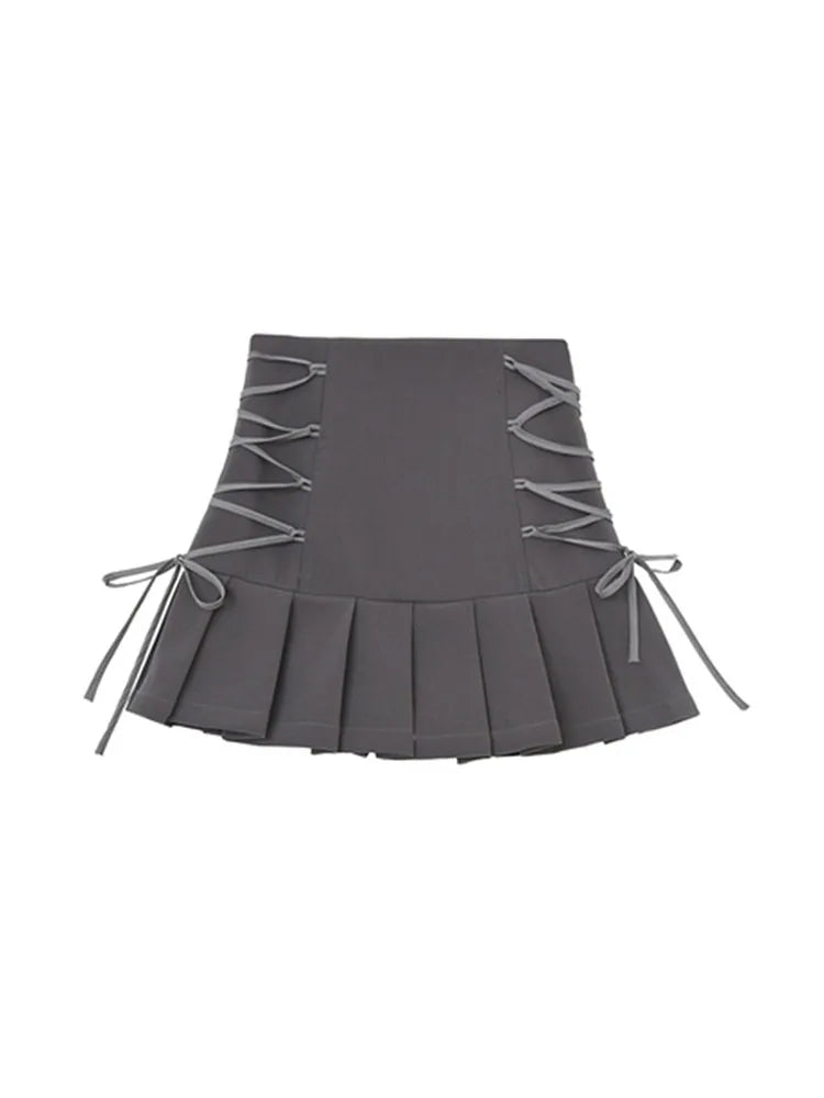Znbbw Waist Pleated Skirts For Women Bandage Short Grey Skirts Gothic Sexy Club Streetwear Casual Harajuku Mini Skirts Female