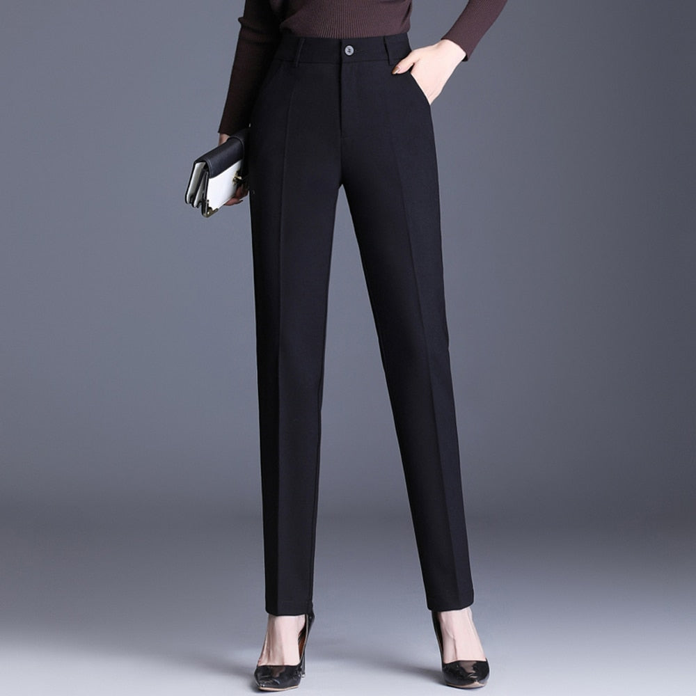 Znbbw Waist Women Pants Simplicity Office Lady Suit Pants Female Vintage Straight Trousers Gray Black Casual Pants Pantalones