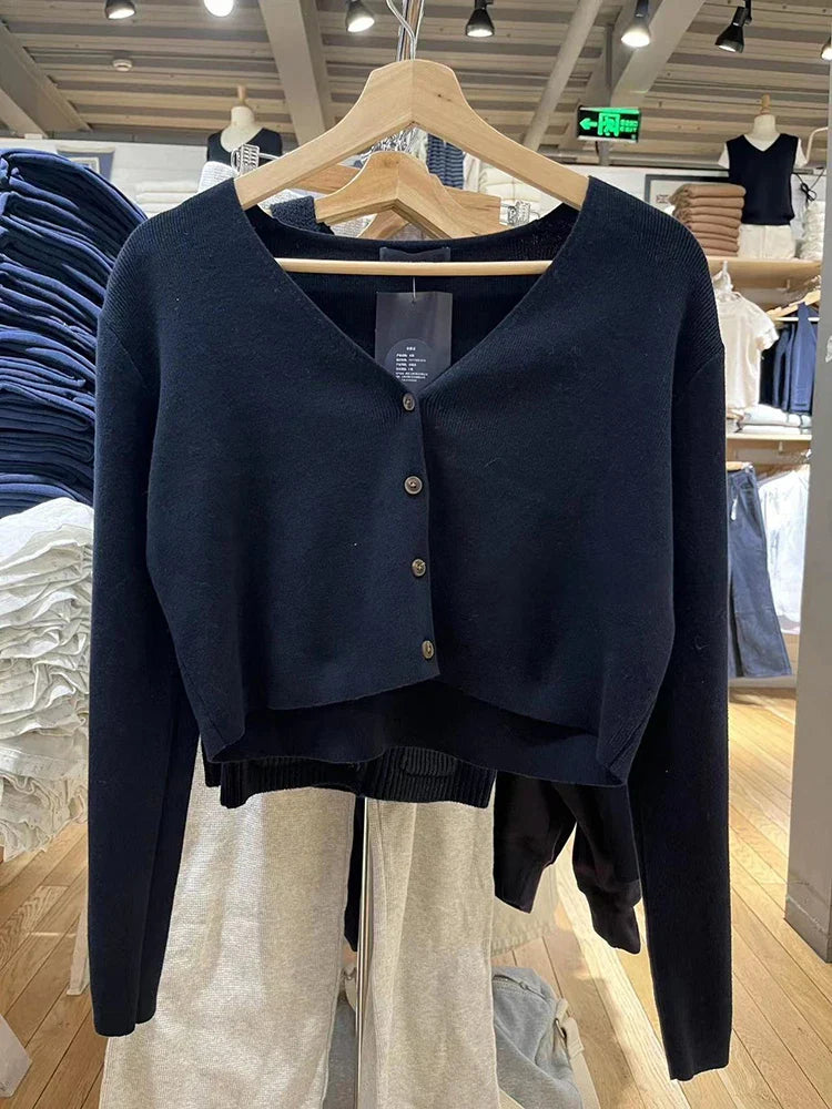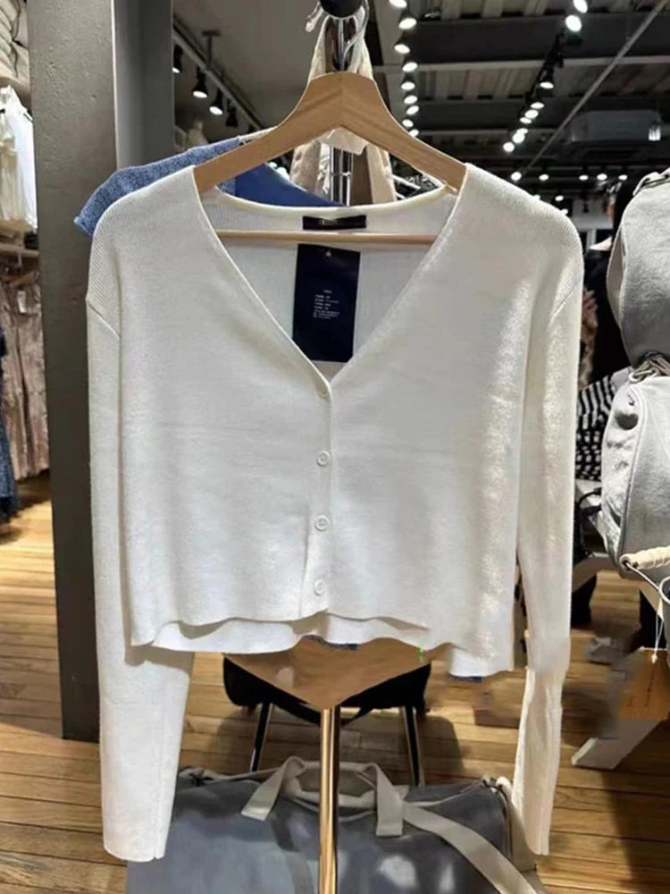Znbbw White Button Knitted Cardigan Women Autumn Solid V Neck Cotton Casual Pullover Sweater Harajuku Sweet Loose Crop Top Y2k