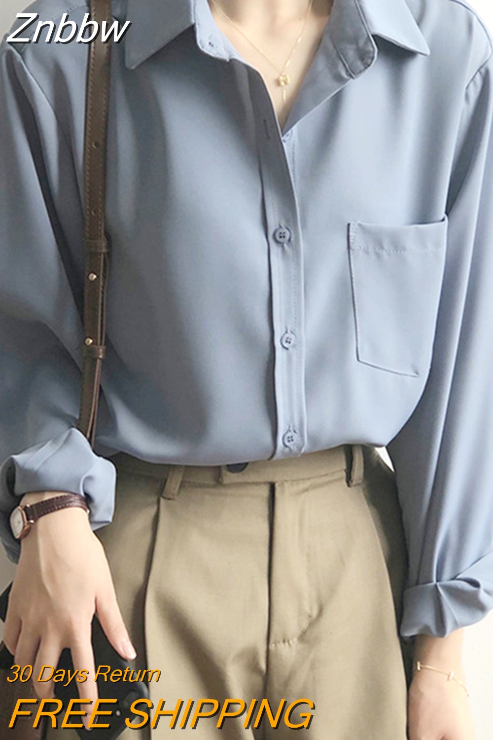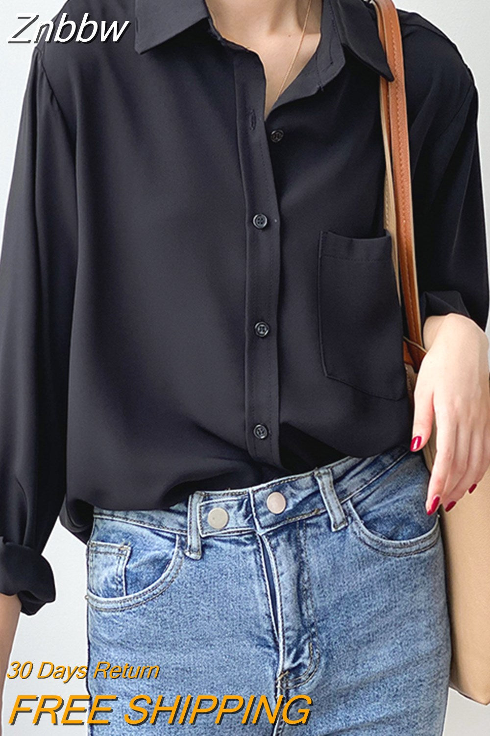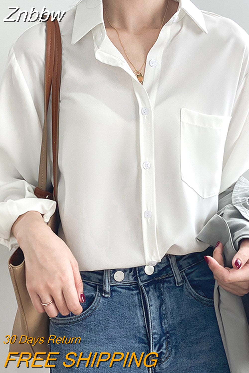 Znbbw White Shirts for Women Top Turn-down Collar Solid Female Shirts Casual Office Ladies Tops 2023 Spring Summer Blouses 11354