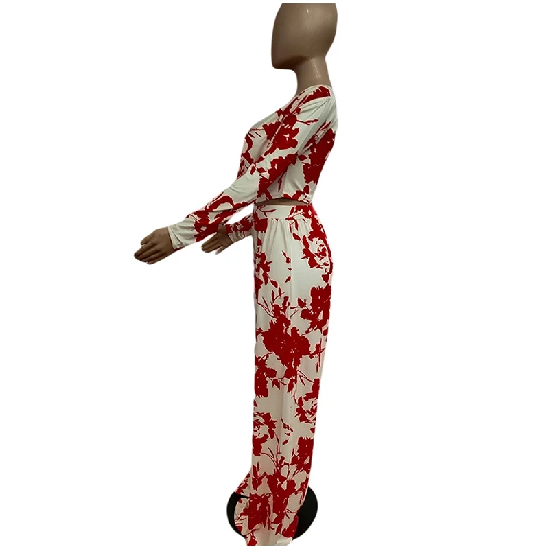 Znbbw Wide Leg Pants Suits Women Chic Crop Deep V-NeckTop 2 Piece Set Female Fashion Long Sleeve Straight Trousers Outfits