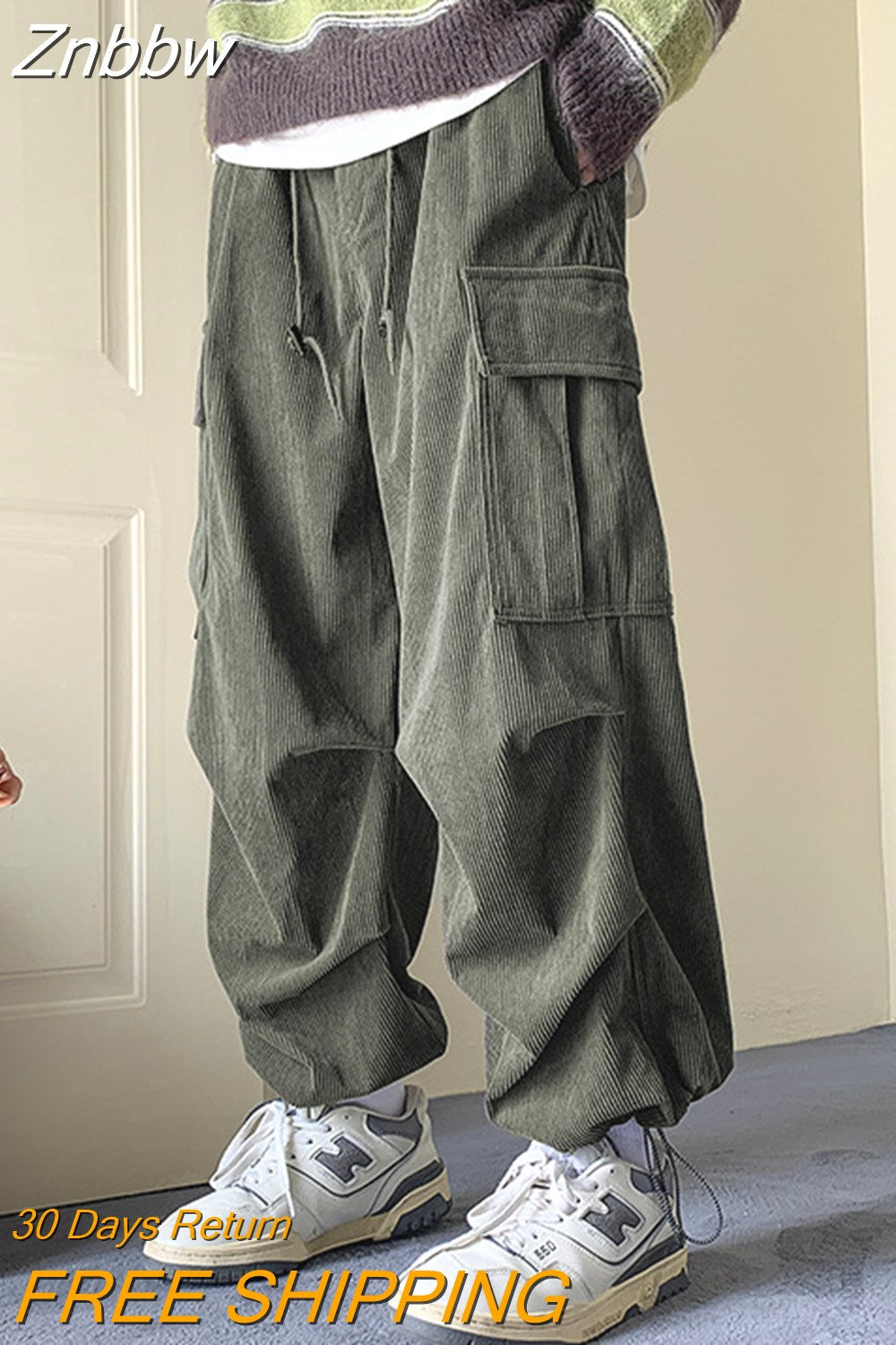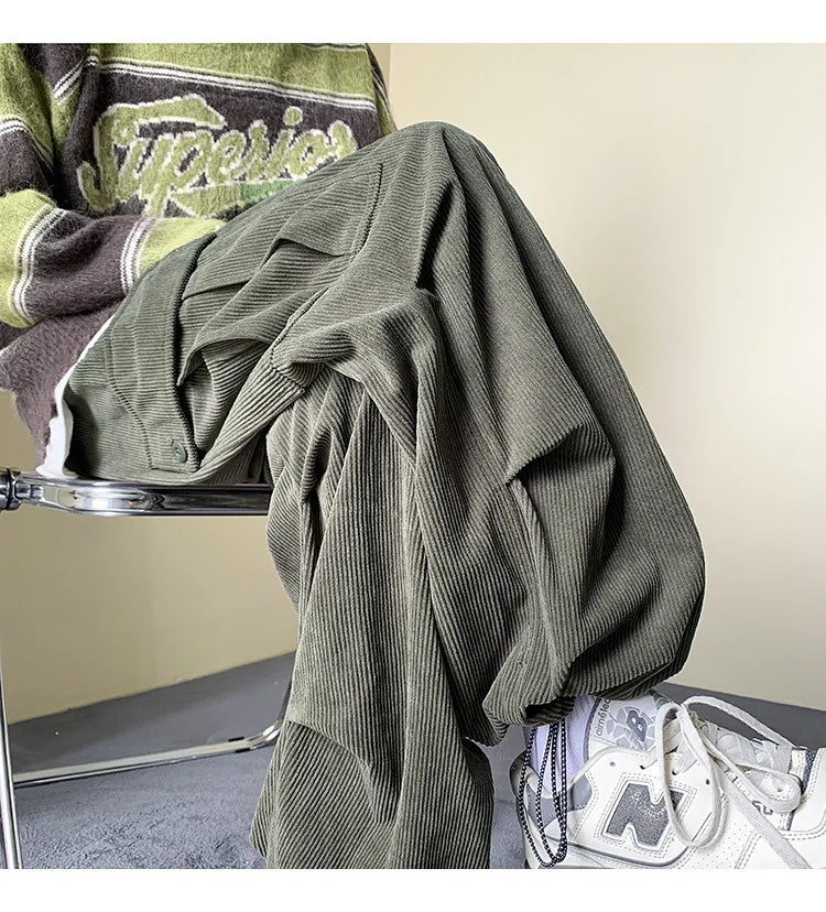 Znbbw Winter Corduroy Pants Men Fashion Oversize Pocket Cargo Trousers Streetwear Hip Hop Loose Straight Pants Male Joggers