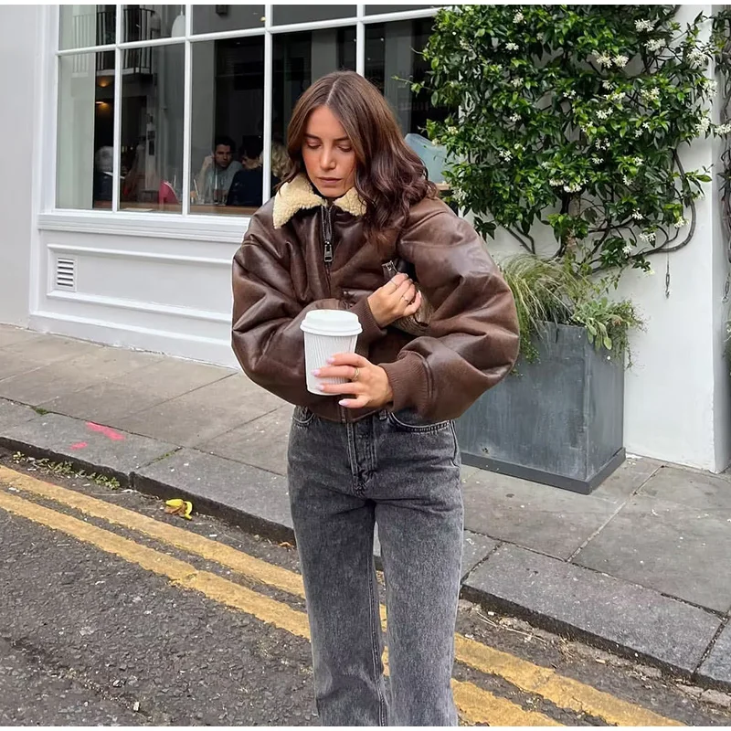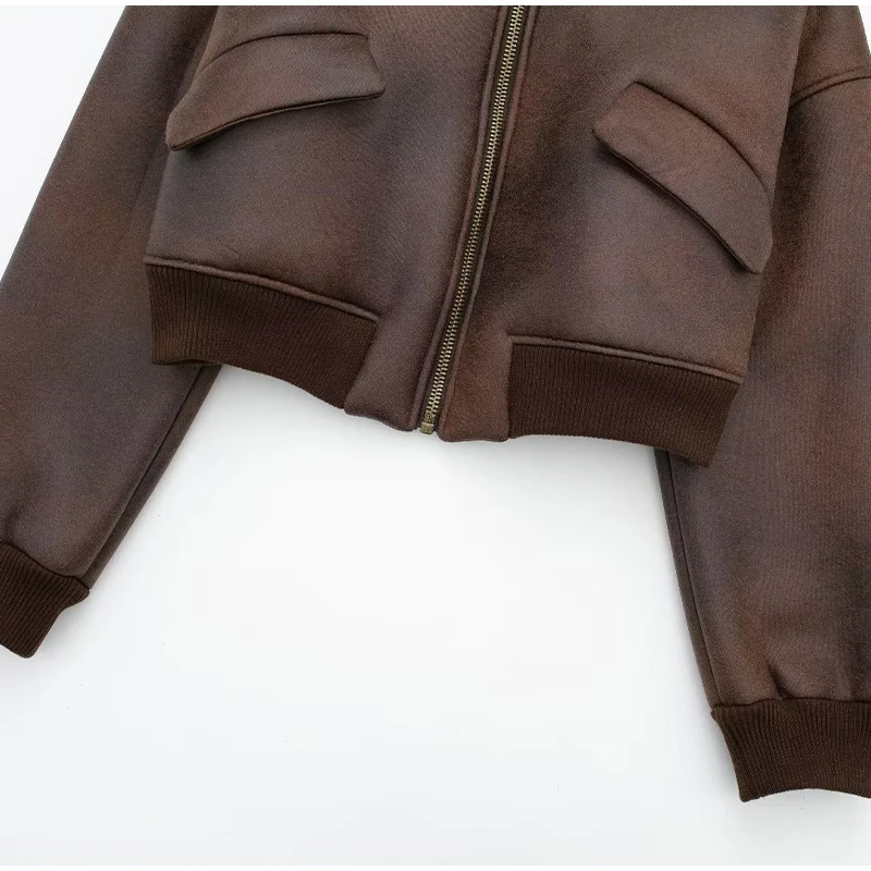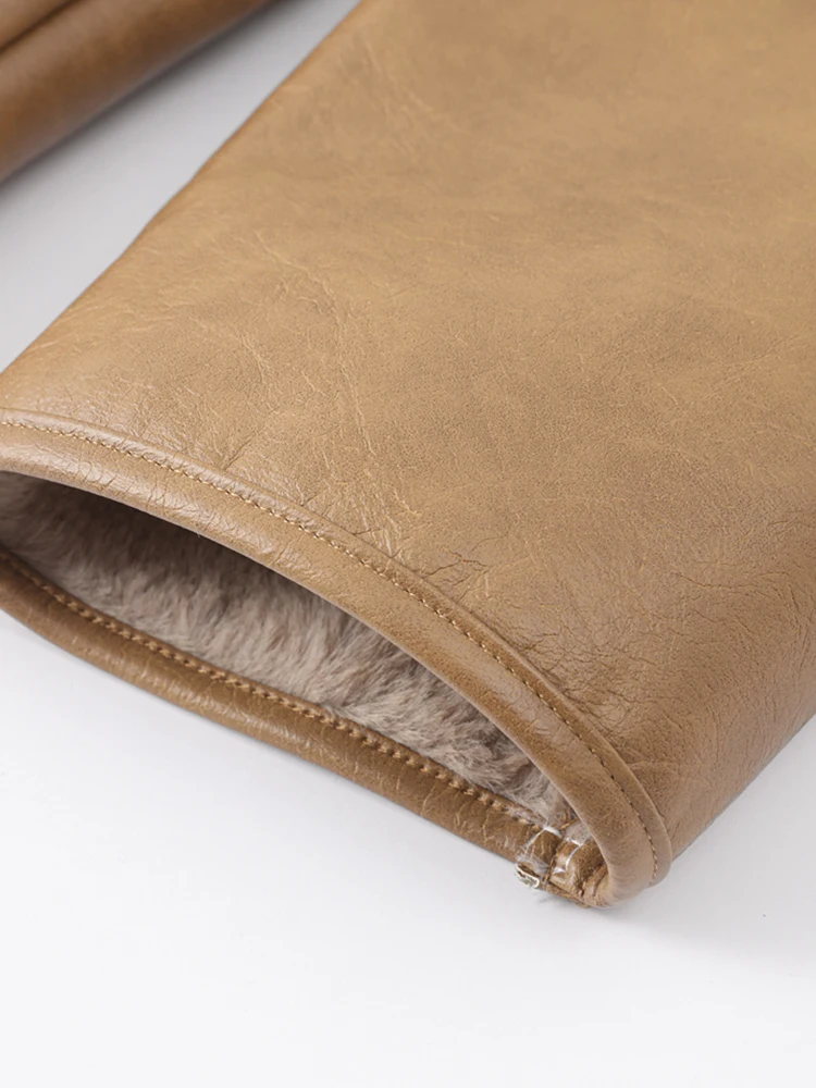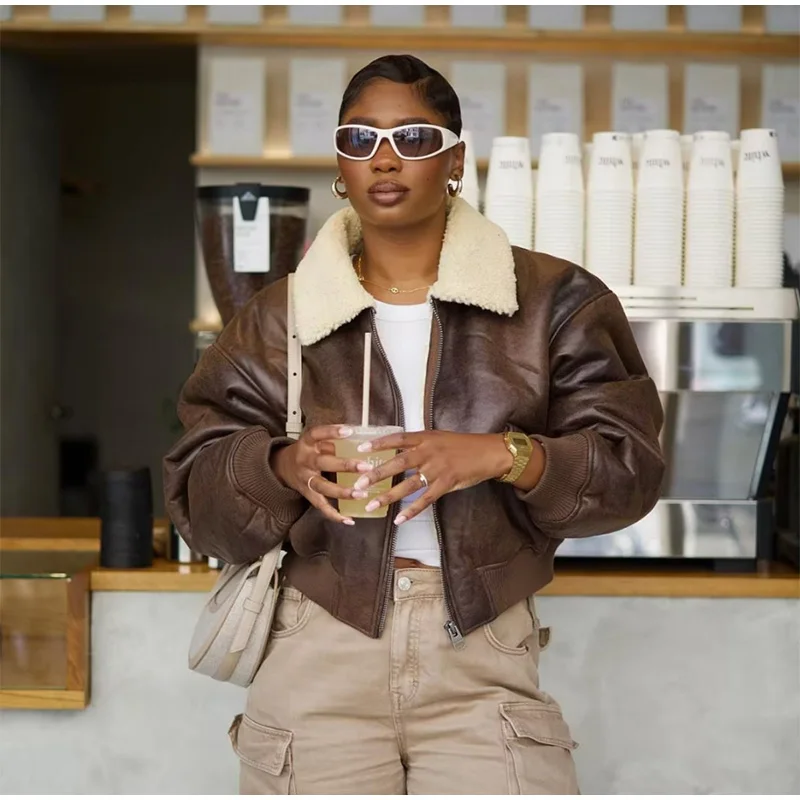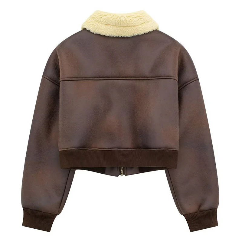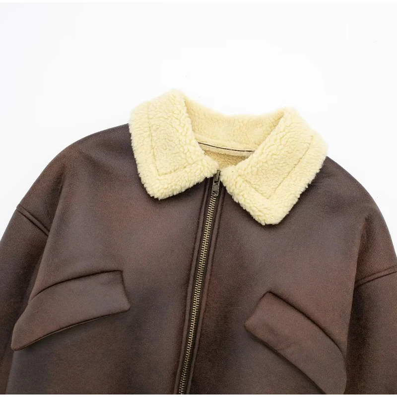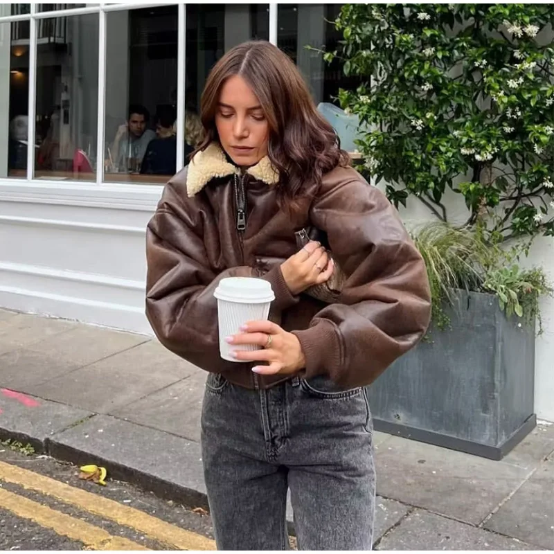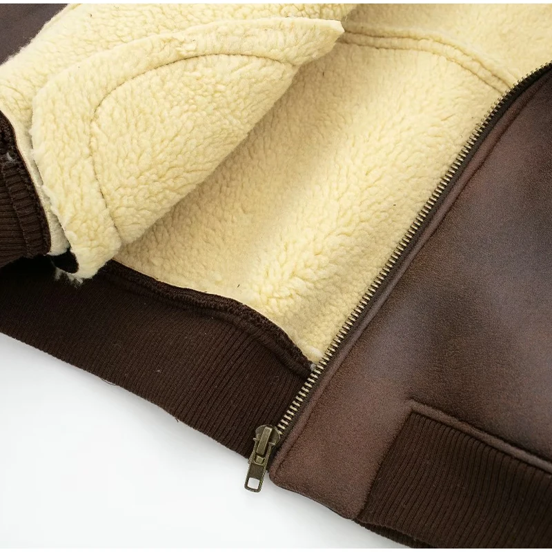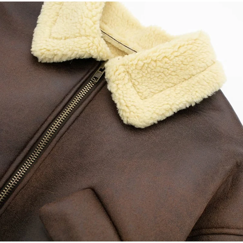 Znbbw Winter Leather Jacket Women 2024 New Female Vintage Lapel Faux Wool Belt Coat Thicken Warm Oversize Highstreet Outwear Top
