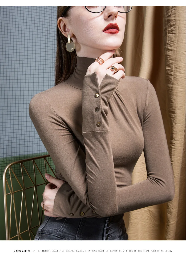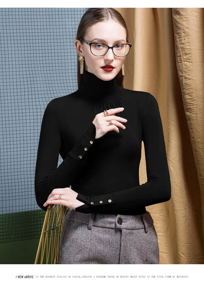 Znbbw Winter Women Turtleneck Long Sleeve T-shirts Tees Girls Slim Chic Tees Tshirt Tops Female
