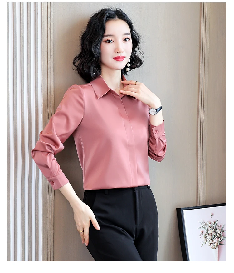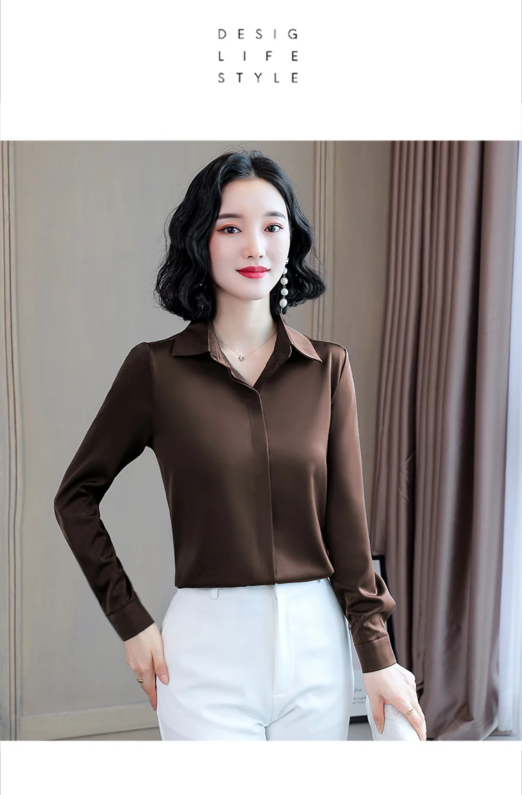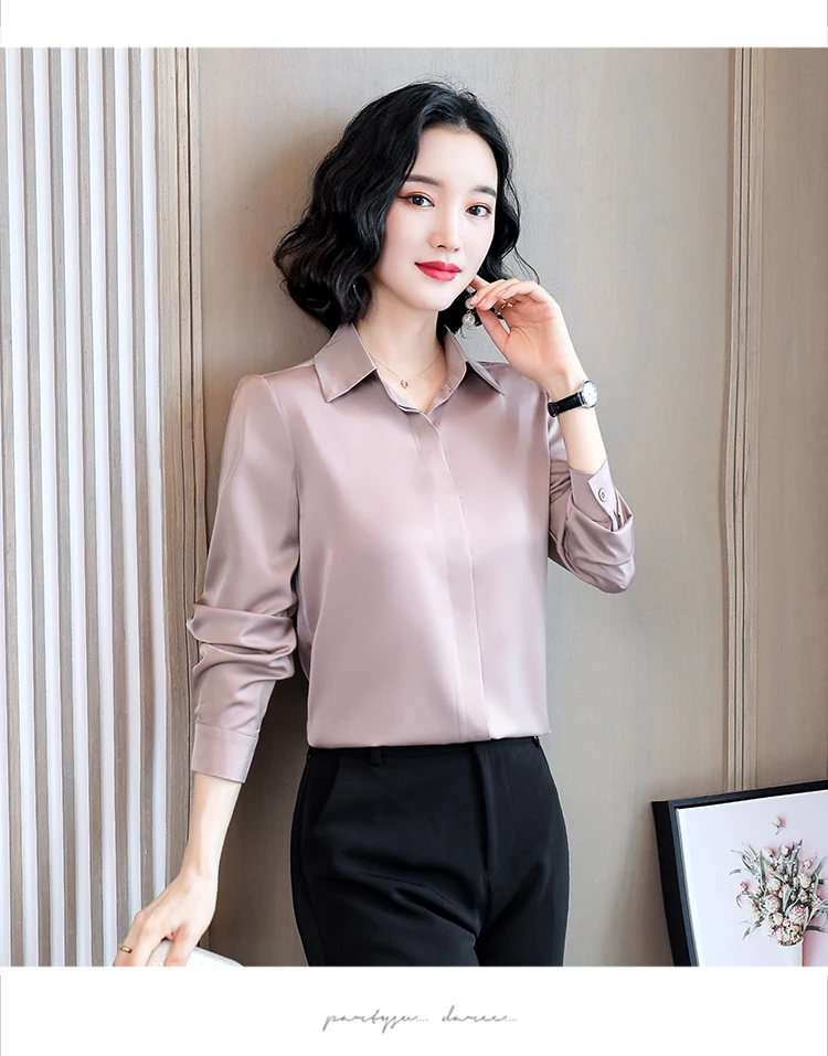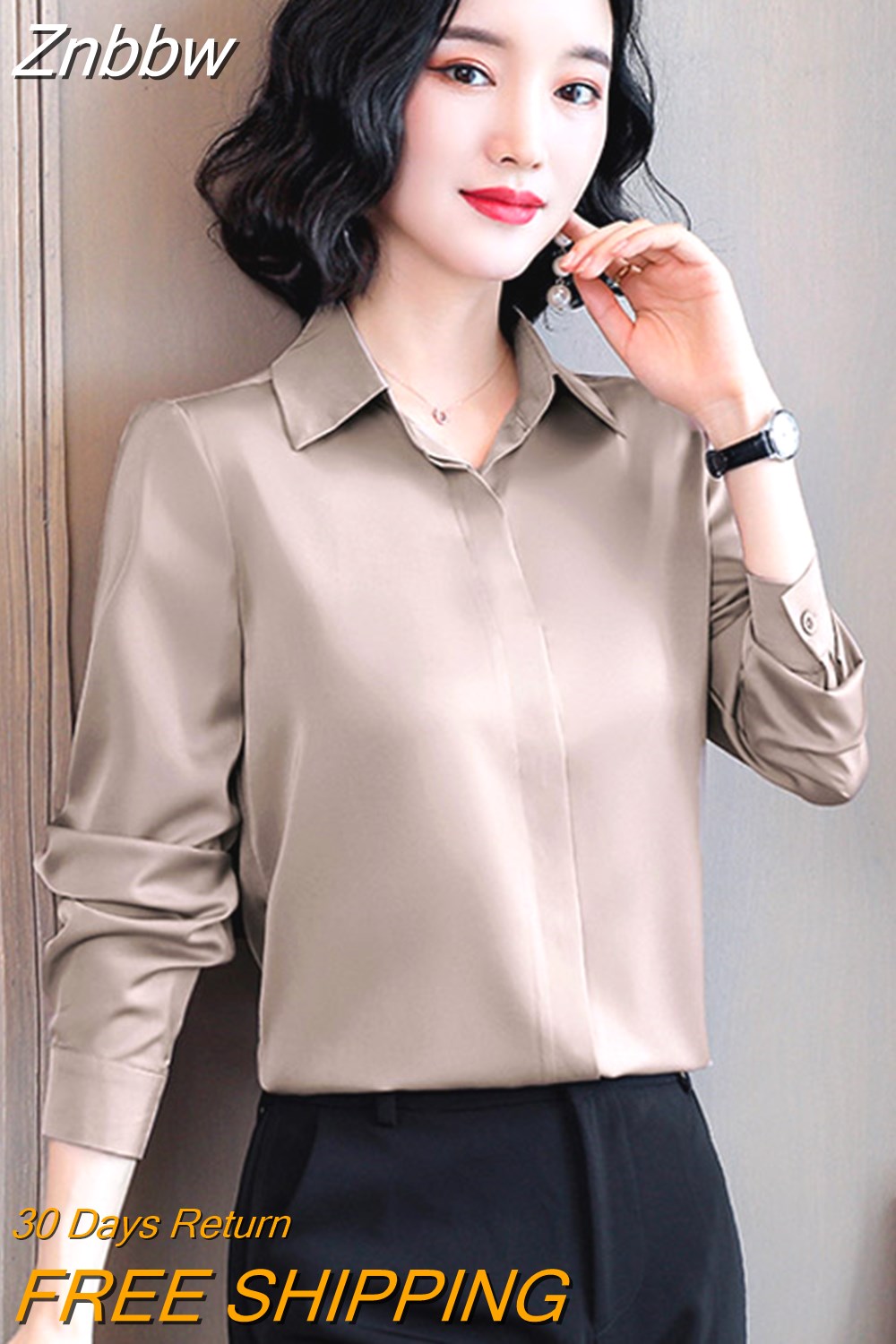 Znbbw Woman Blouses 2023 Office Lady Simplicity Hidden Breasted Silk Satin Shirts For Women Basic Clothing Female Casual Tops