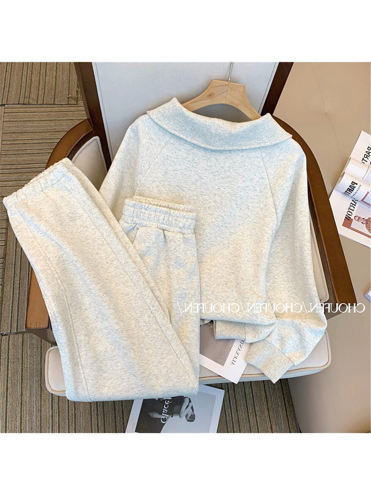 znbbw Women 2 Piece Grey Sweatshirt Tracksuit Set Zipper Sporty Pullover Coat Top Elastic Waist Wide Leg Jogger Oversized Pant 2023
