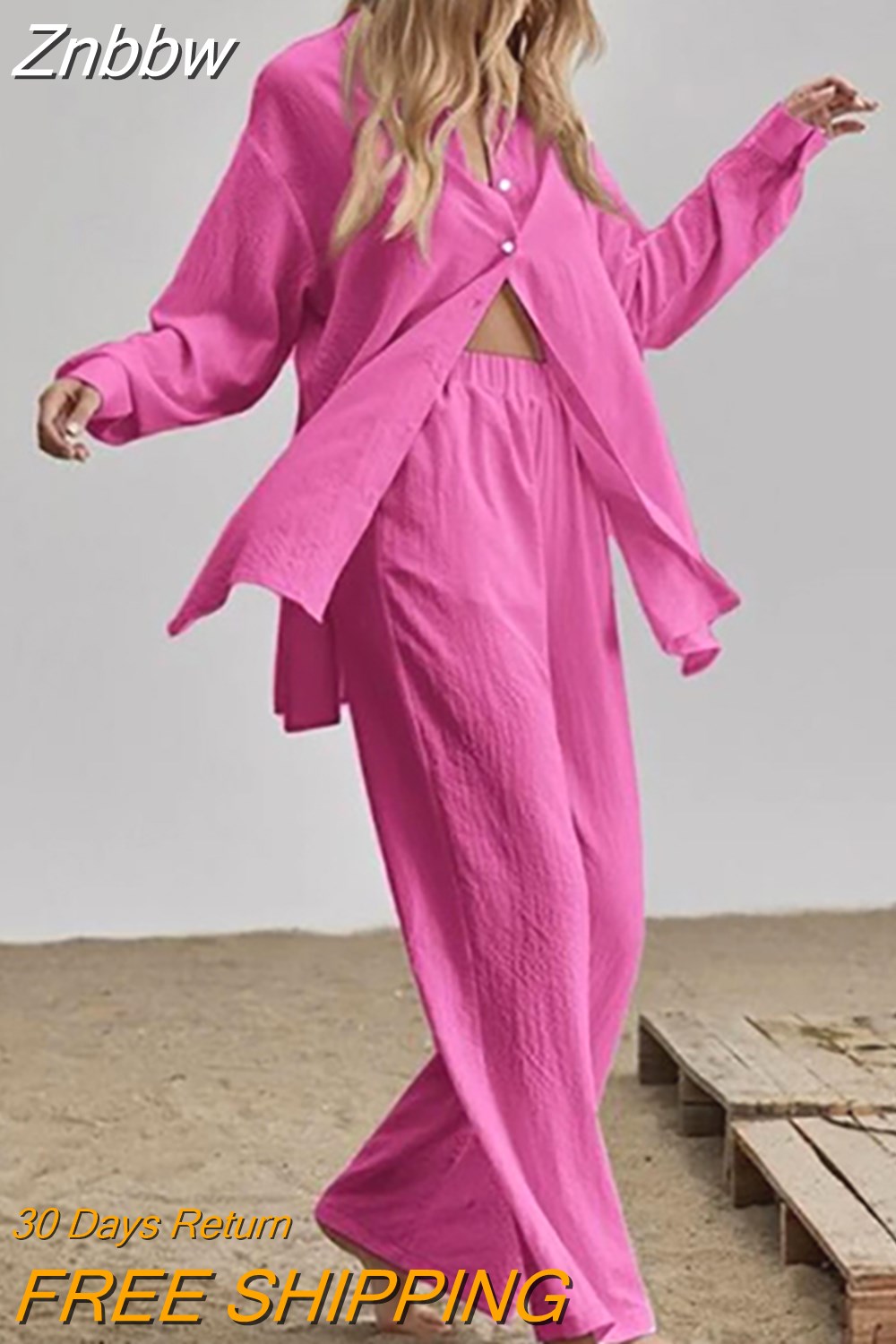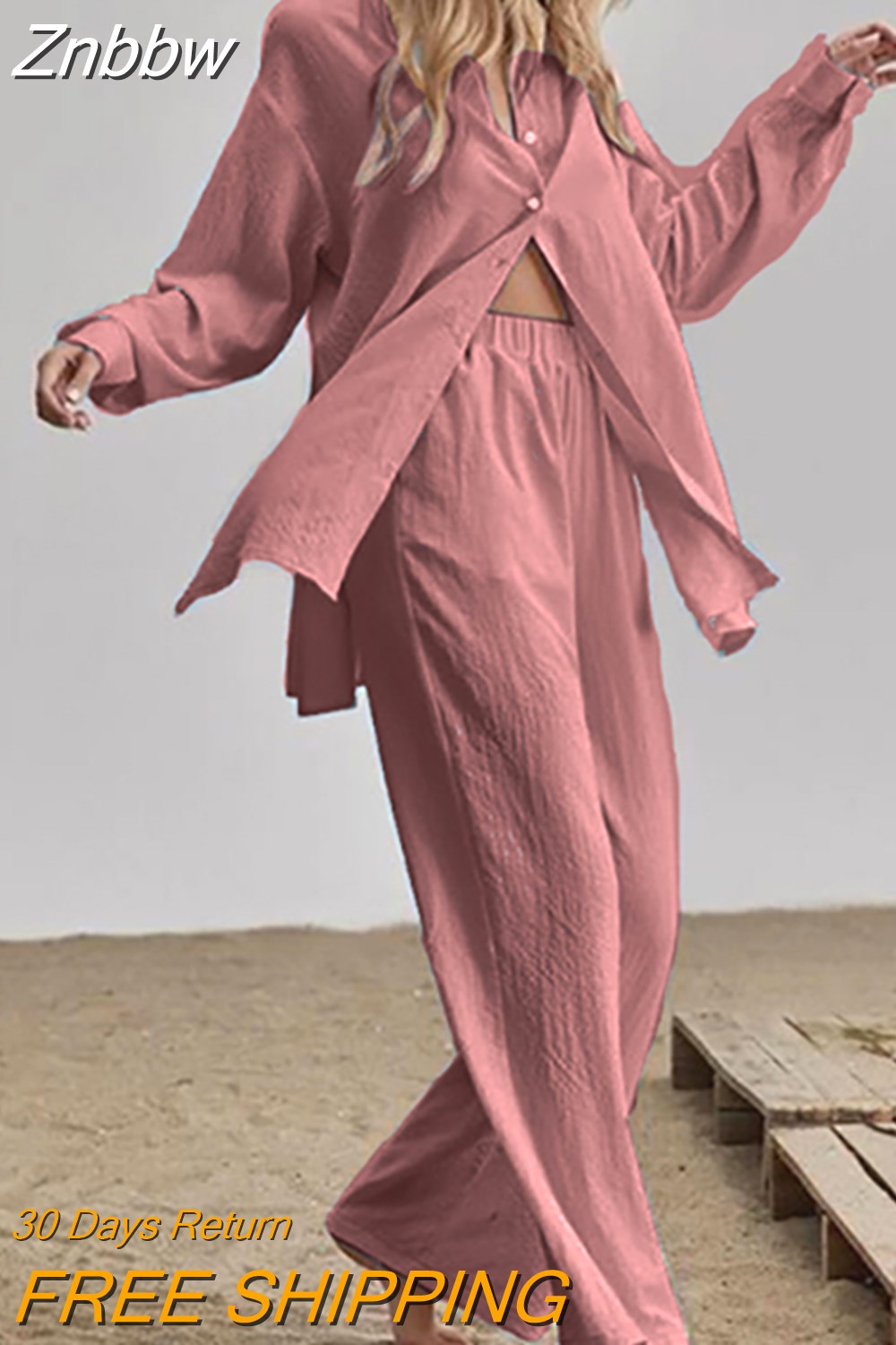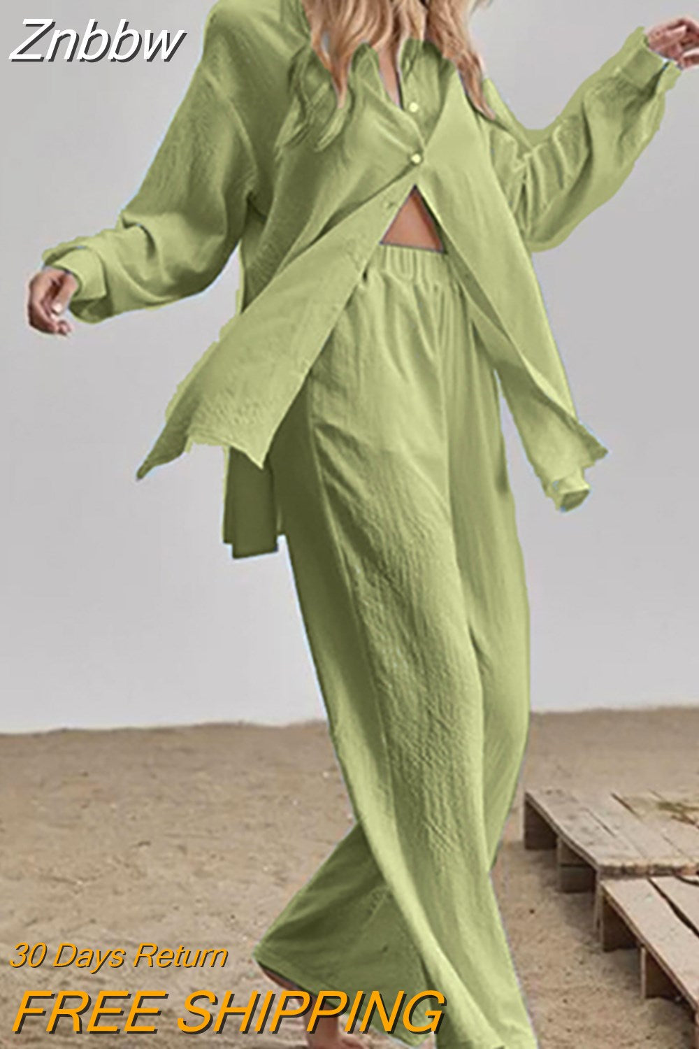 Znbbw Women 2 Pieces Set Long Sleeve Lapel Shirts And Elastic High Wasit Pants Summer Autumn Loose Elegant Women Sets Suit Outifits