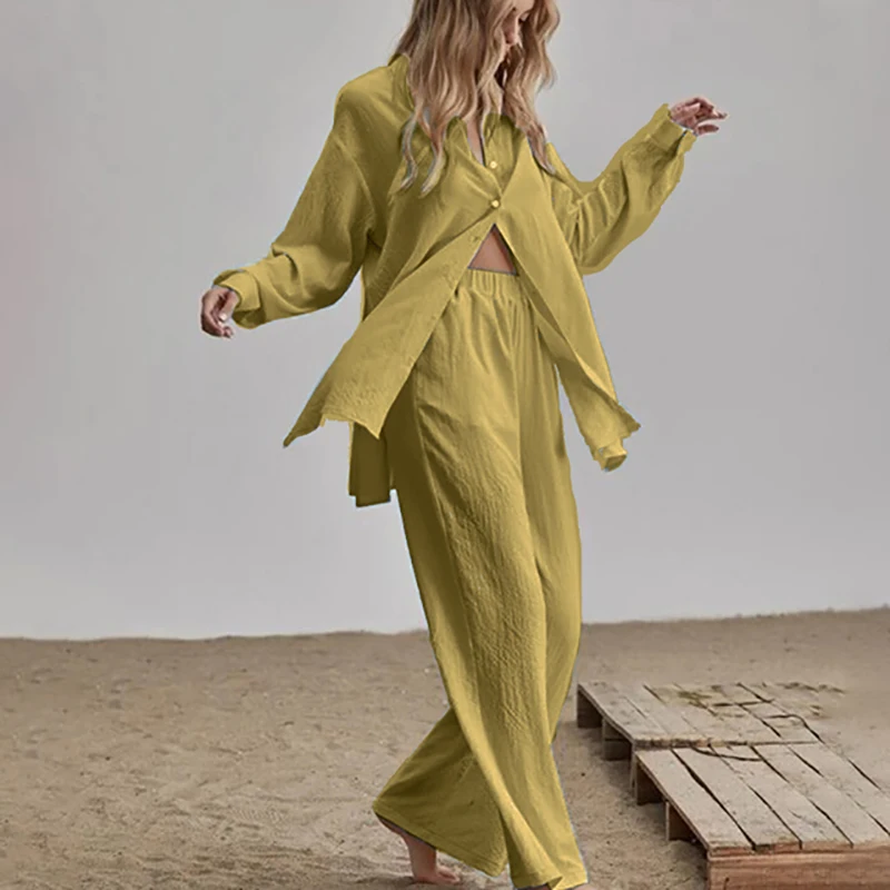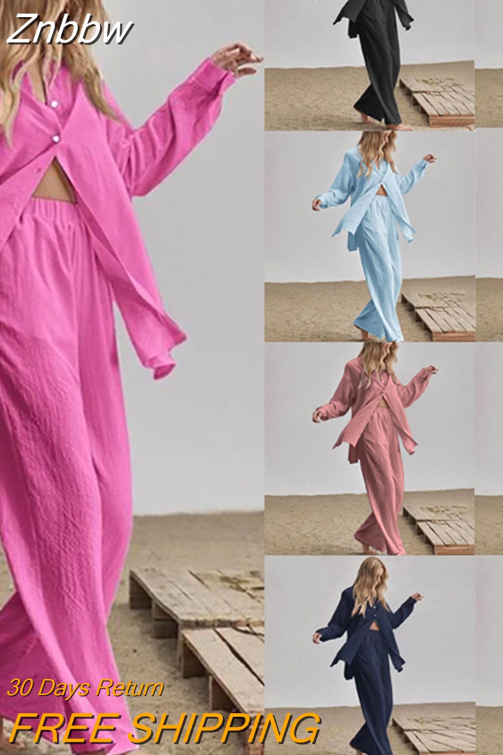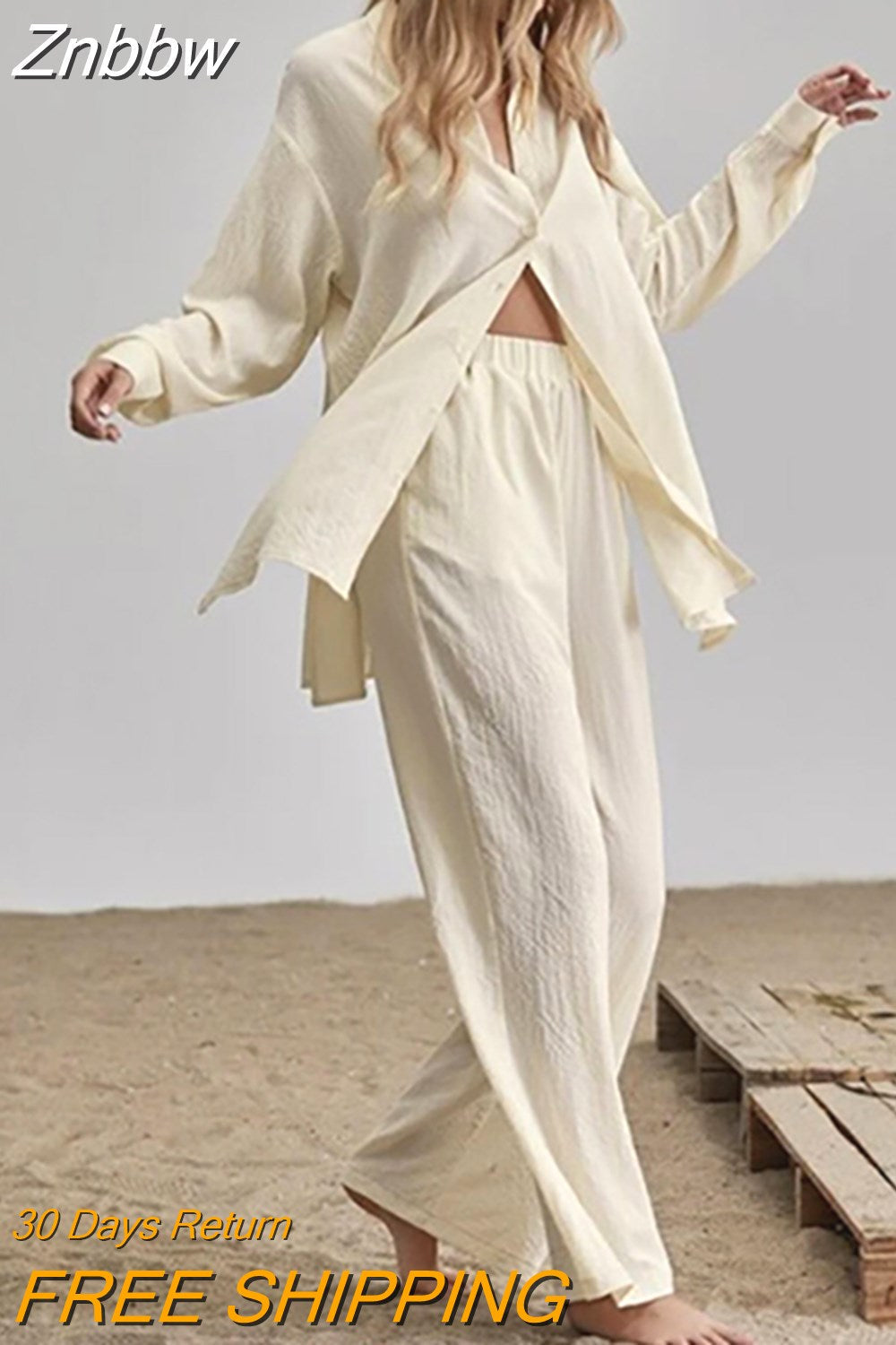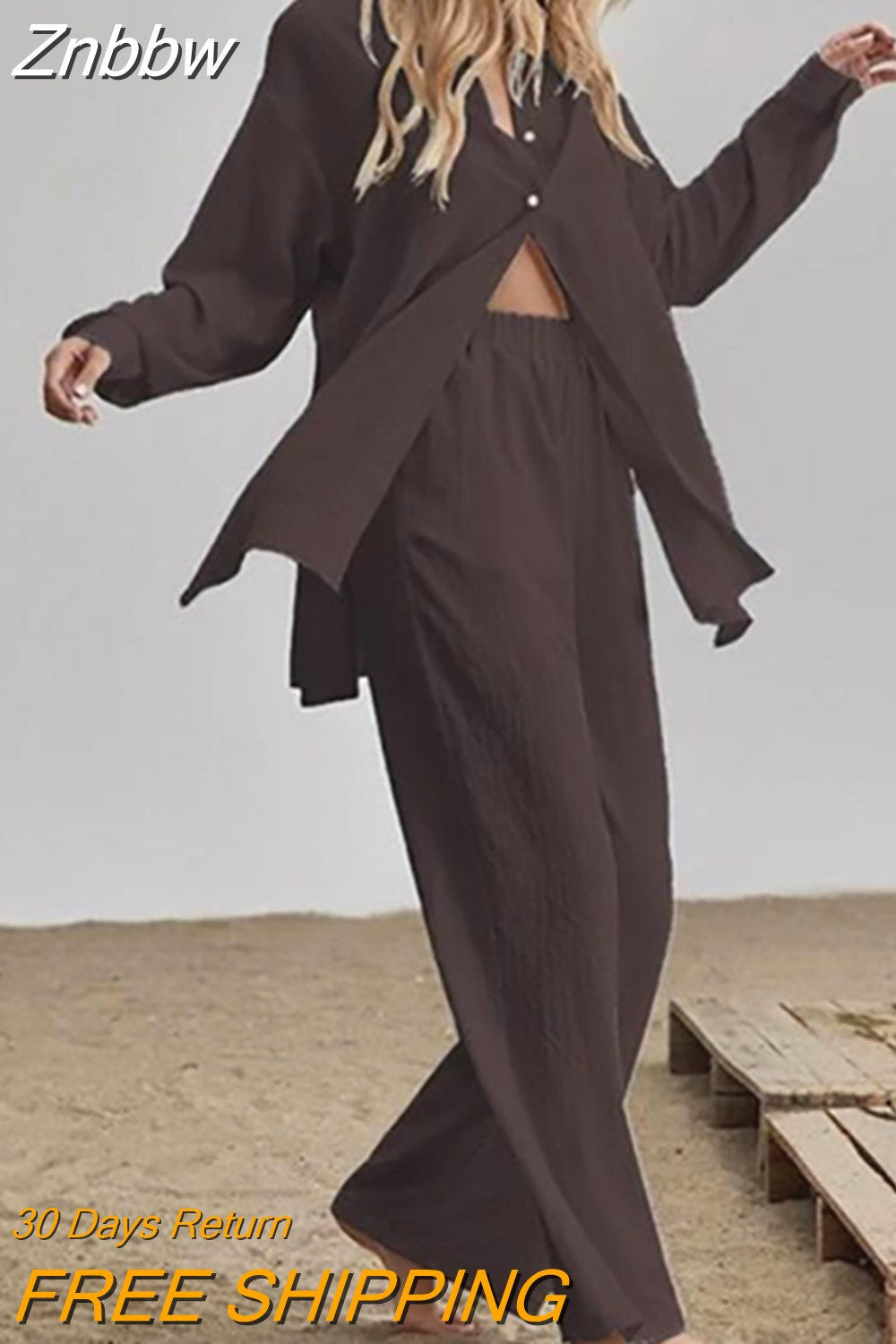 Znbbw Women 2 Pieces Set Long Sleeve Lapel Shirts And Elastic High Wasit Pants Summer Autumn Loose Elegant Women Sets Suit Outifits