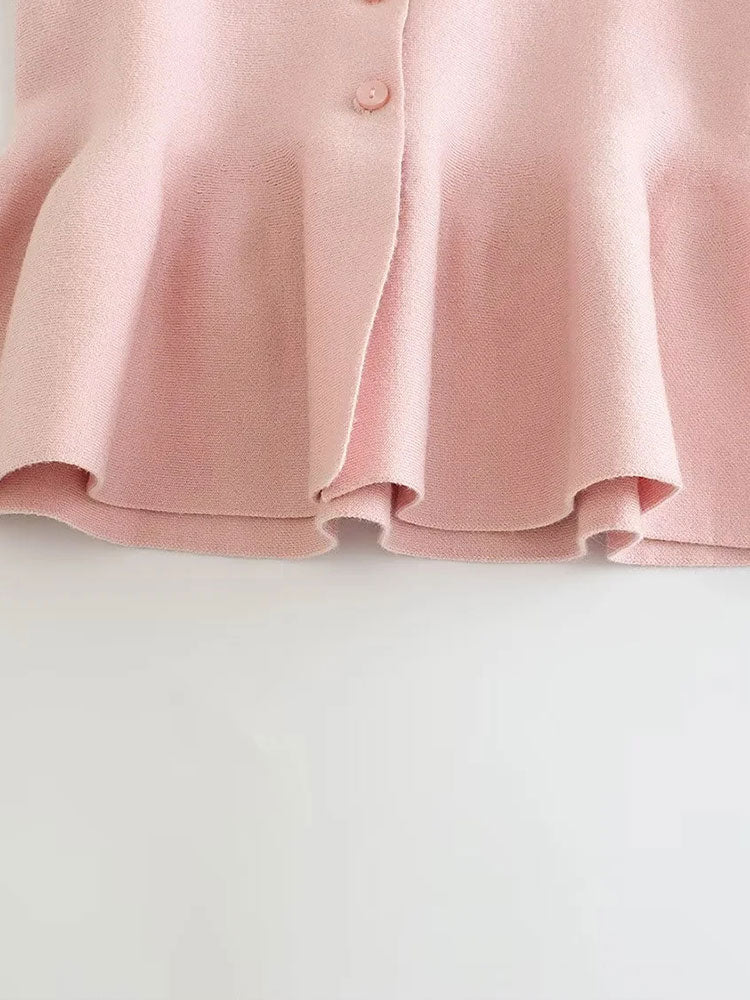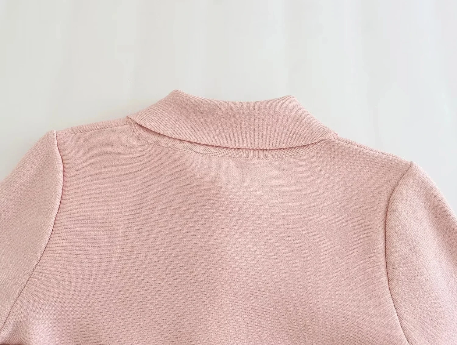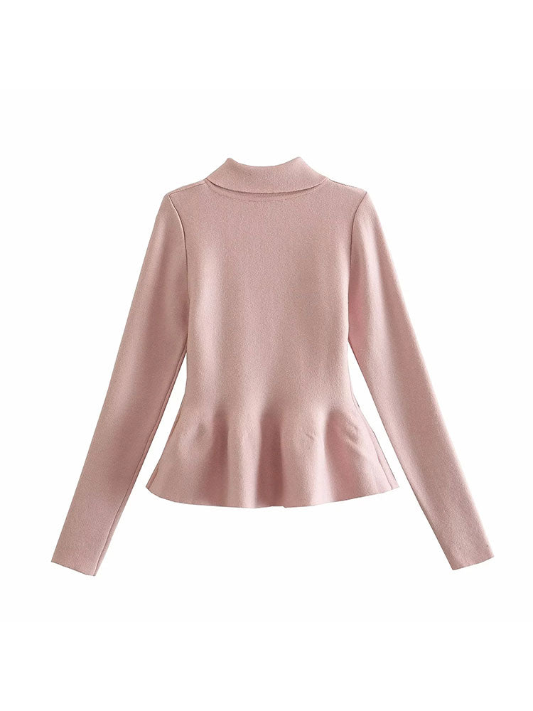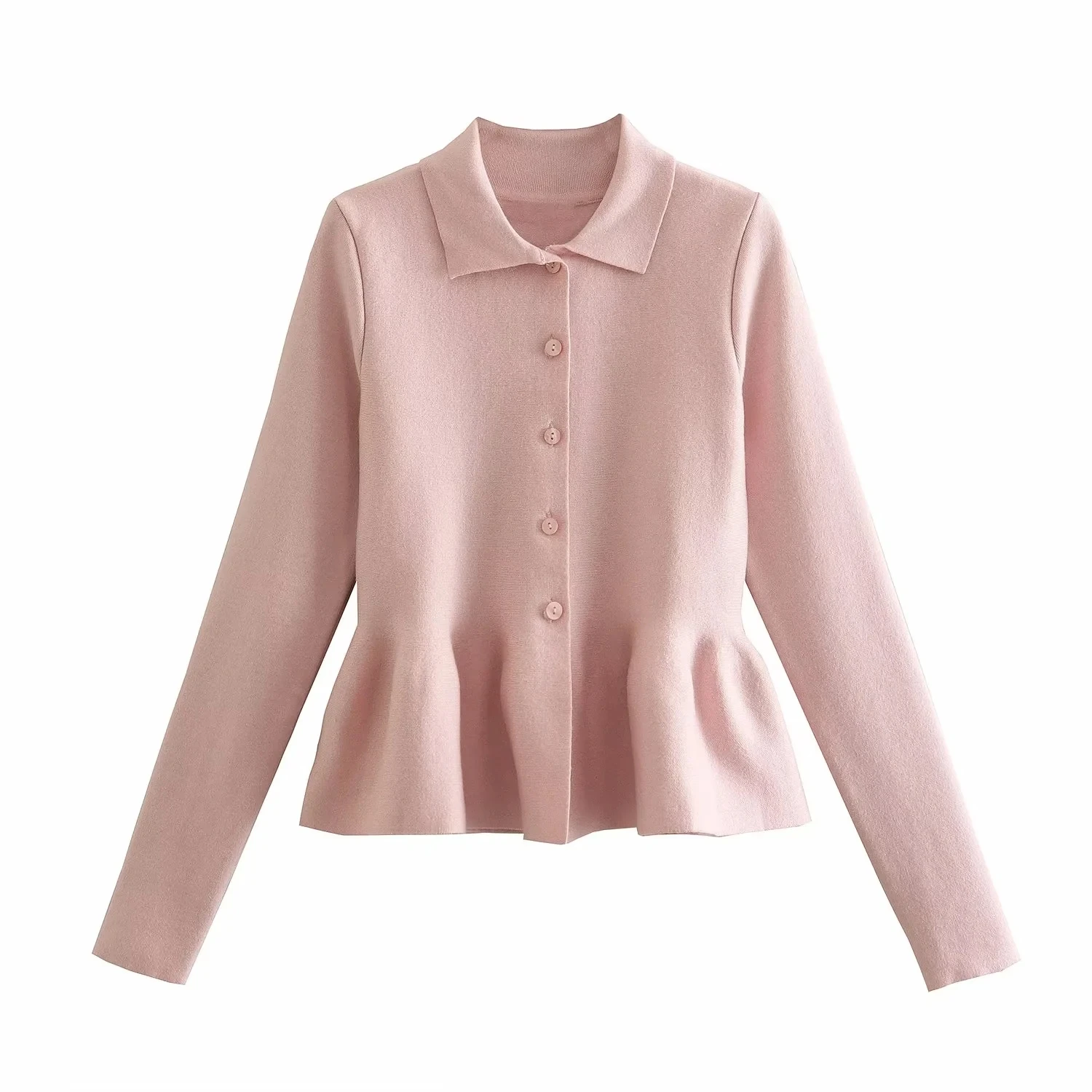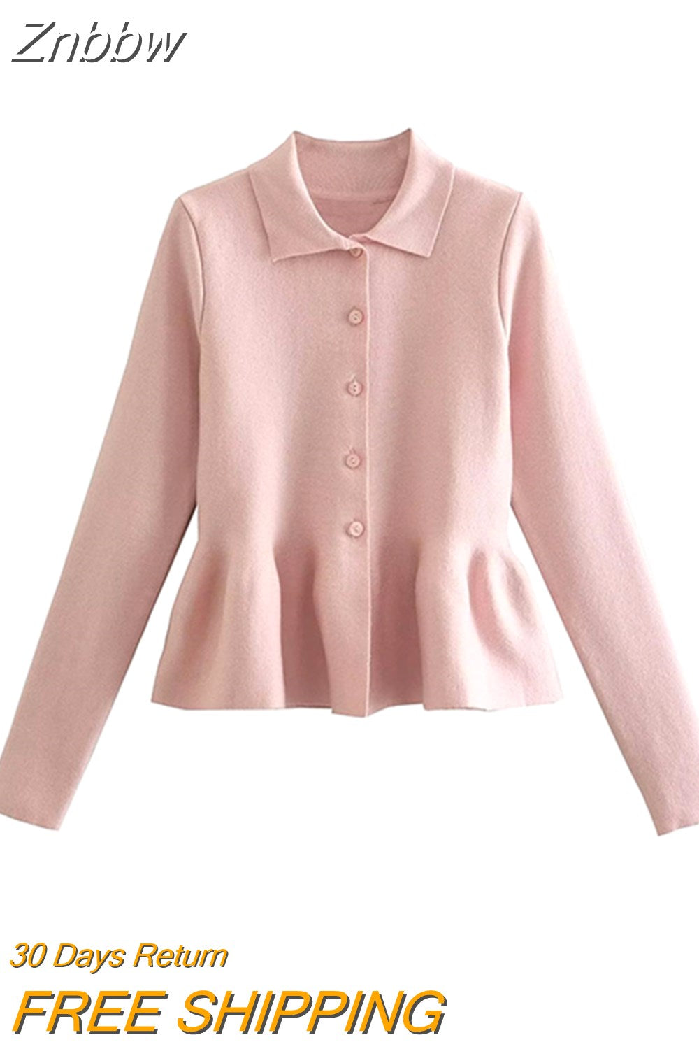 Znbbw Women 2023 Short Skirt Hem Flip Design Slim Knitted Cardigan Female Outerwear Chic Tops