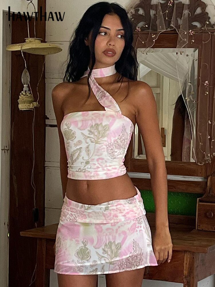 Znbbw Women 2023 Summer Tube Tops Mini Skirt Vacation Two Piece Matching Sets Beach Outfits Wholesale Items For Business