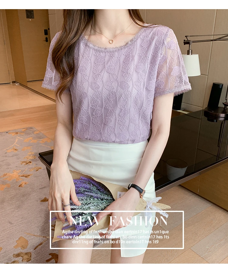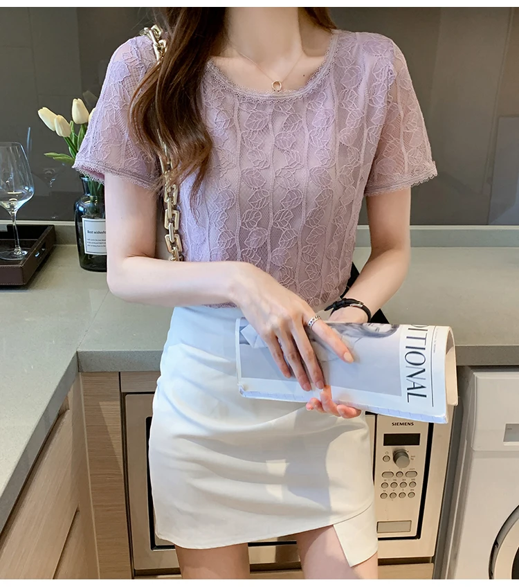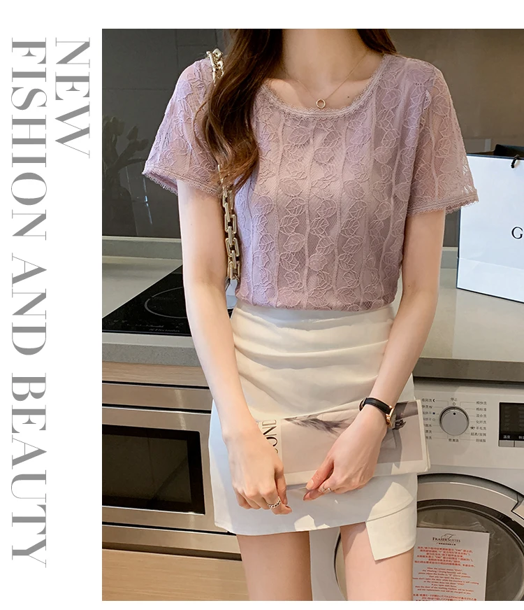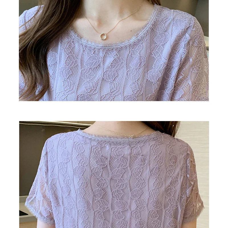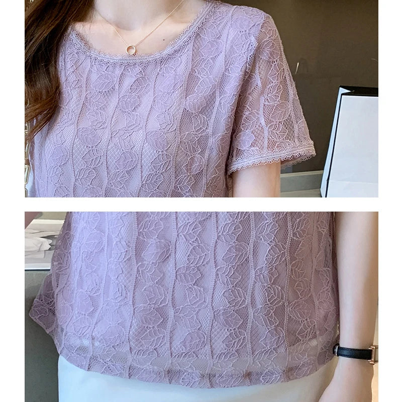 Znbbw Women Blouse Short Sleeve O-Neck Hollow Lace Blouse Shirt Blouse Women Blusas Mujer De Moda 2023 Blouses Top Femme E953