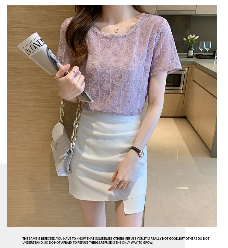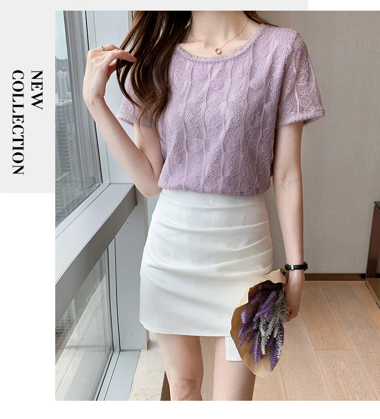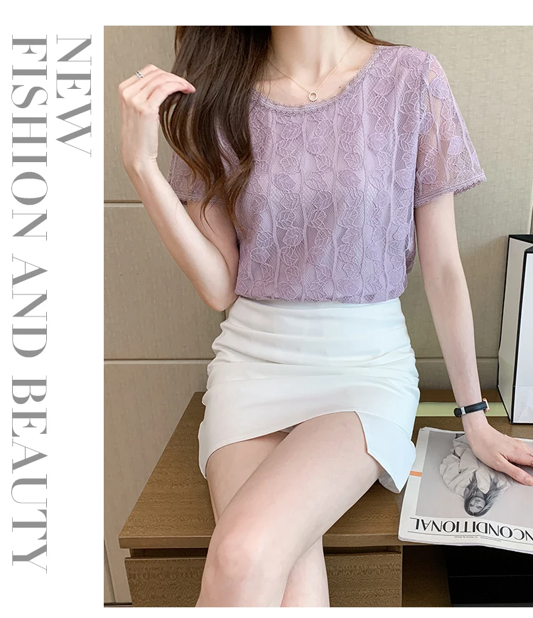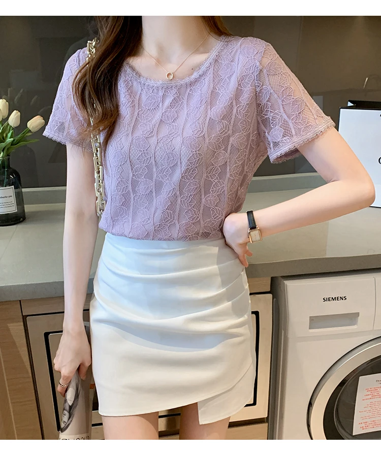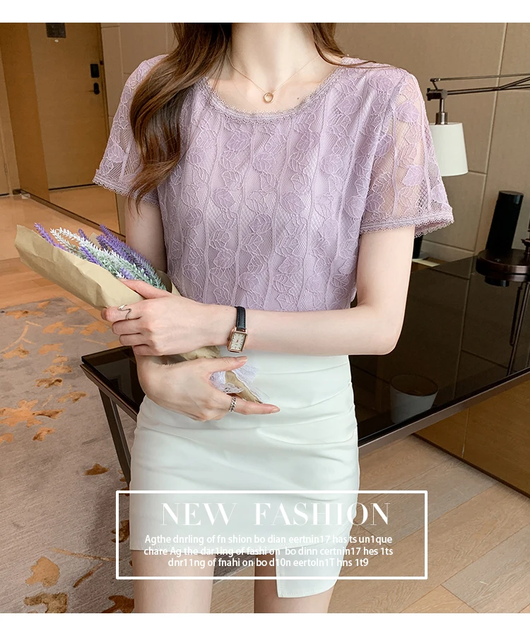 Znbbw Women Blouse Short Sleeve O-Neck Hollow Lace Blouse Shirt Blouse Women Blusas Mujer De Moda 2023 Blouses Top Femme E953
