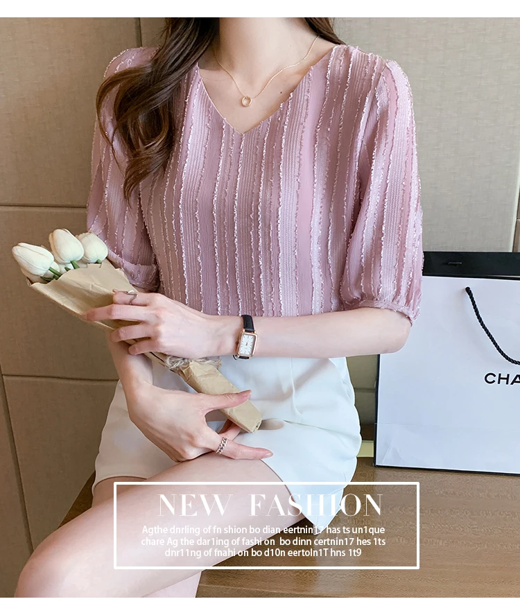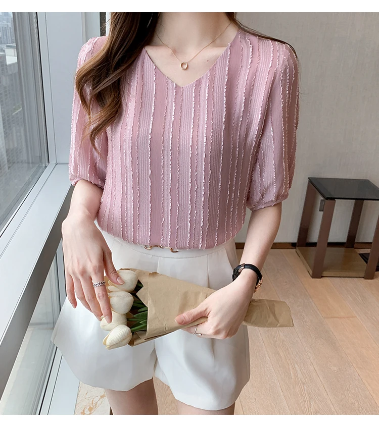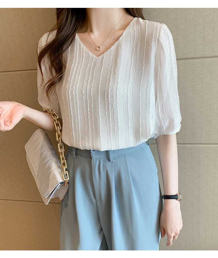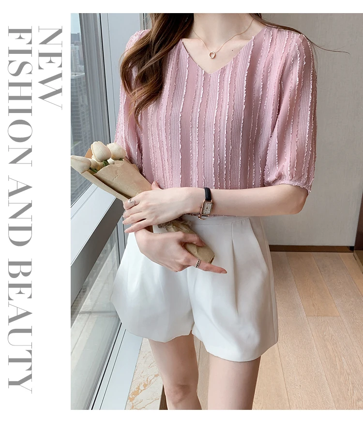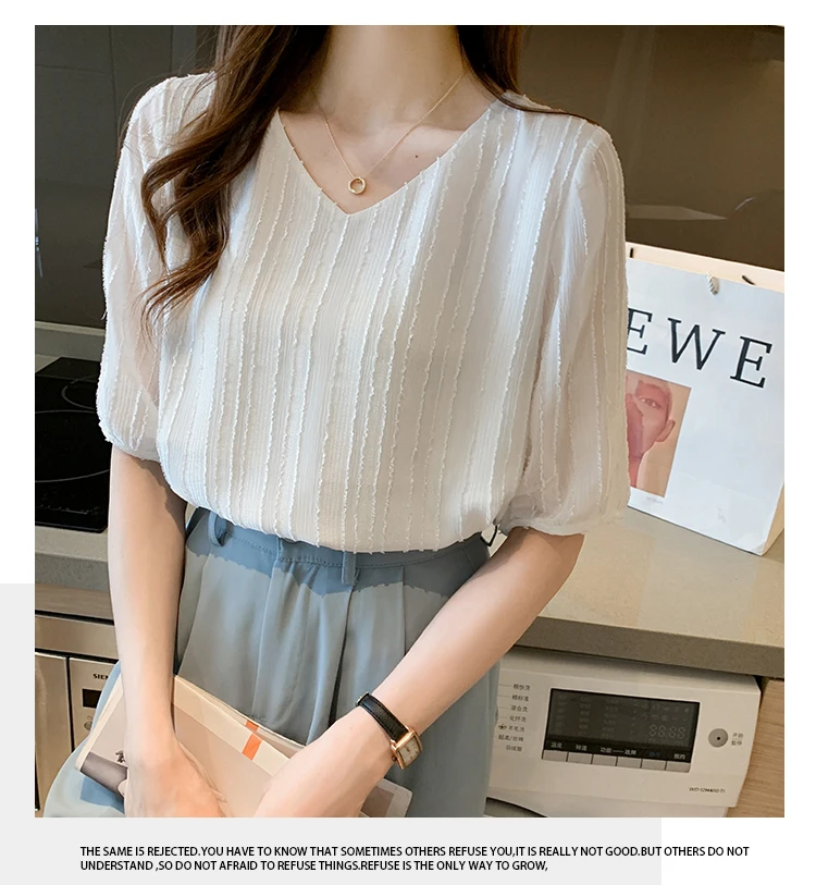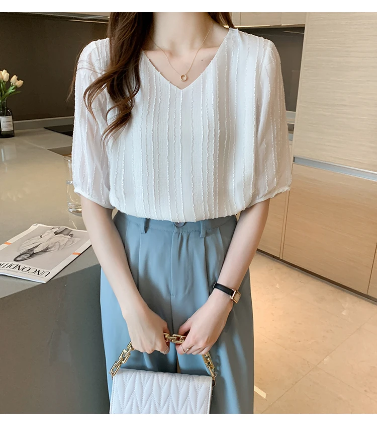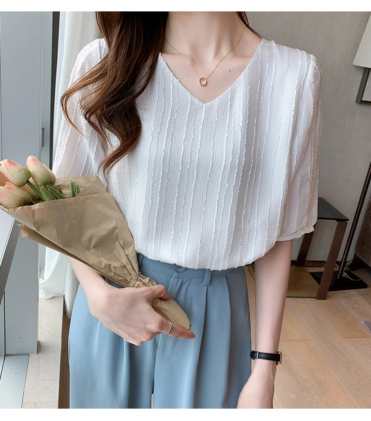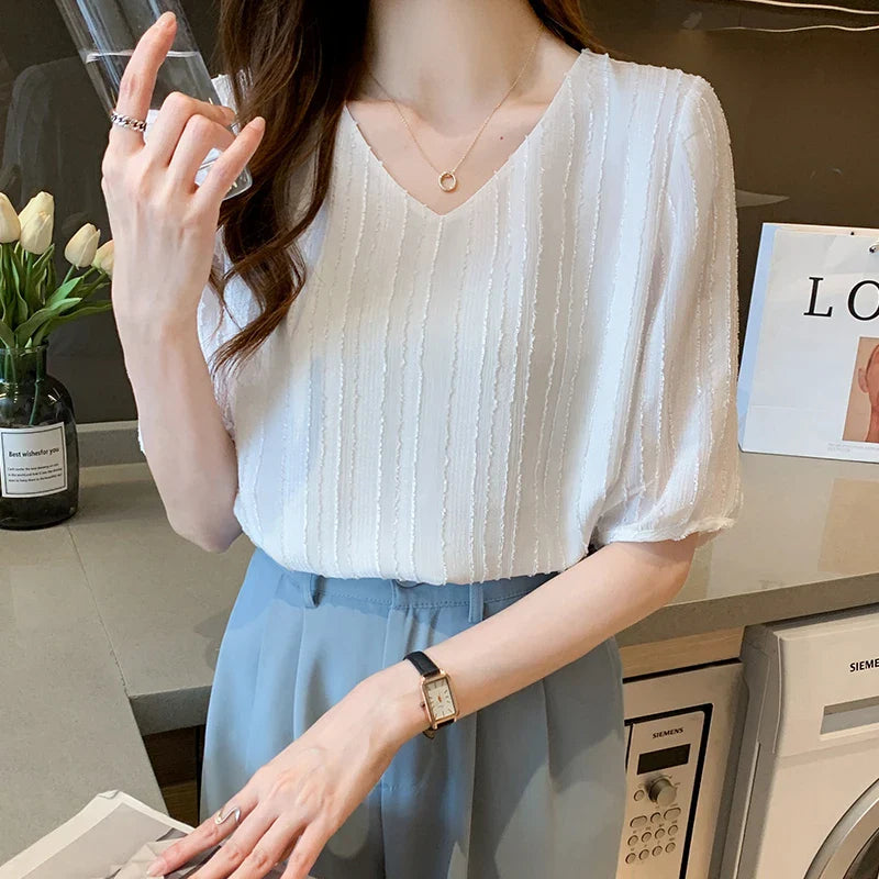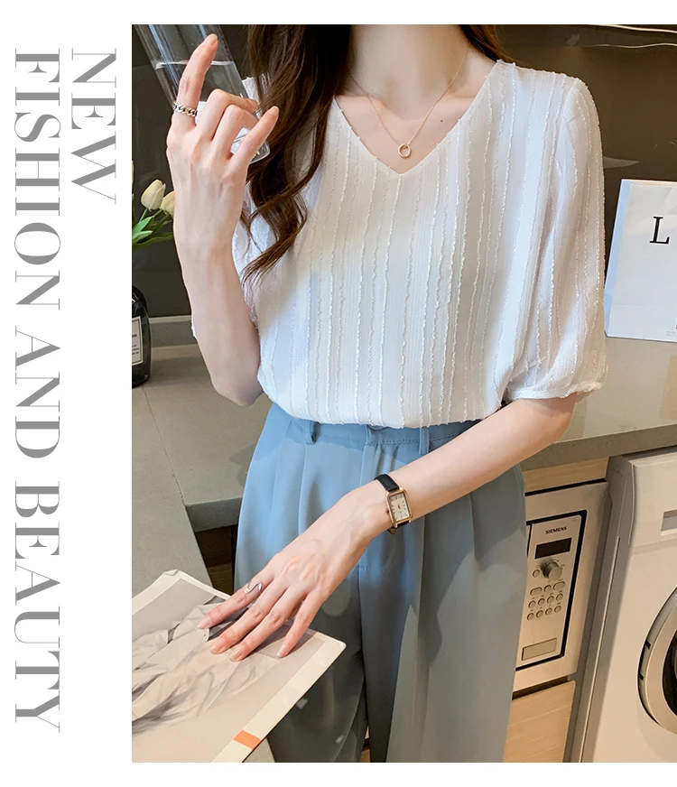 Znbbw Women Blouse Tops Short Sleeve V-Neck Chiffon Blouse Shirt Blouse Women Blusas Mujer De Moda 2023 Blouses Top Femme E952